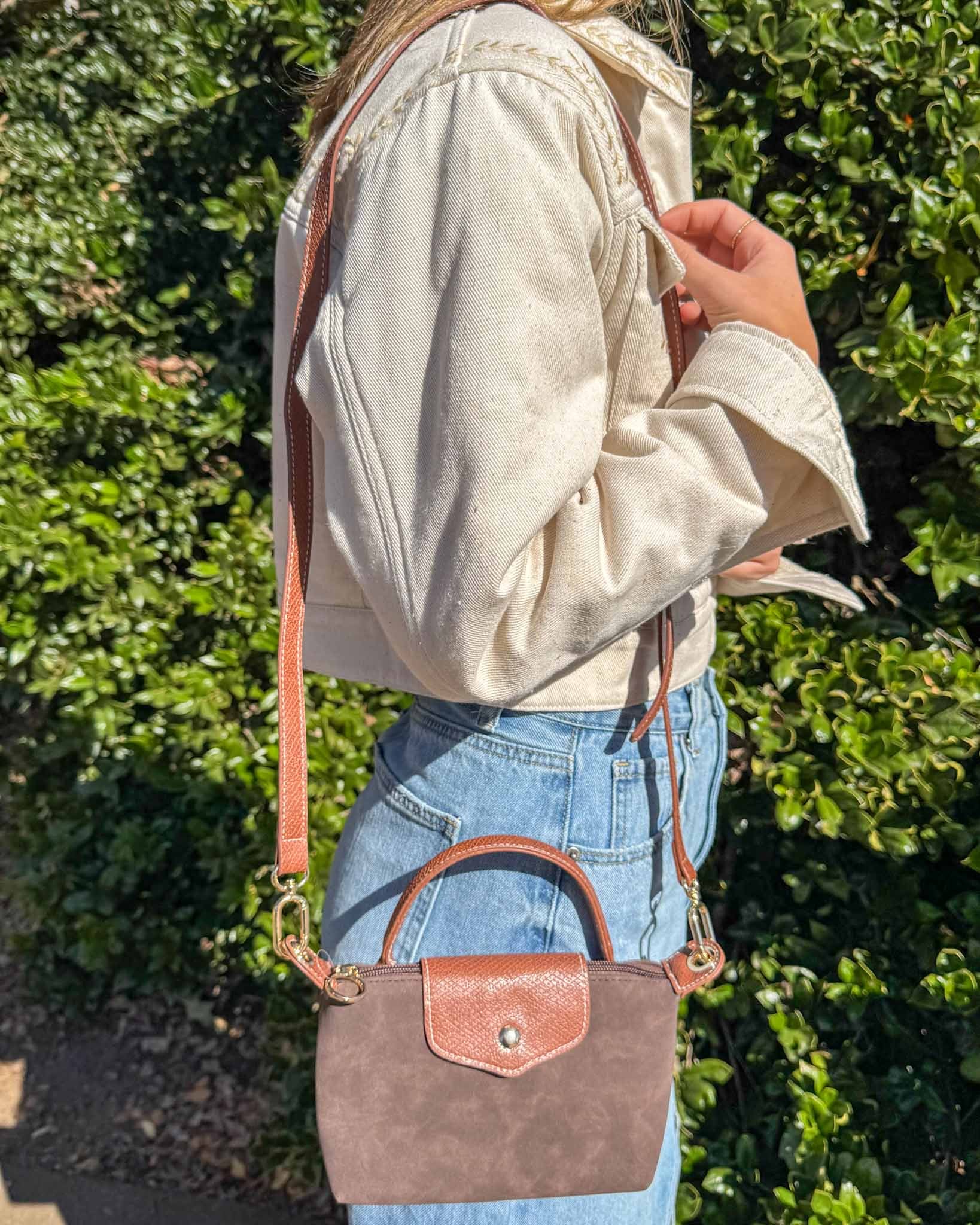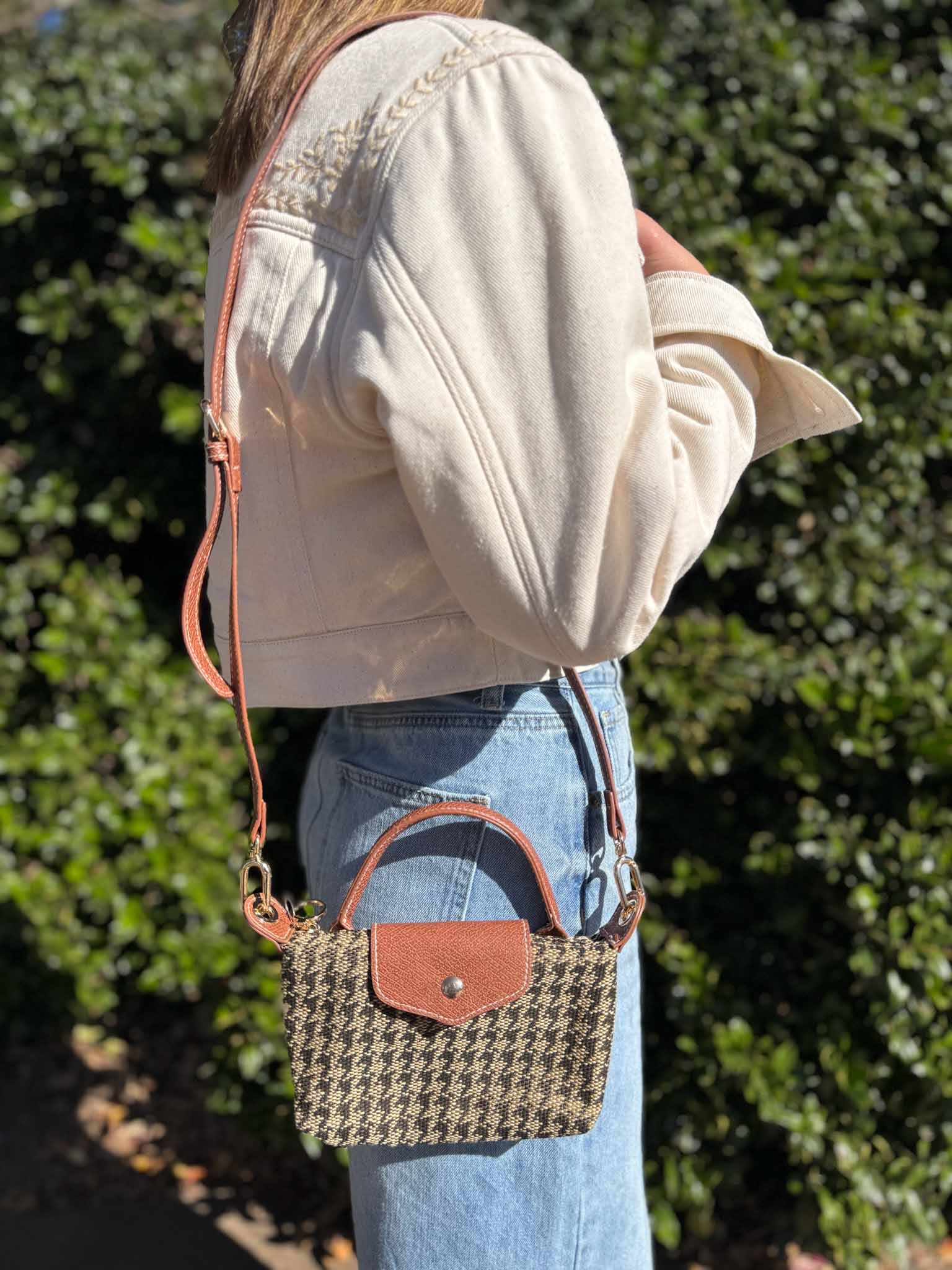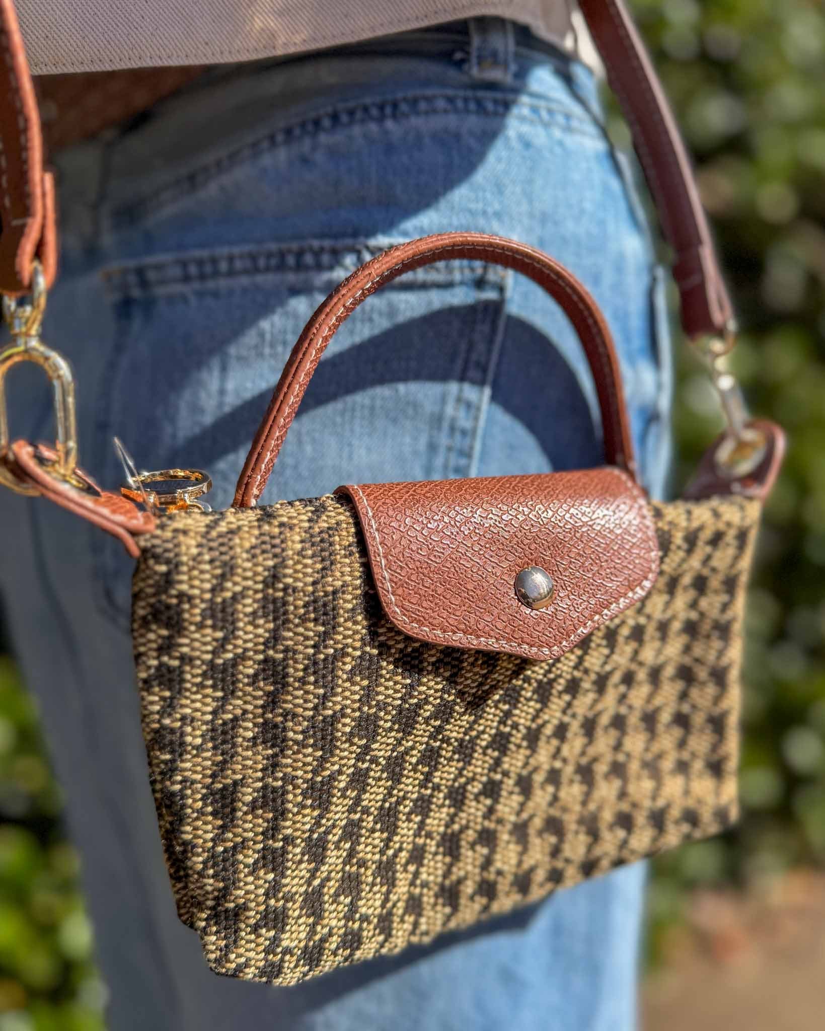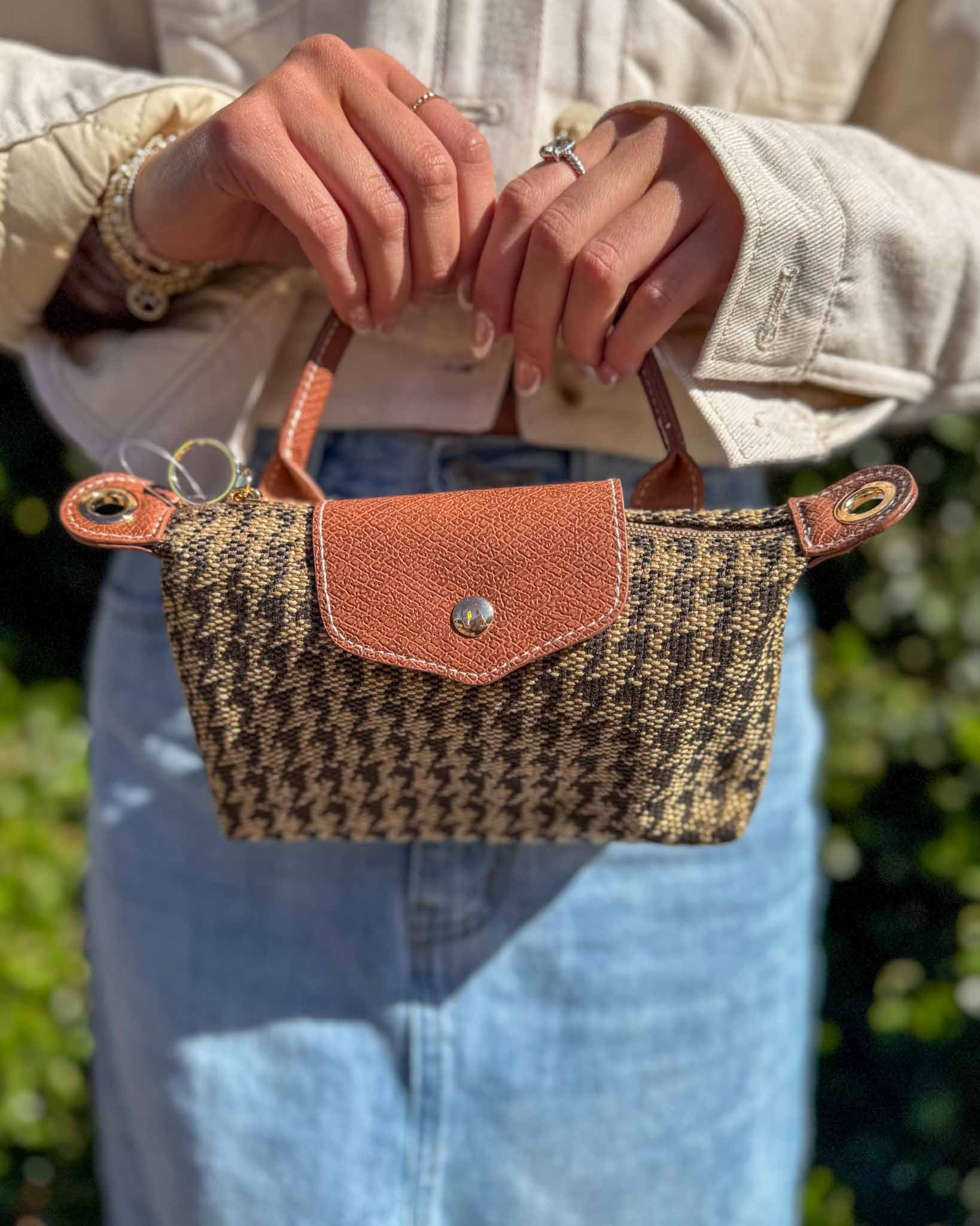 Beaded Canvas Tiger Stripe Bag - Brown/Cream