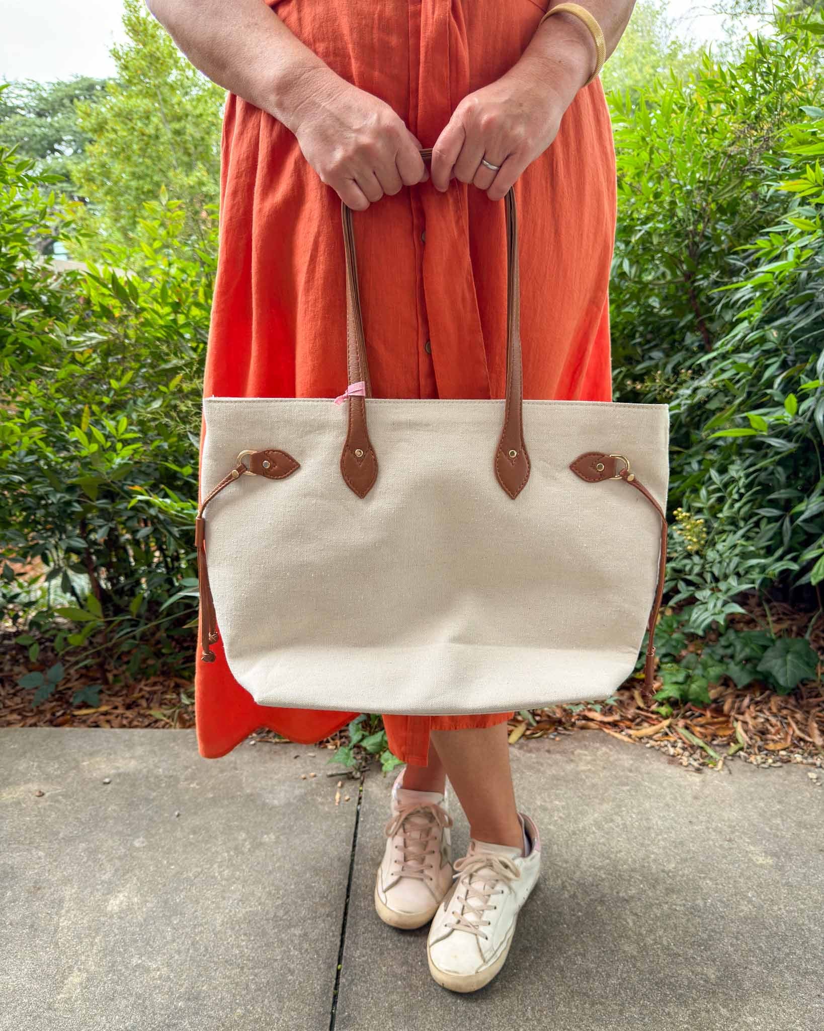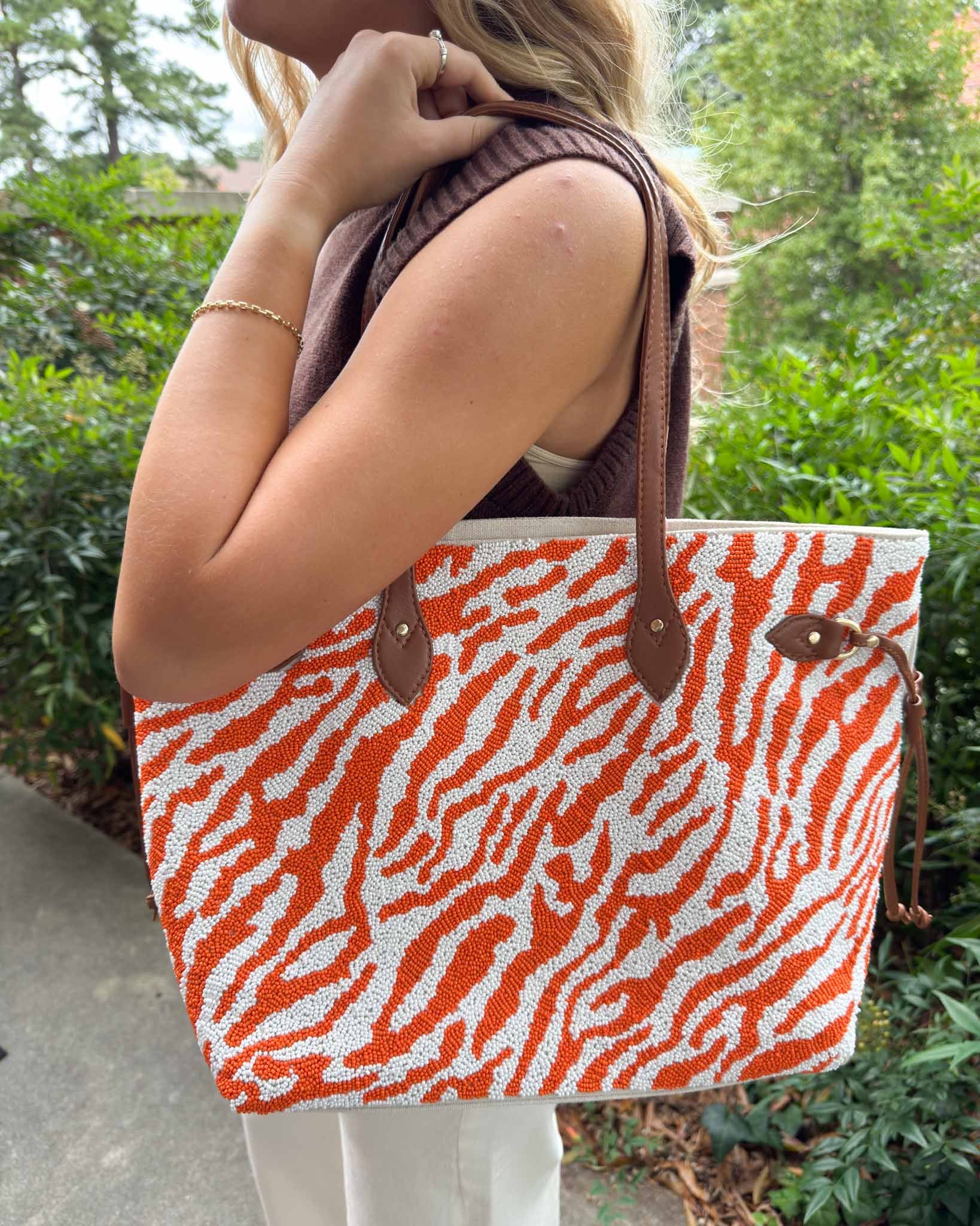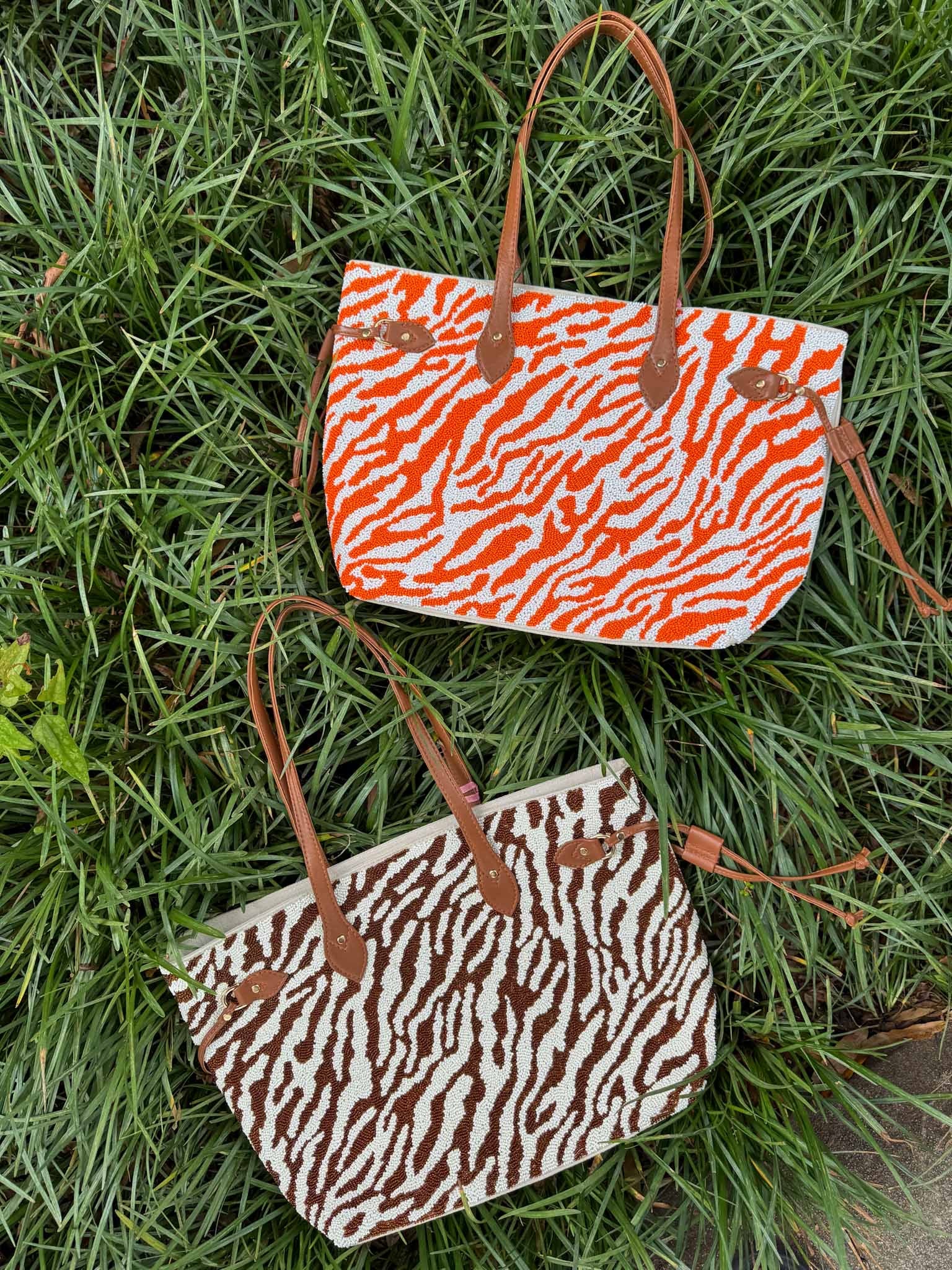 Beaded Canvas Tiger Stripe Bag - Orange/White
