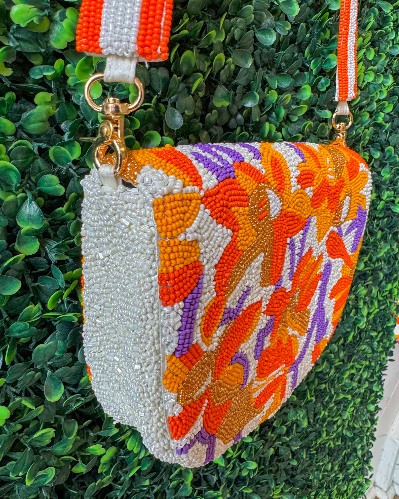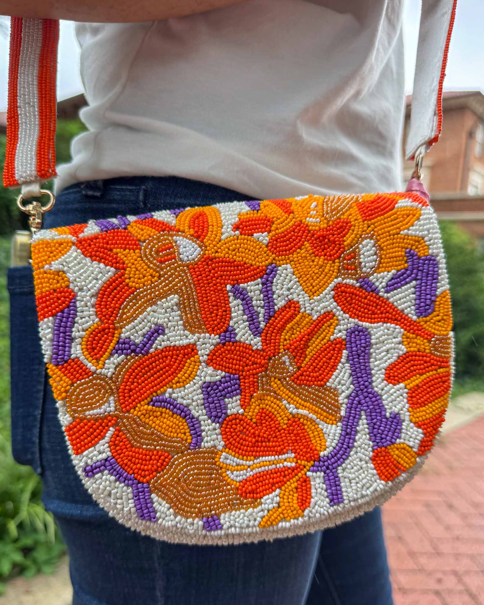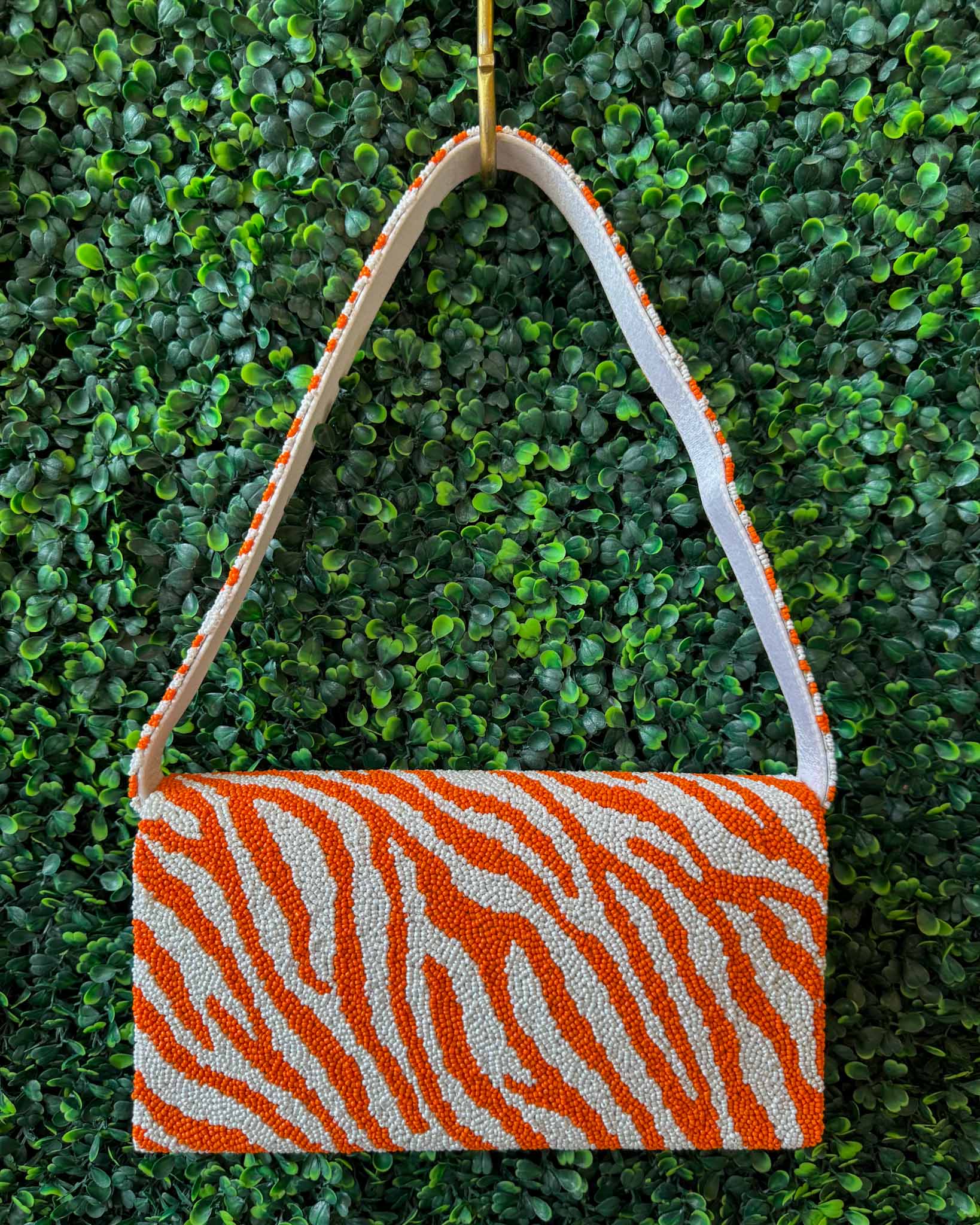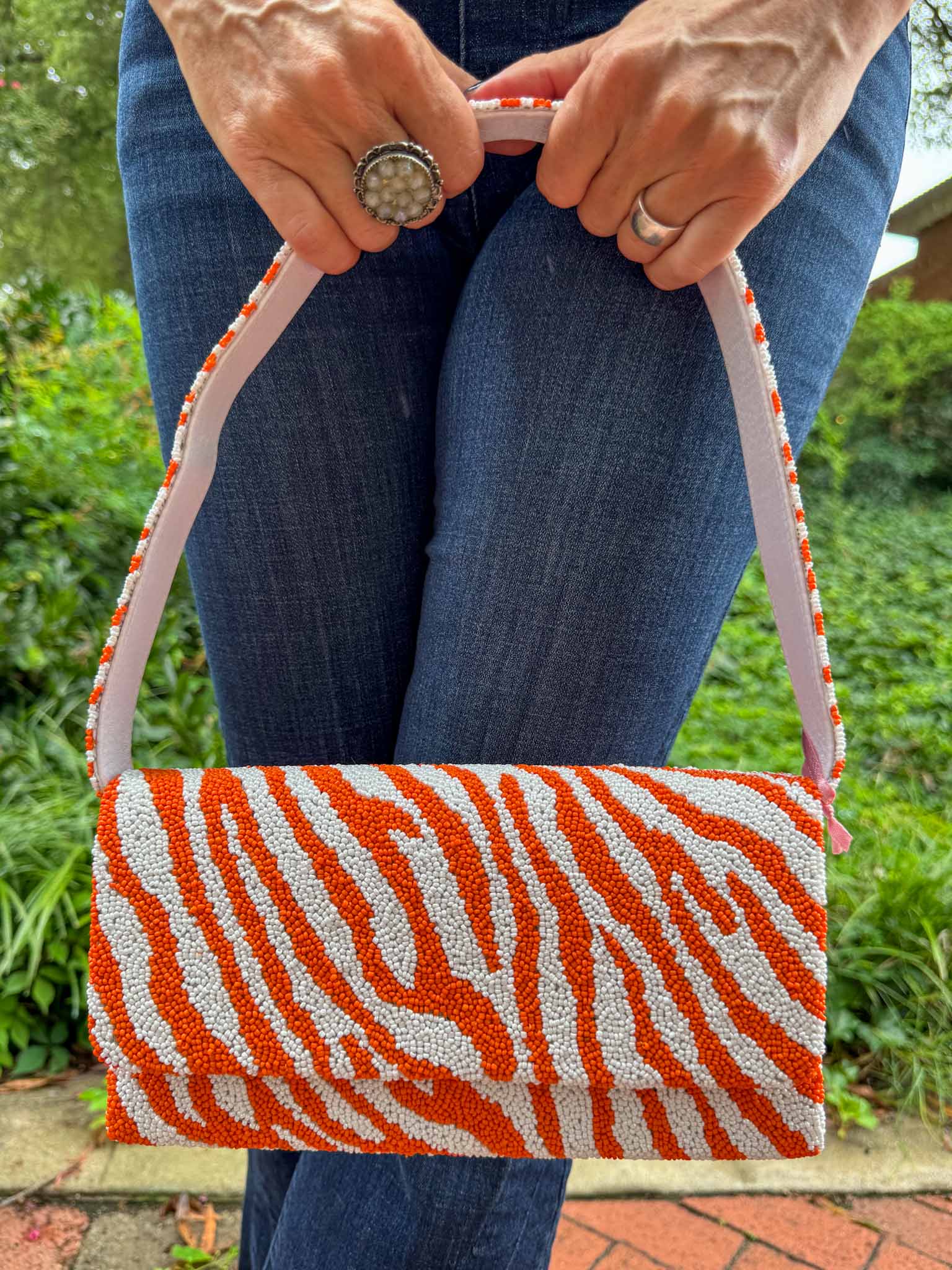 Beaded Canvas Tiger Stripe Bag - Orange/White