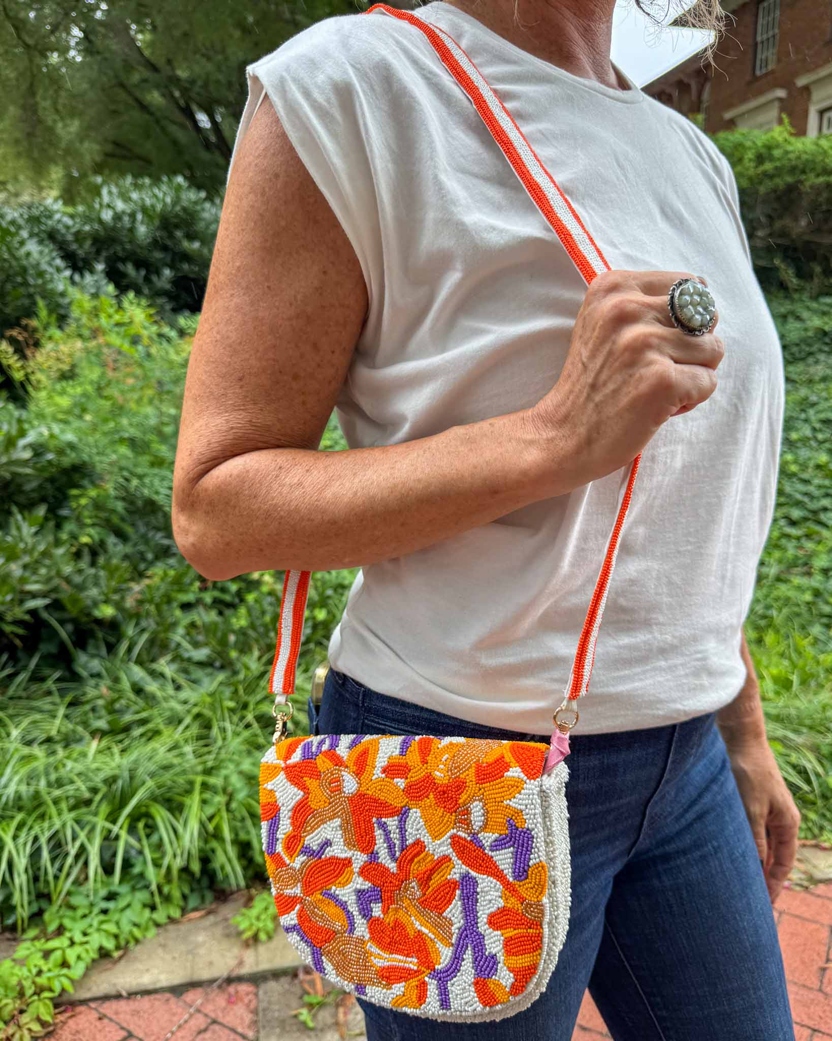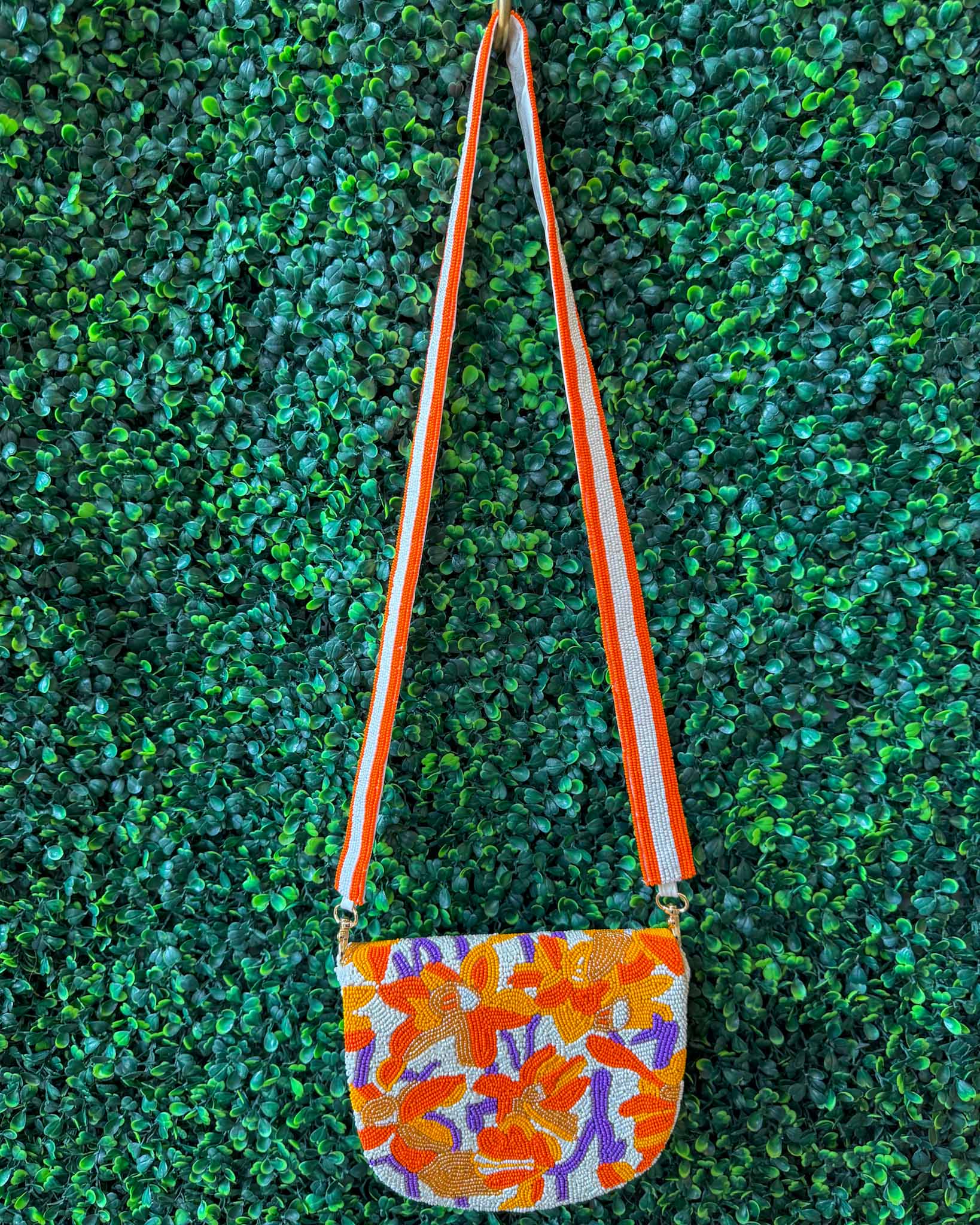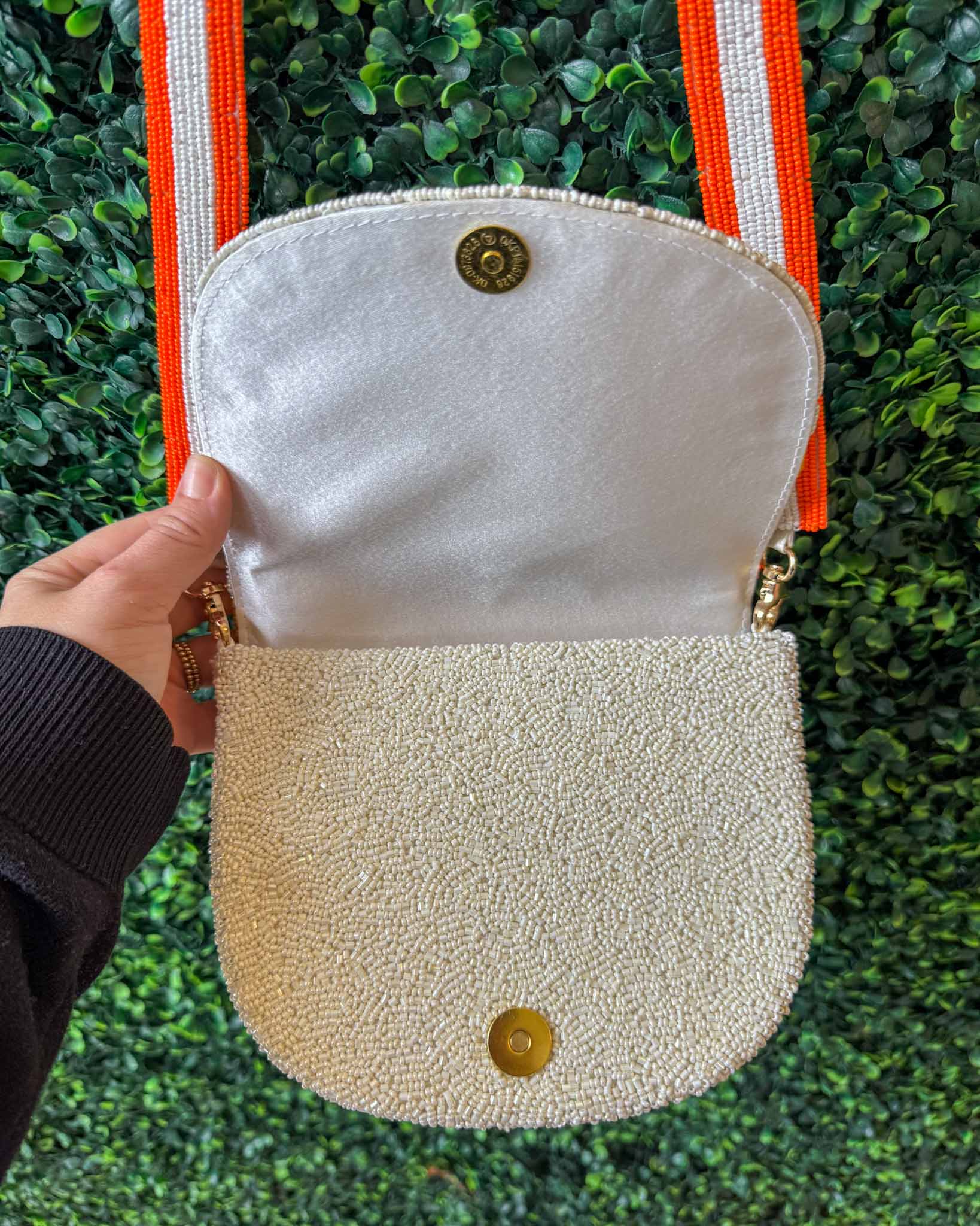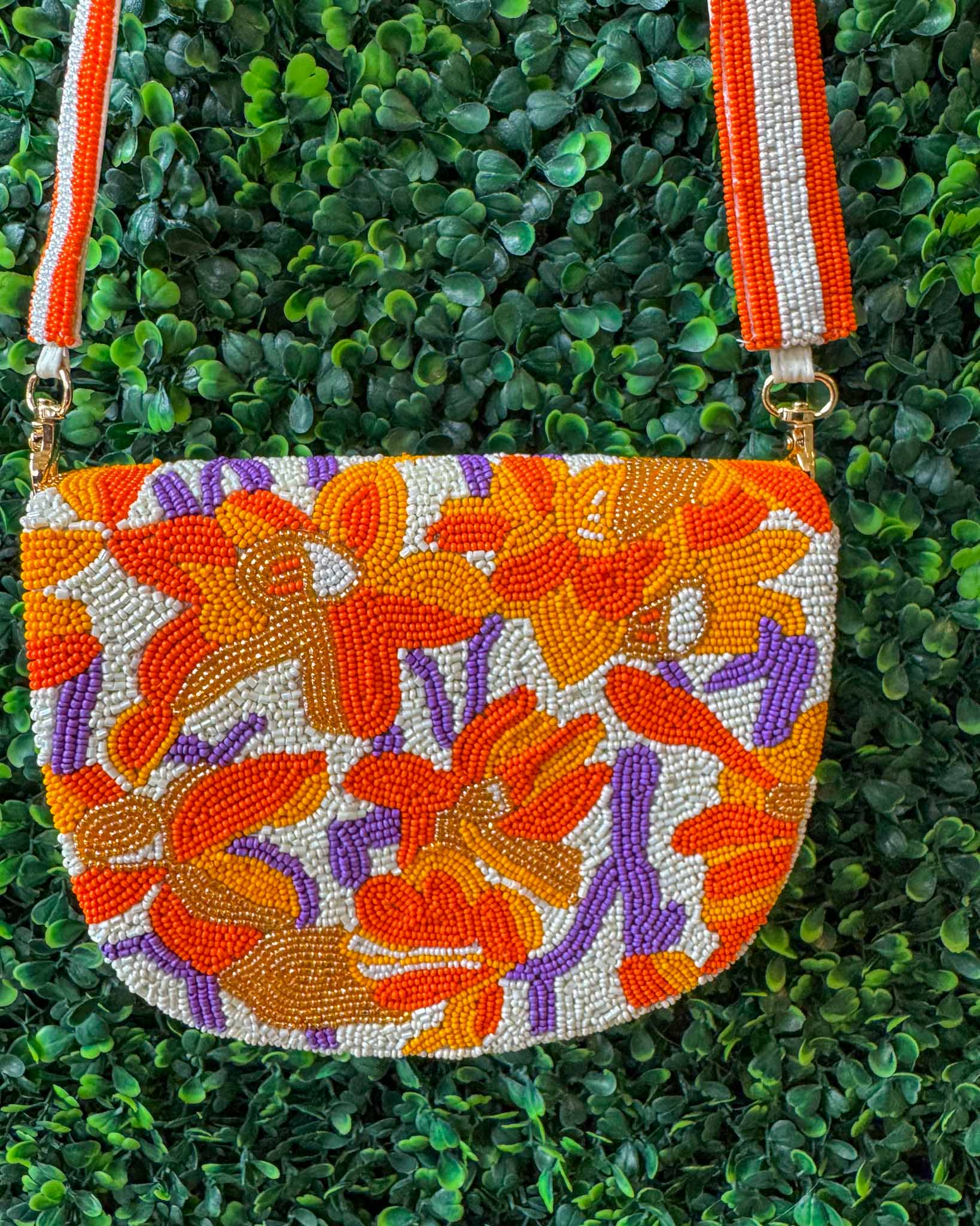 Beaded Canvas Tiger Stripe Bag - Orange/White