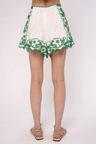 Playful yet polished, these embroidered shorts are the perfect blend of structure and statement style. Designed in a soft ivory base with bold green floral embroidery, they feature a scalloped hemline that adds a feminine, elevated touch.