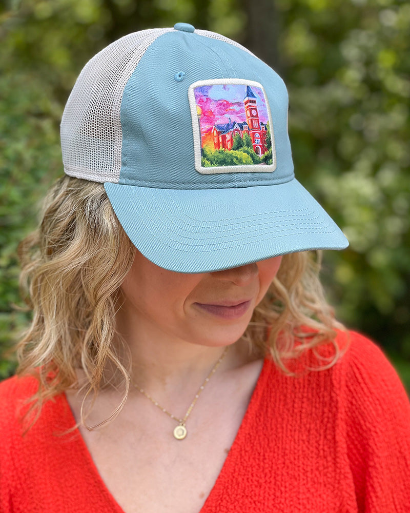 Rep your favorite college campus in the Old Main Hat! This vibrant patch is a painting by Cherry Day Art, created exclusively for True Orange Boutique. A great gift for your Clemson girl!