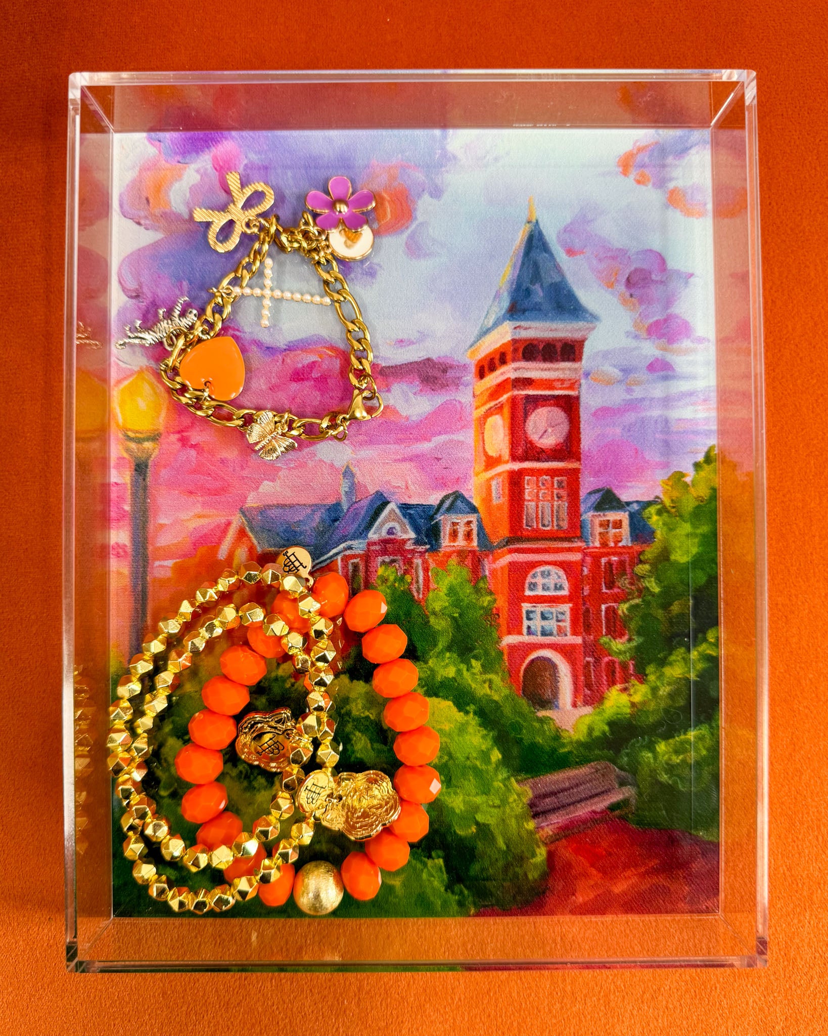 We are obsessed with this tray! This beautiful tray featuring artwork from Cherry Day Art is not only a cute decoration for your room, but is such an easy way to hold little things! Remotes, hair clips, and other little things would be perfect for this gorgeous tray!