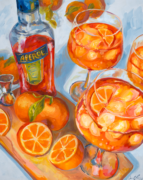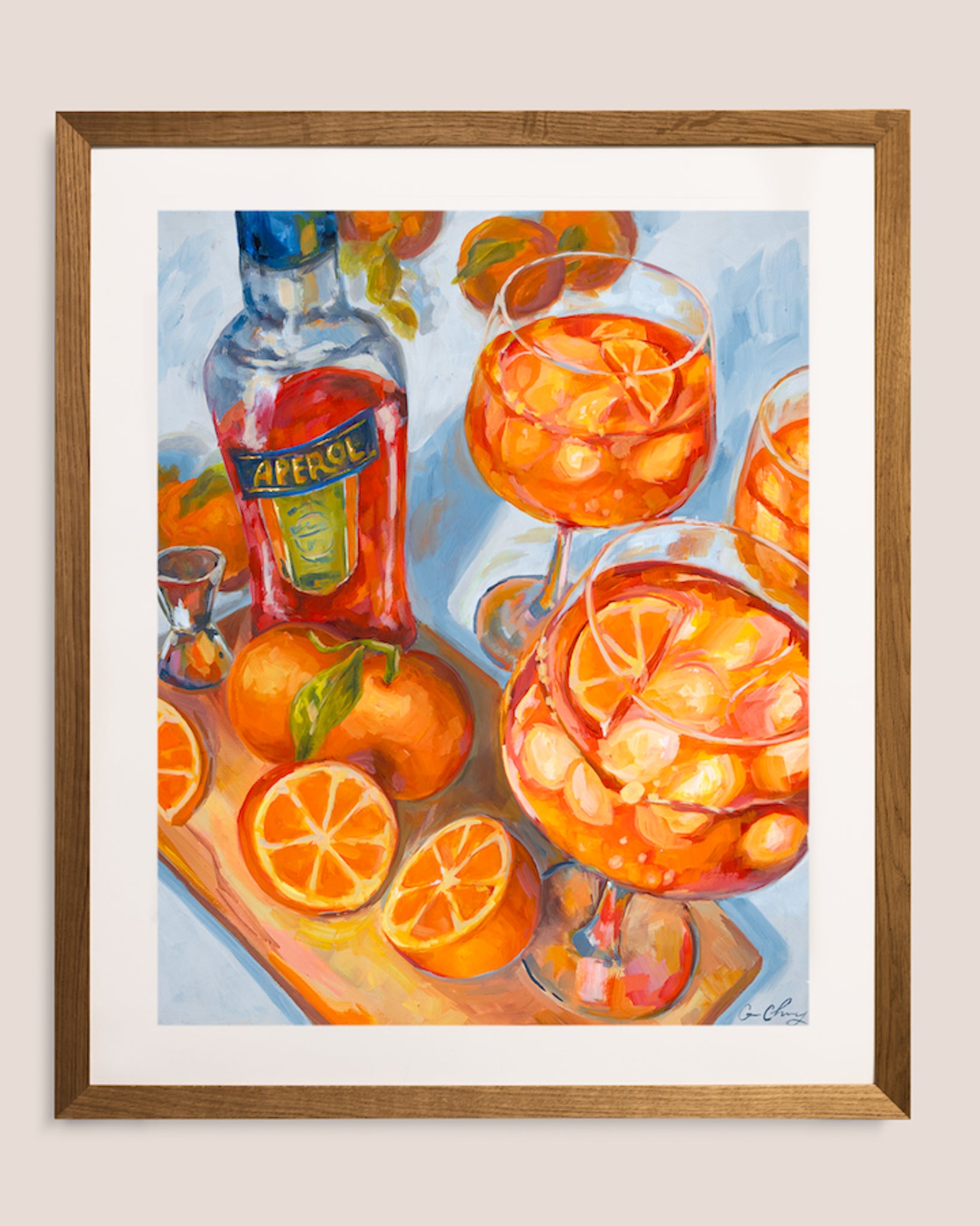 Who doesn't love an Aperol Spritz? This Aperol Spritz print is part of the Orange Garden Series by Cherry Day Art. Read more about the inspiration for these pieces and view the original paintings here.