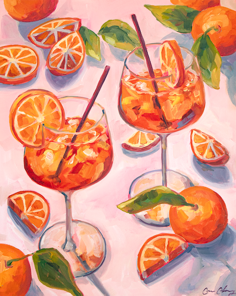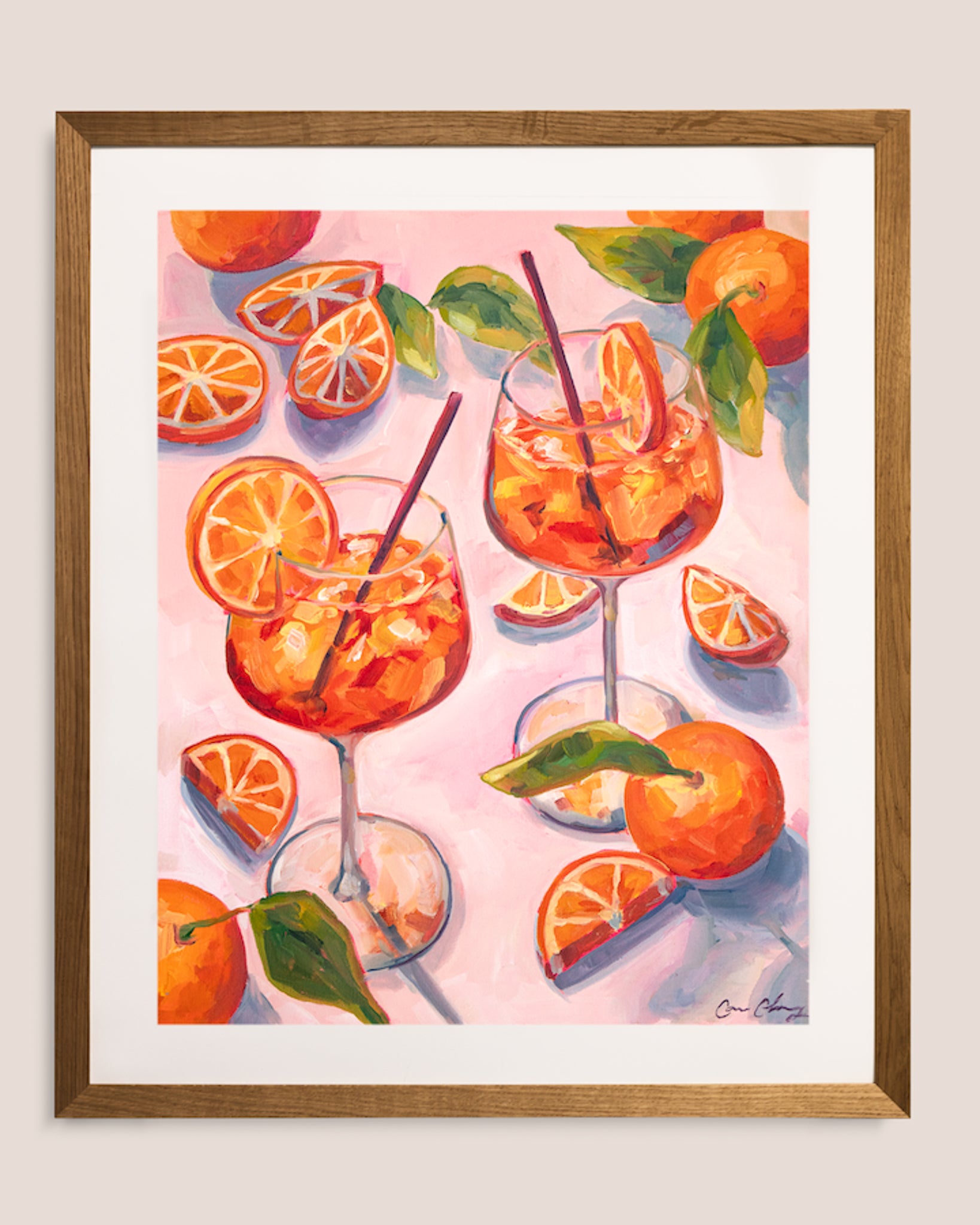 This Sunset Spritz print is part of the Orange Garden Series by Cherry Day Art. Read more about the inspiration for these pieces and view the original paintings here.