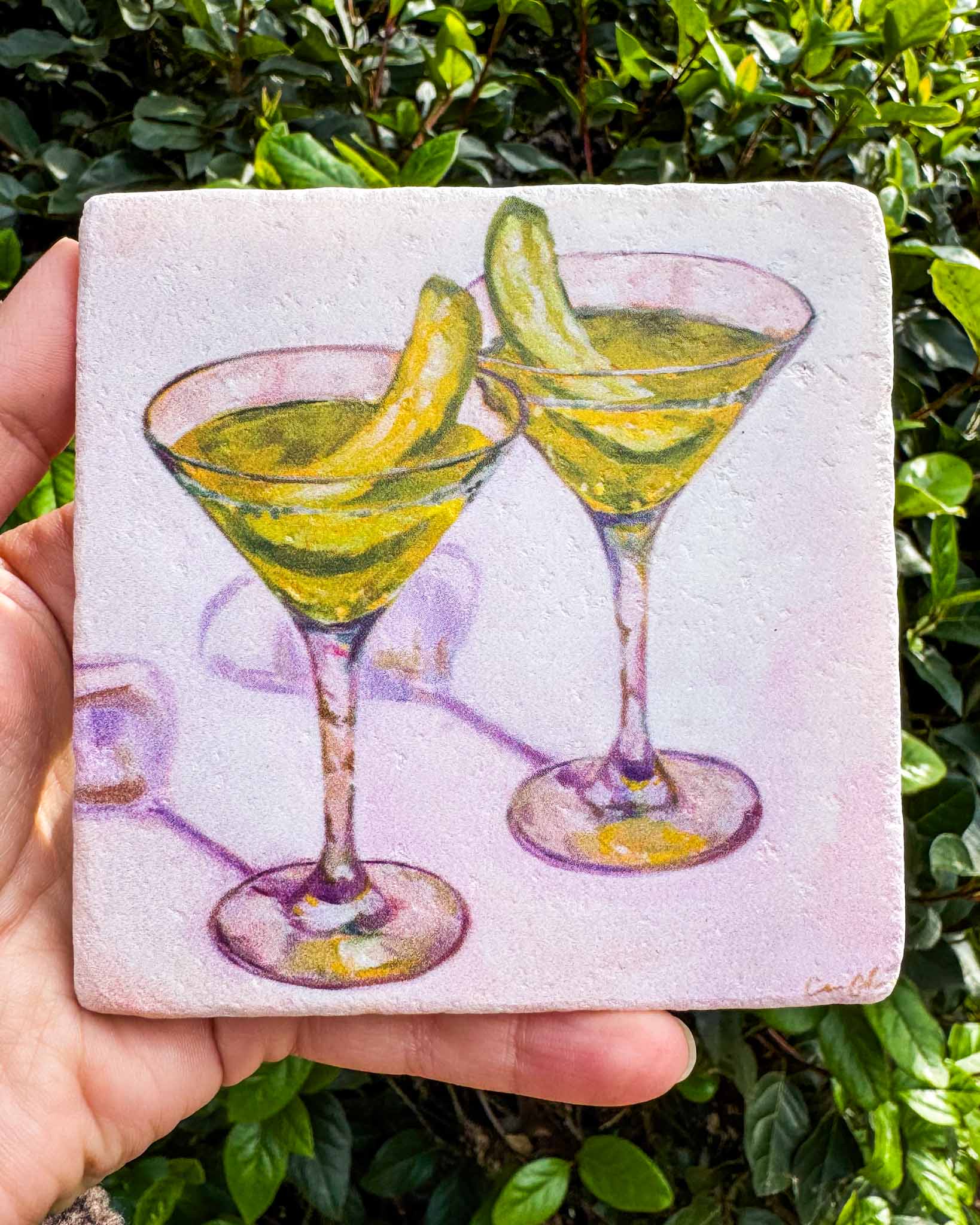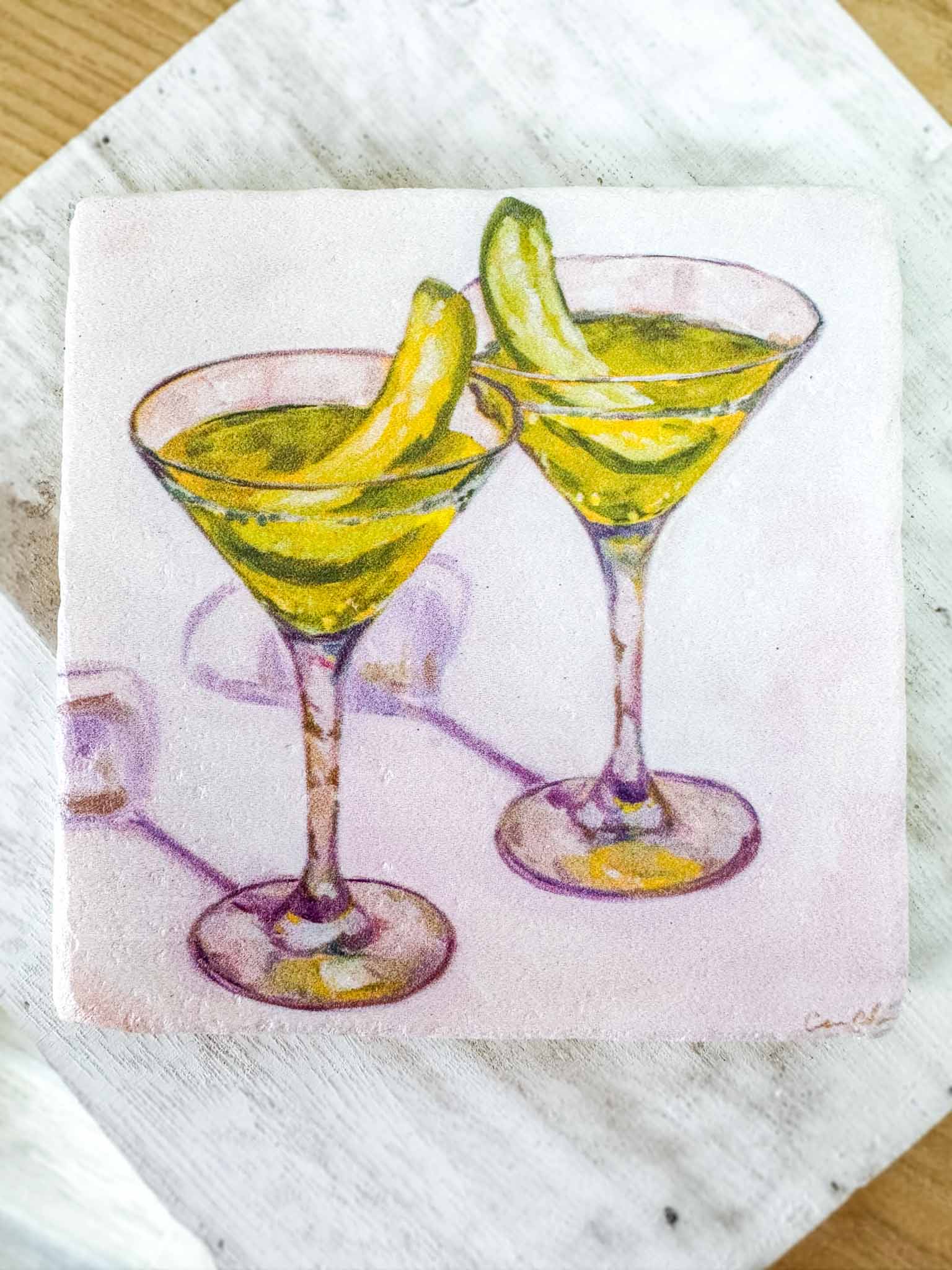 A staple in Clemson, the Pickeltini is a Tigertown Tavern classic loved by many! This is a new style of the True Orange Exclusive by Cherry Day Art Pickletini - not to mention it features double the fun. Commemorate some of your best memories with this coaster, perfect for every Clemson girl's bar cart!