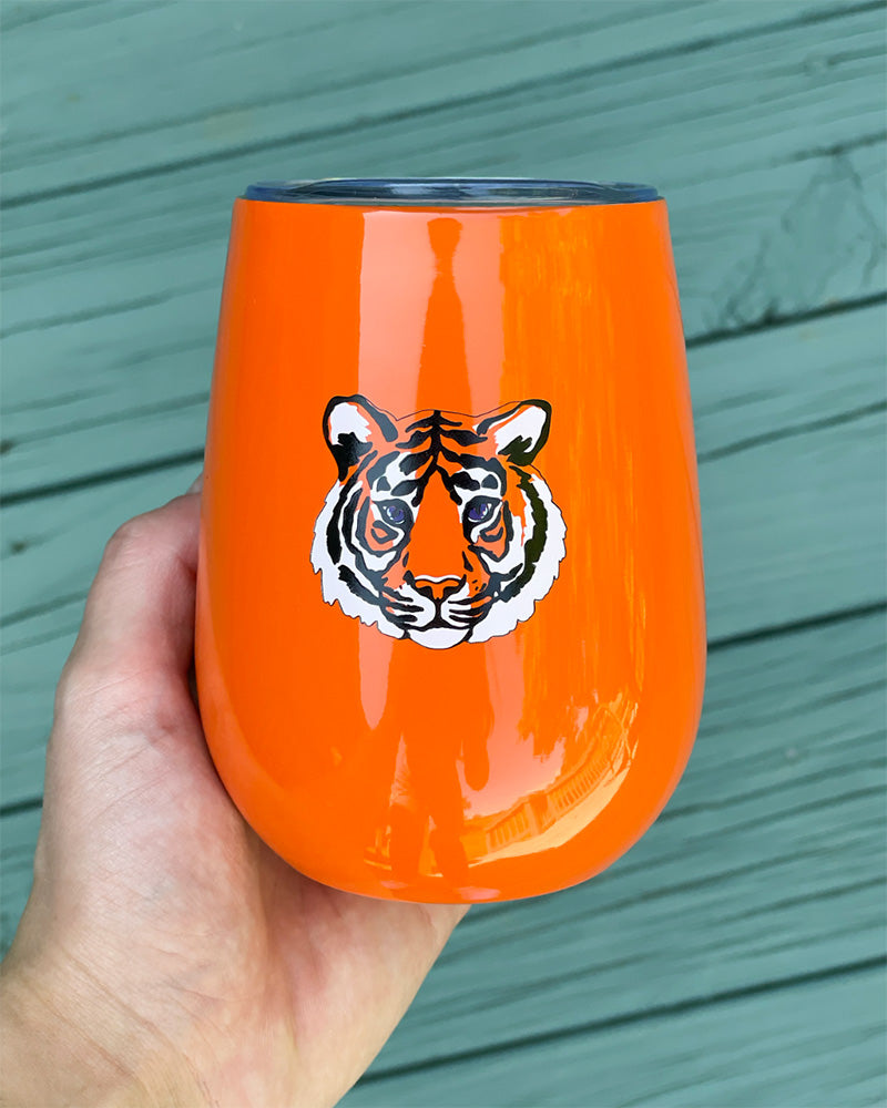 This tiger tumbler is perfect at home or on the go! Keep your drink hot or cold, and be the talk of the tailgate!