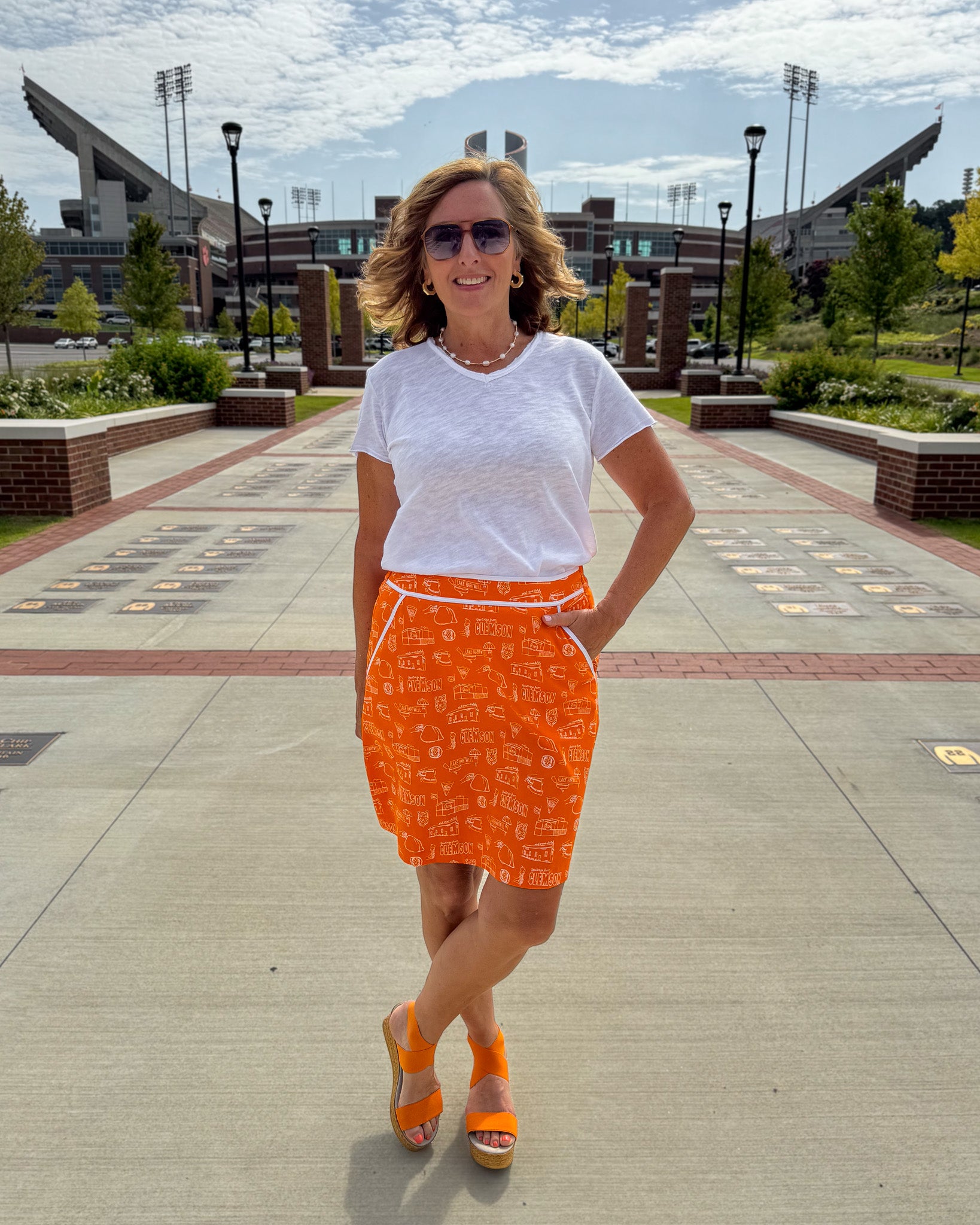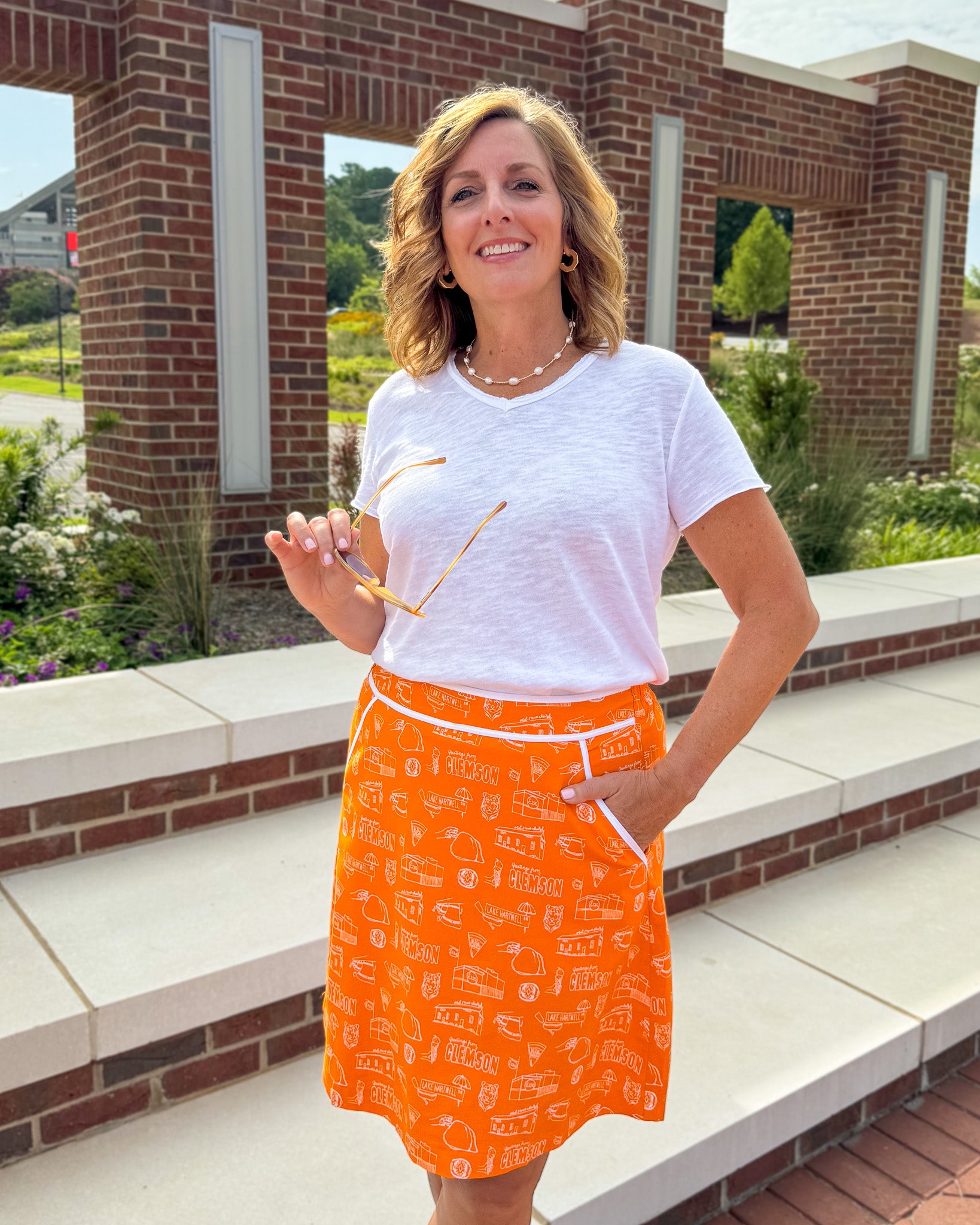 The game day skirt of our dreams has arrived! You will be wanting to reach for it every Saturday as you get ready to watch our Tigers. Pair it with a white top and sneakers or wedges. This outfit can go from casual to dressy in seconds.