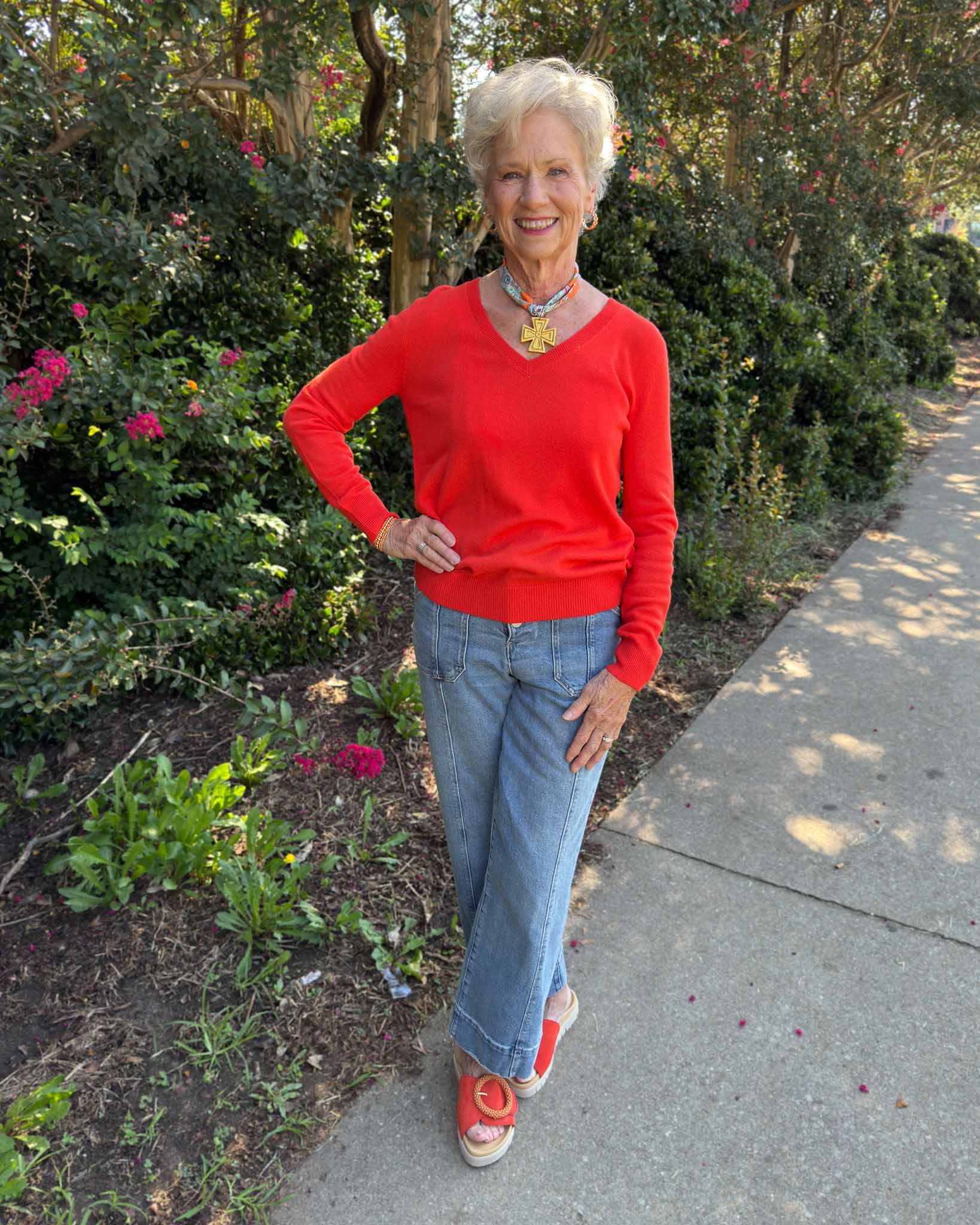 Sleek, simple, and endlessly versatile - Orange, v-neck sweater is a wardrobe staple. Crafted from a soft knit, it features a flattering neckline, ribbed cuffs and hem, a tailored-yet-relaxed fit that works for both casual days and polished looks. Pair it with denim for effortless style, or layer it over a collared shirt for a polished look!
