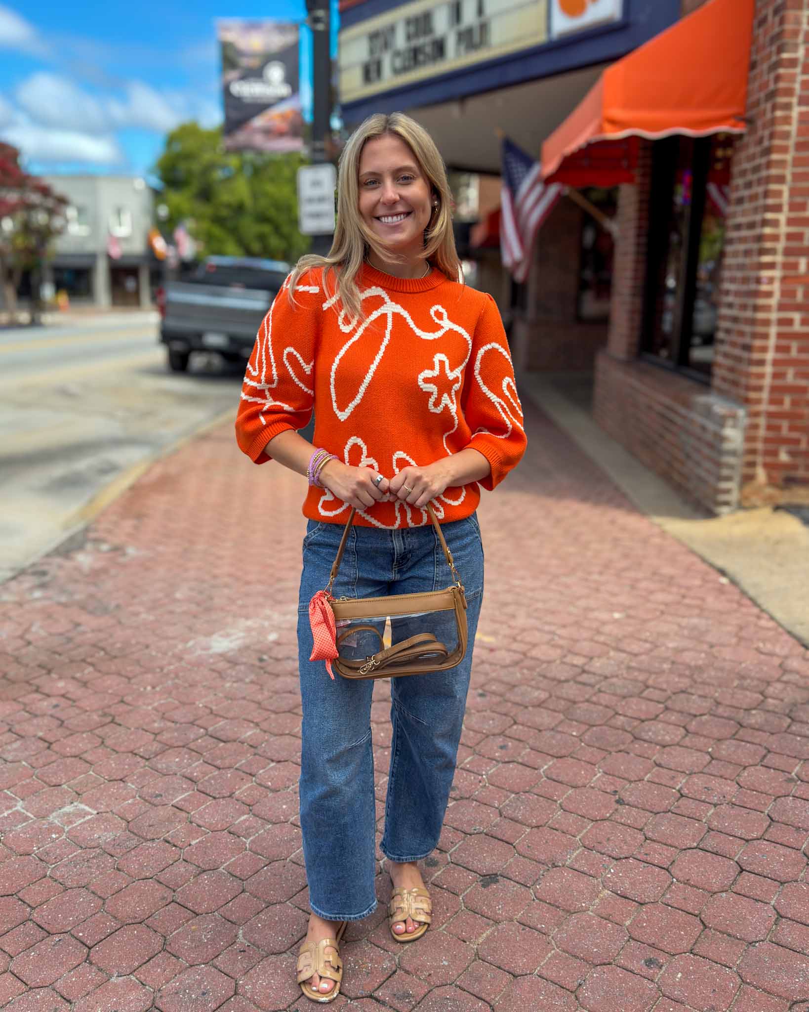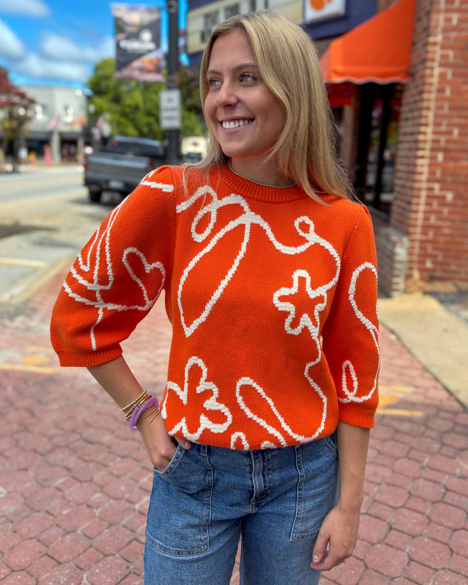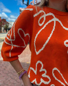 This adorable puff sleeve top is the perfect addition to your game day line up this season! Not only does this piece feature a fun quarter sleeve, but the sweetest embroidery detailing. Curate the perfect game day look with dark denim, a front tuck to add shape, and some of our many game day accessories! This is a great piece to have in your collection for those cooler games.