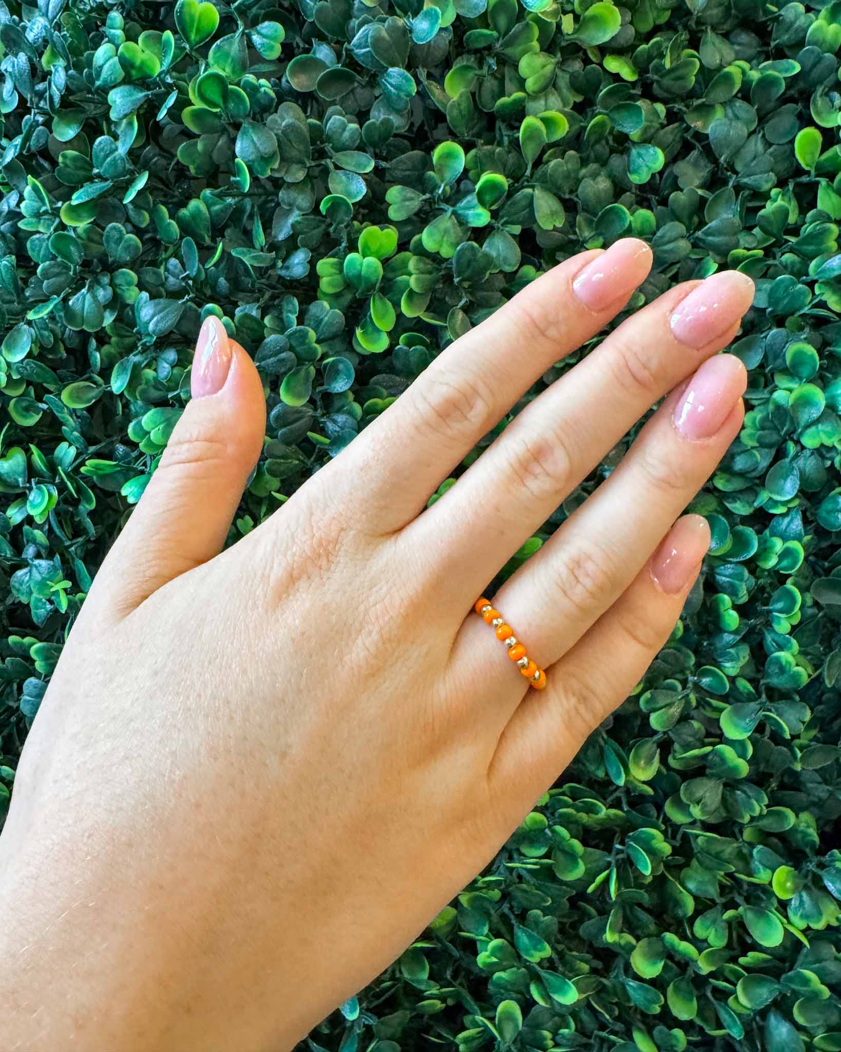 We are loving the Demi ring for stacking! Not only are these perfect for game day wear, but also every day! The Demi ring features 3mm gold and glass beads, and a stretchy elastic band. Additionally, it is waterproof, workout proof & tarnish proof.