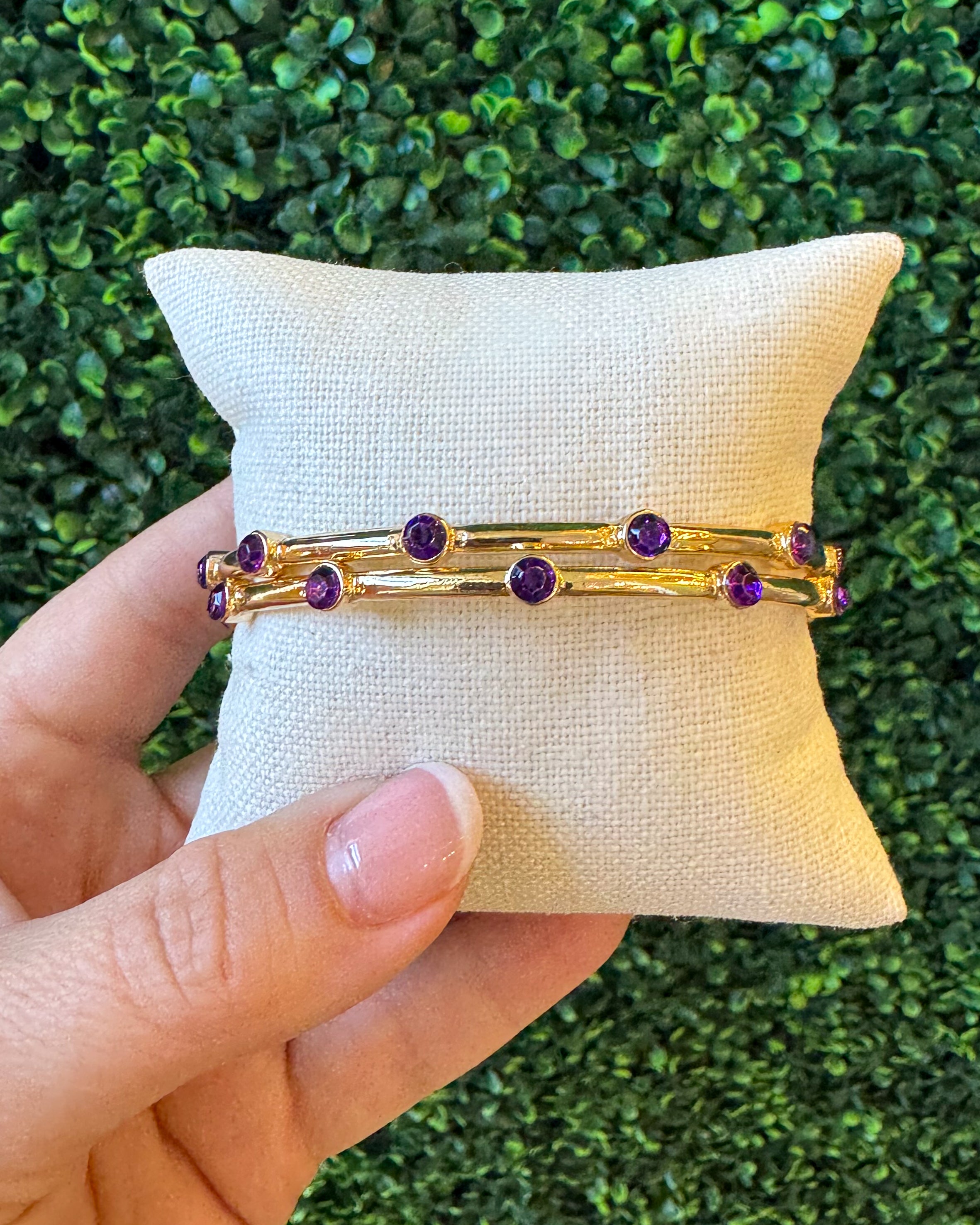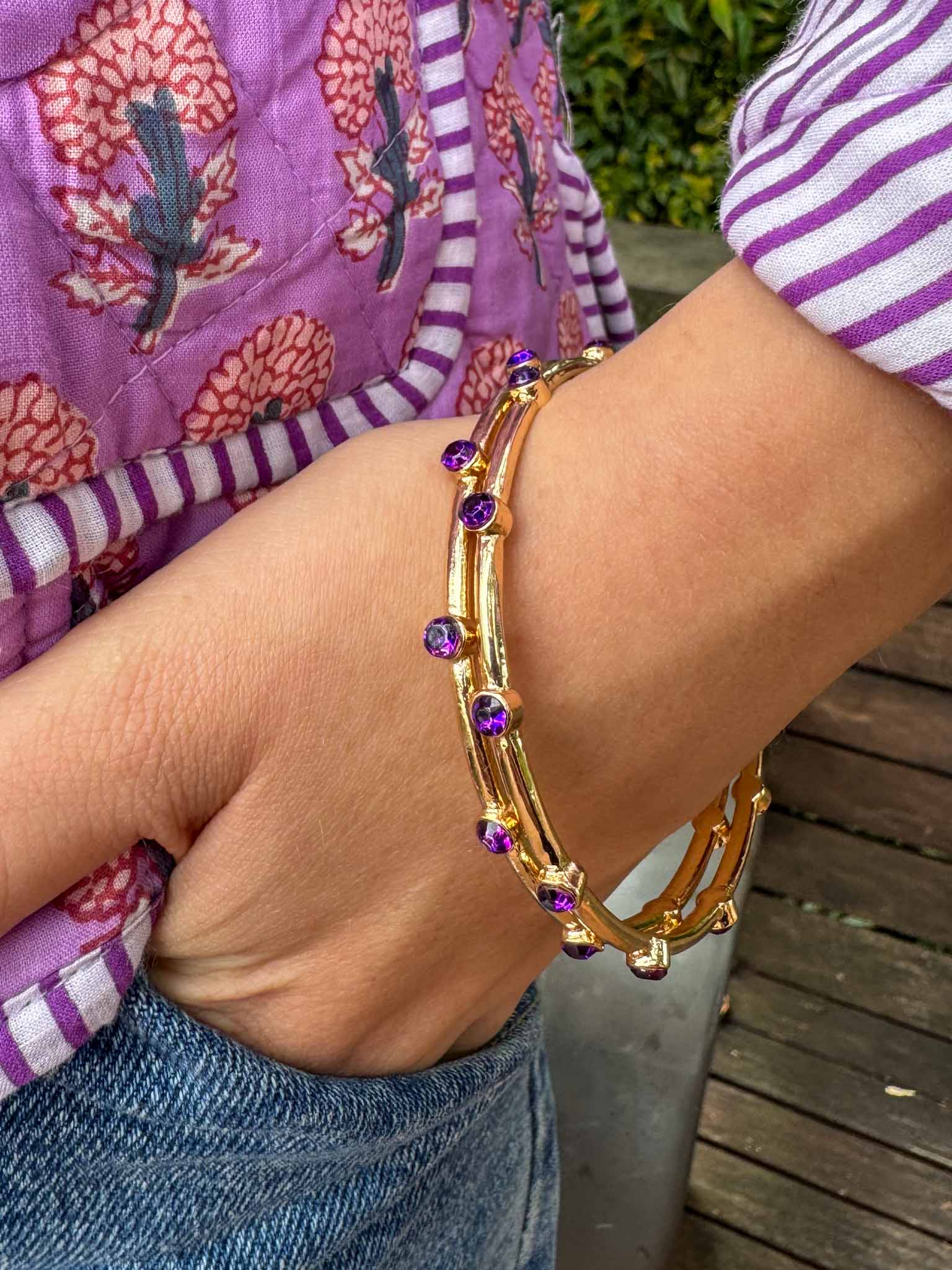 Gold Bangle with Purple Jewels