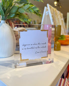 Give the gift of words! This beautiful 4x4 Acrylic Frame is the perfect addition to your space. Place on your desk, on a book shelf, or wherever you could use a delicate, beautiful reminder day-to-day!