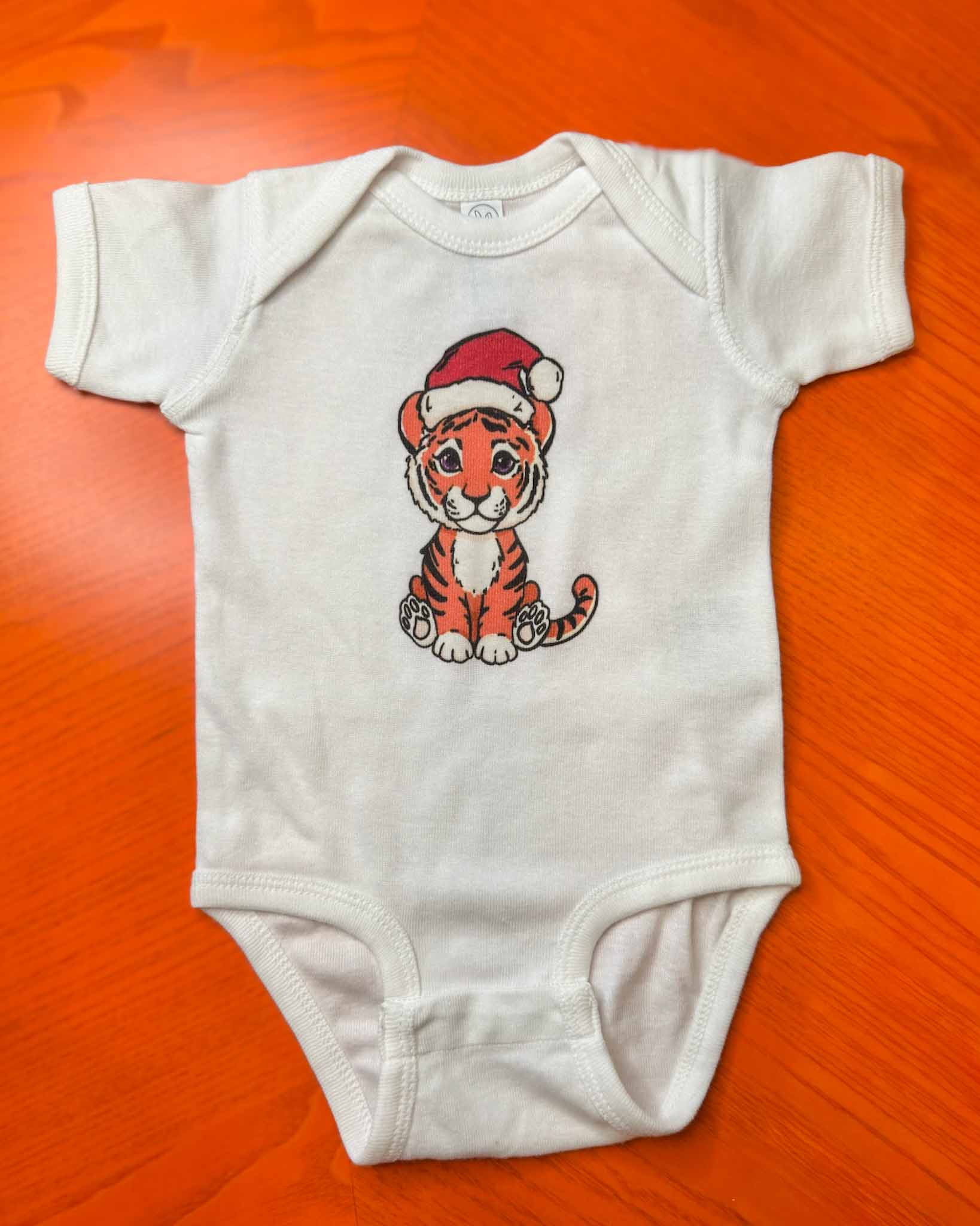 Created exclusively for True Orange Boutique, this Santa Tiger cub onesie is the perfect gift for the tiniest members of your Raised on Orange family! Snag one for your little tiger today, it's cuteness and Clemson pride all in one!