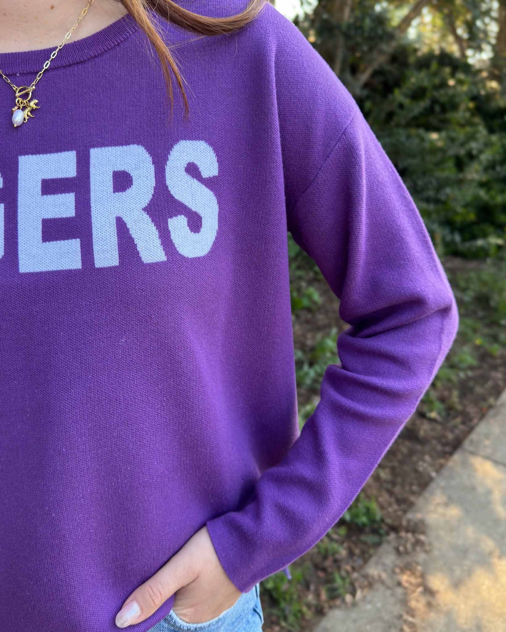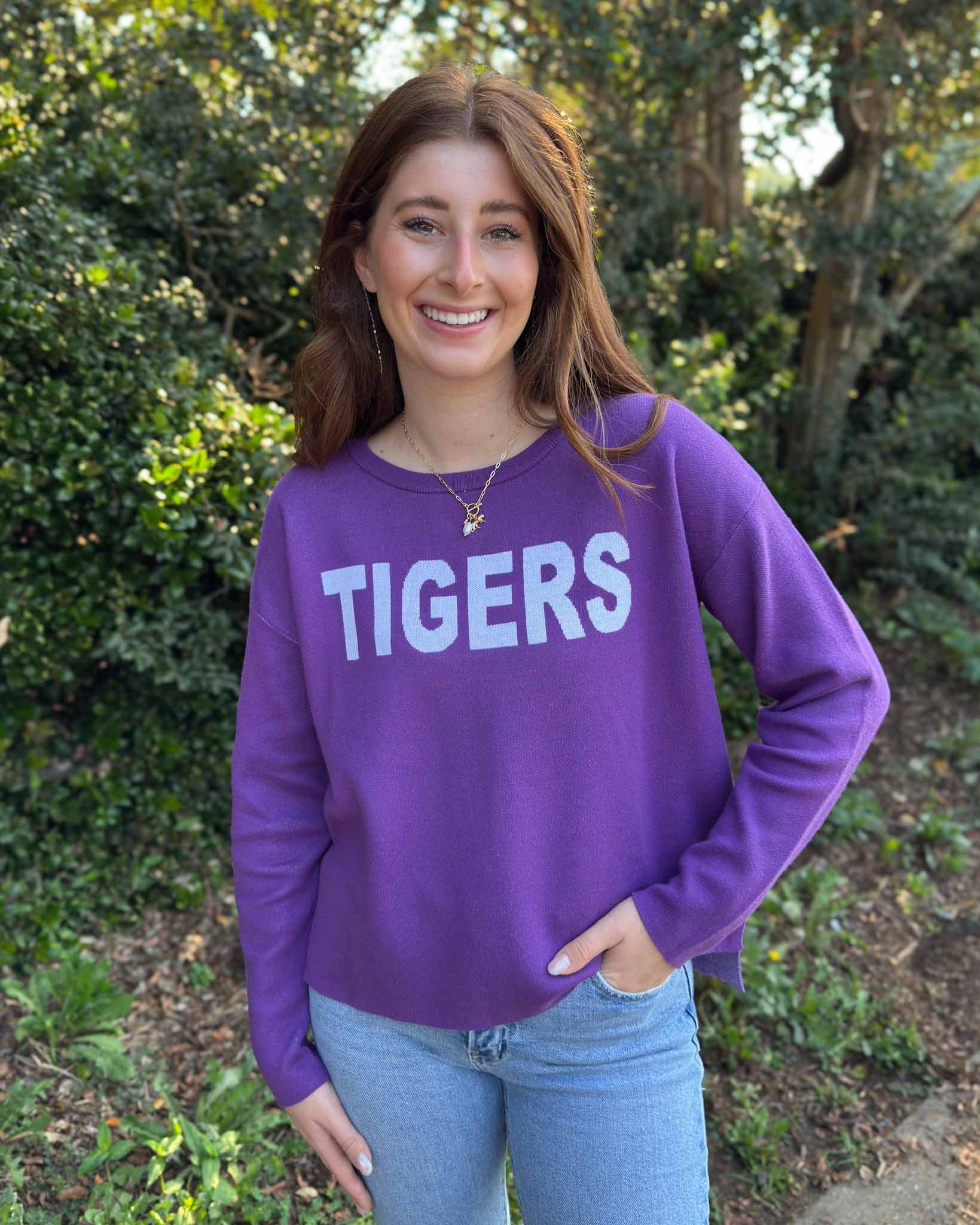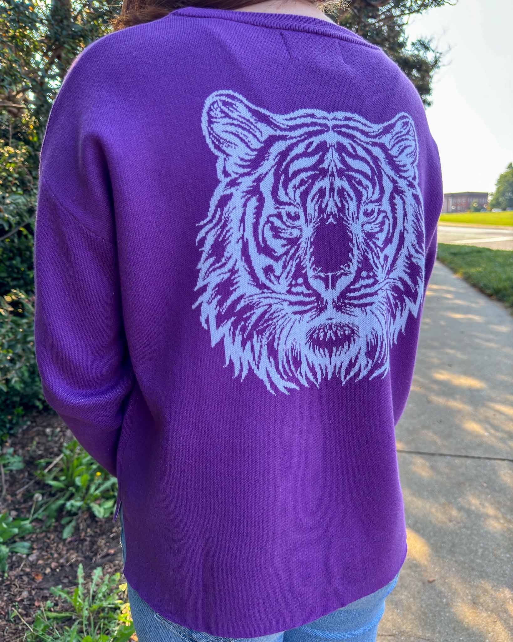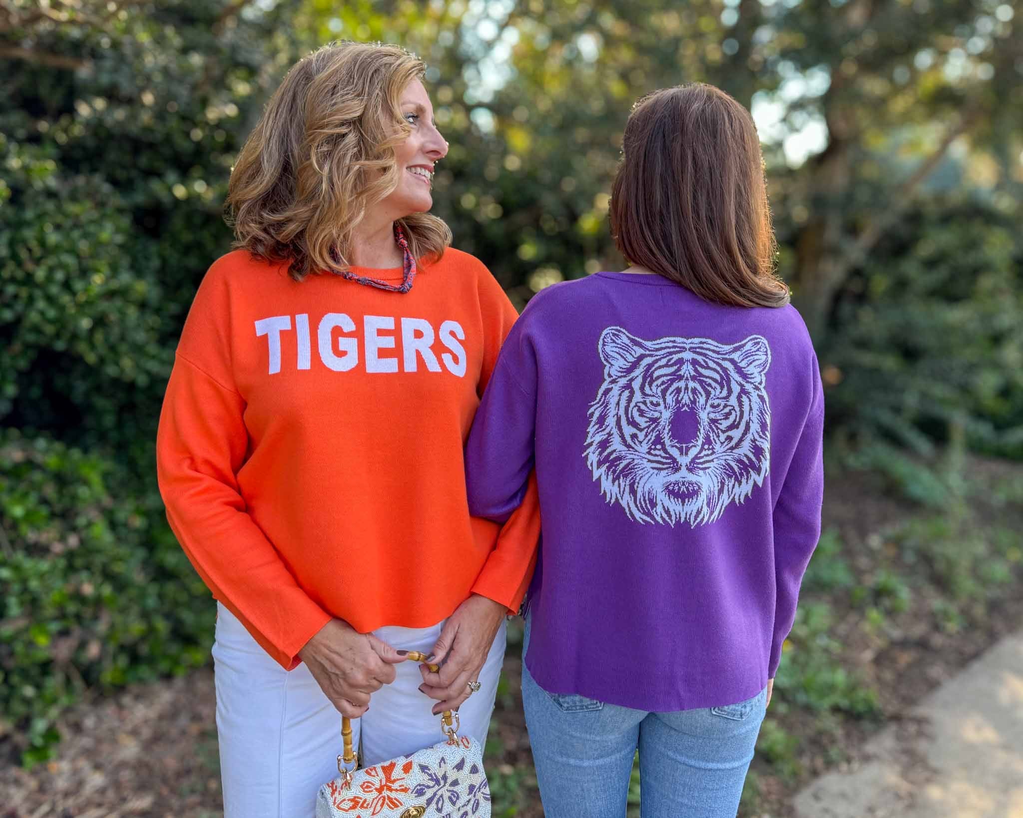 Show your spirit from all angles! This comfortable, yet chic style is perfect for chilly game days where you do not want to sacrifice style for comfort! The bold lettering featuring "TIGERS" displayed on the front pairs perfectly with the spirited tiger on the back. This piece is a must-have for any true fan. The relaxed fit makes it perfect for layering on game day, tailgates, or casual weekends. Pair it with crisp white denim or leggings and sneakers for a look that’s effortlessly cool and undeniably Clemson. Go Tigers!