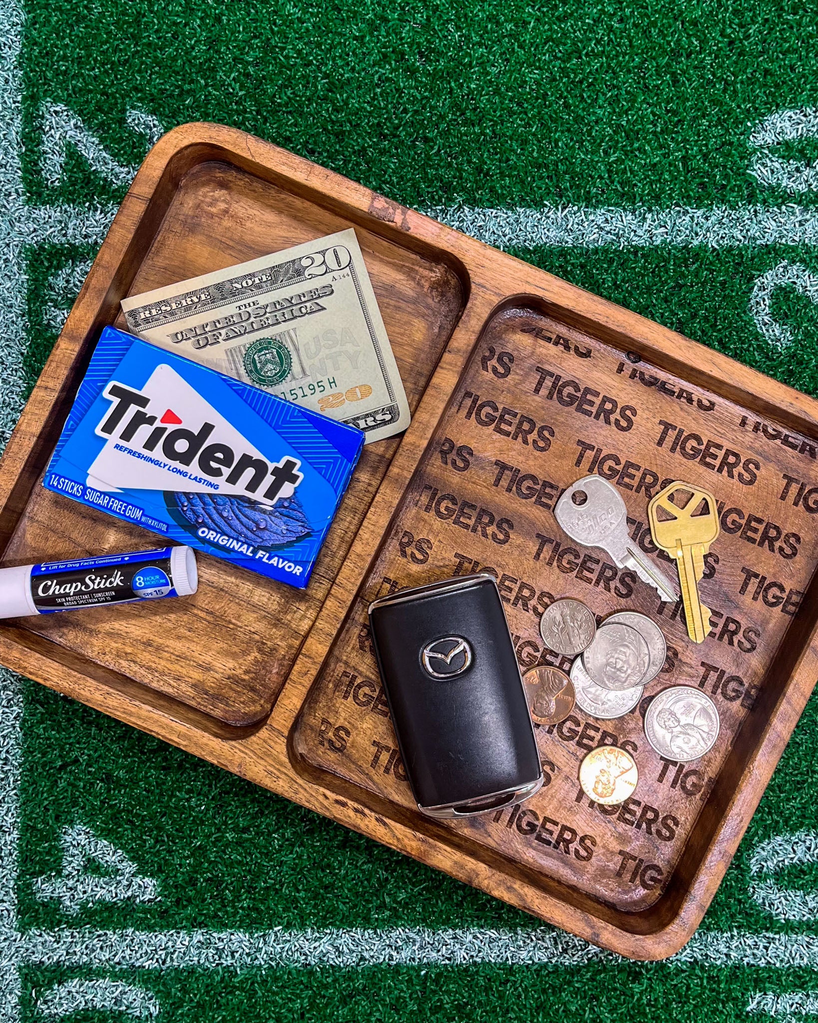 Do you know a Tiger getting their own place? This is perfect for them! Keep track of all of your necessities in this adorable tray that reminds of you all your special memories in these hills. You will never be late again searching for your stuff if they are this Tiger tray!