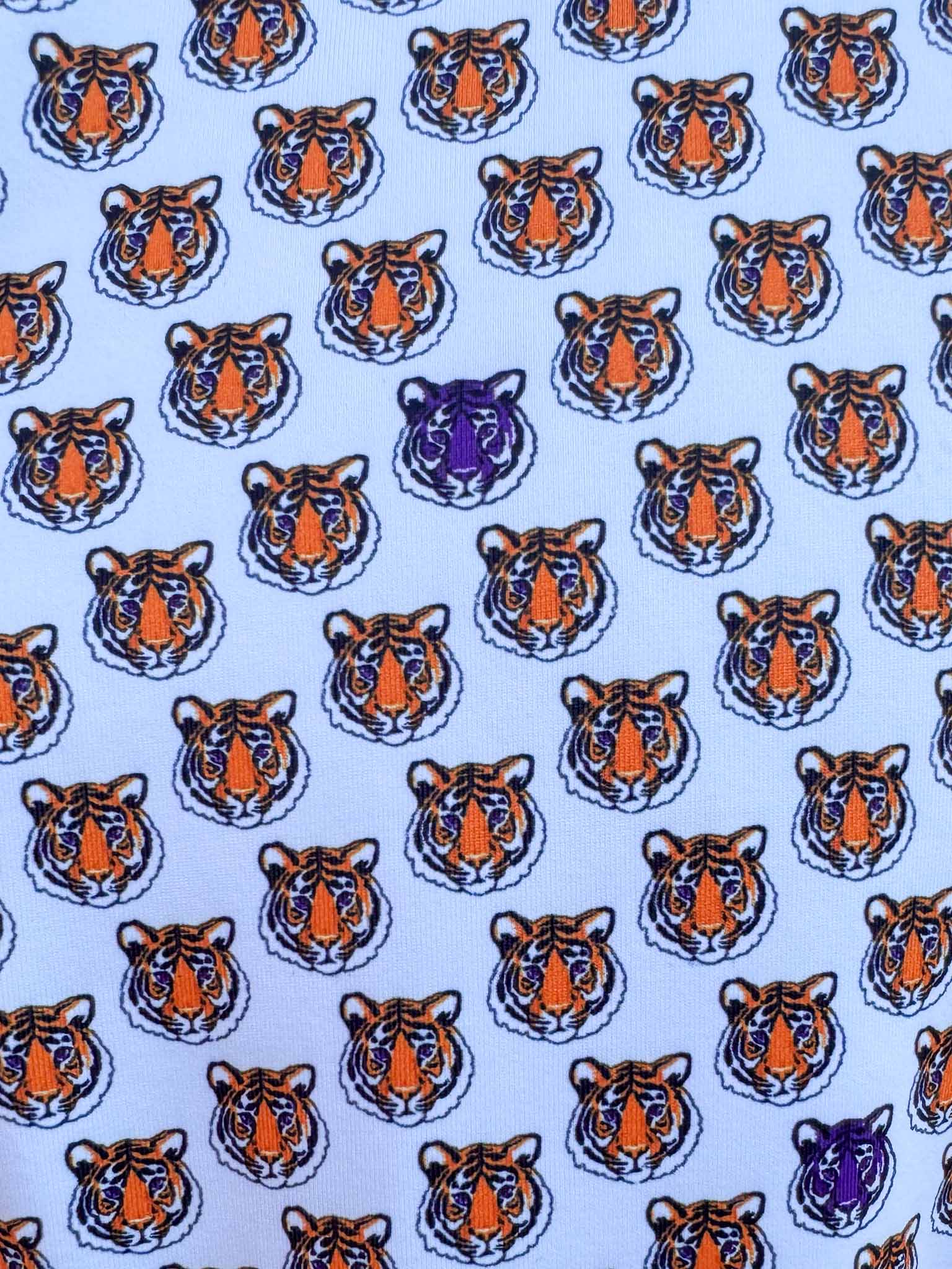 Don't let your husband feel left out of the game day shopping! Featuring our signature Tiger, this buttery soft fabric has 4-way stretch giving you a superior fit. The self wicking will keep your guy cool as the Tiger's heat up!