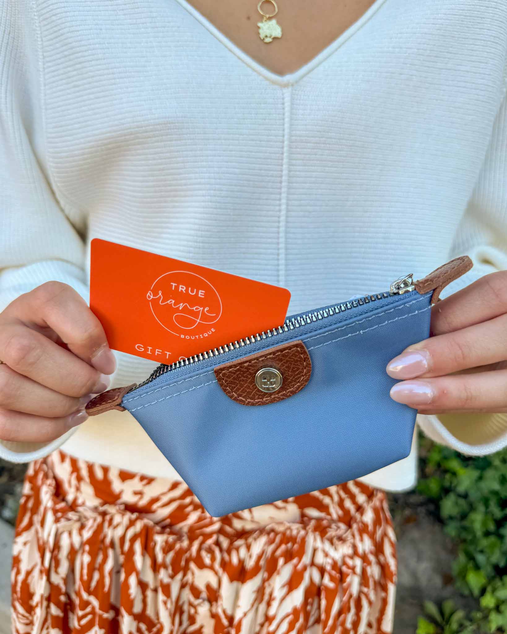 Looking for something to keep your cards safe, while staying fashionable! The Niki Key chain is perfect for adding a pop of color into your clear bag. The brown leather detailing adds the perfect contrast. The compact size and shape gives this a sleek, but fun look - practical & chic! This is perfect for gifting this holiday season!