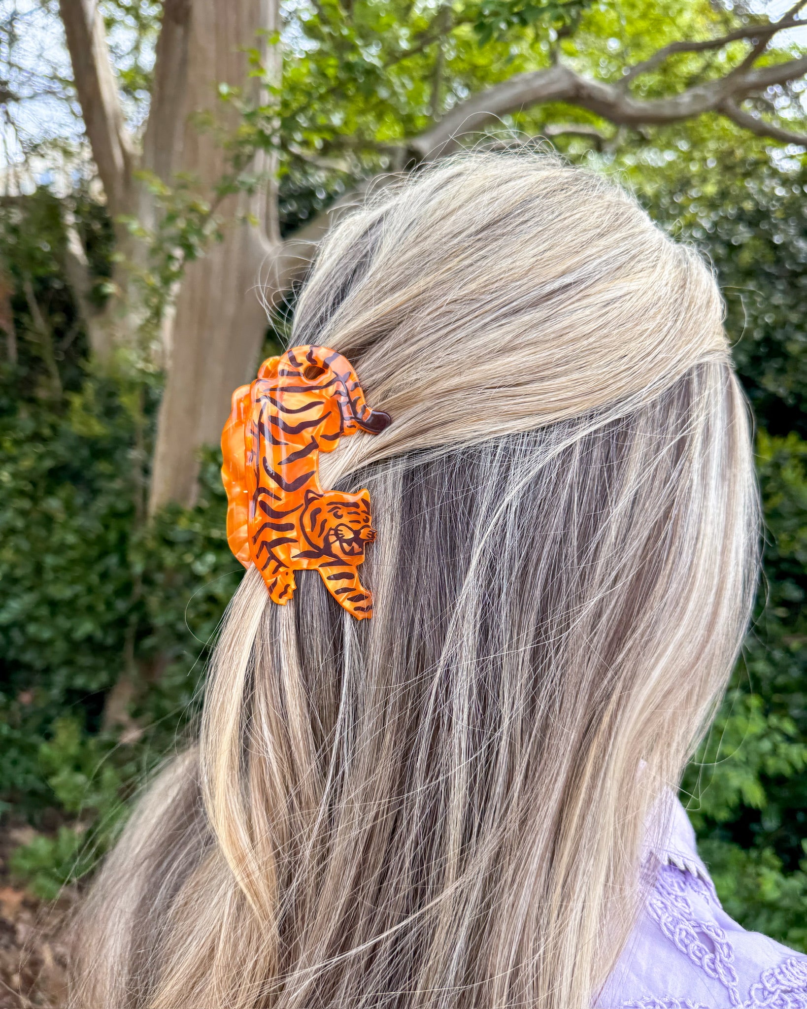 Teleties Flat Round Hair Clip Large - Go Tigers!