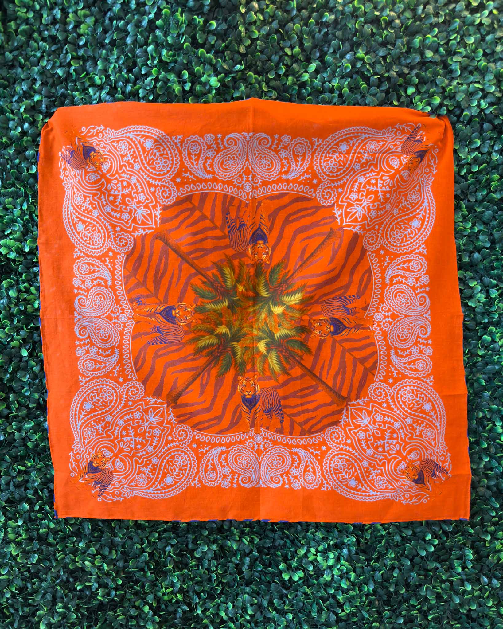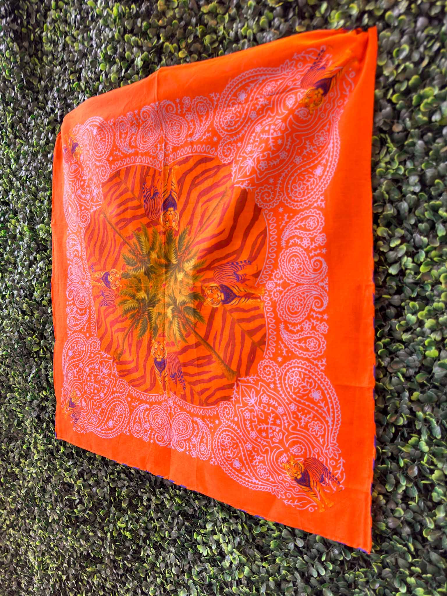Lightweight, breathable, and effortlessly classic, this bandana is a modern essential rooted in Clemson style. Woven from airy cotton gauze, this square scarf is soft to the touch and ideal for year-round wear. The hand-rolled edges are the perfect orange & purple detail!
