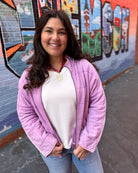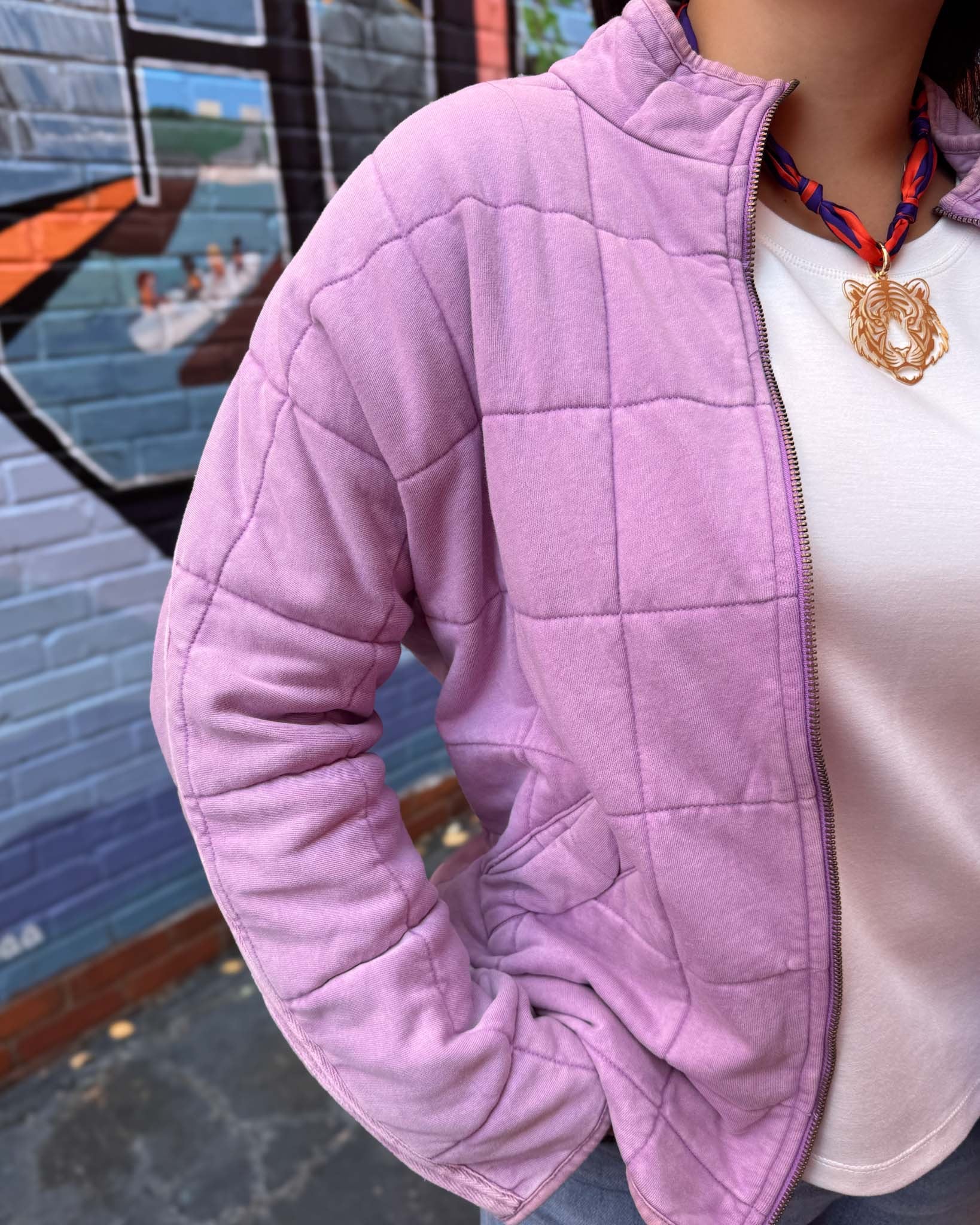 This beautifully tufted jacket is a head turner! The luxurious feel and flattering shape is a must have. The stitched piping adds a fun and chic detail. Take a plain outfit to an elevated, perfect style!