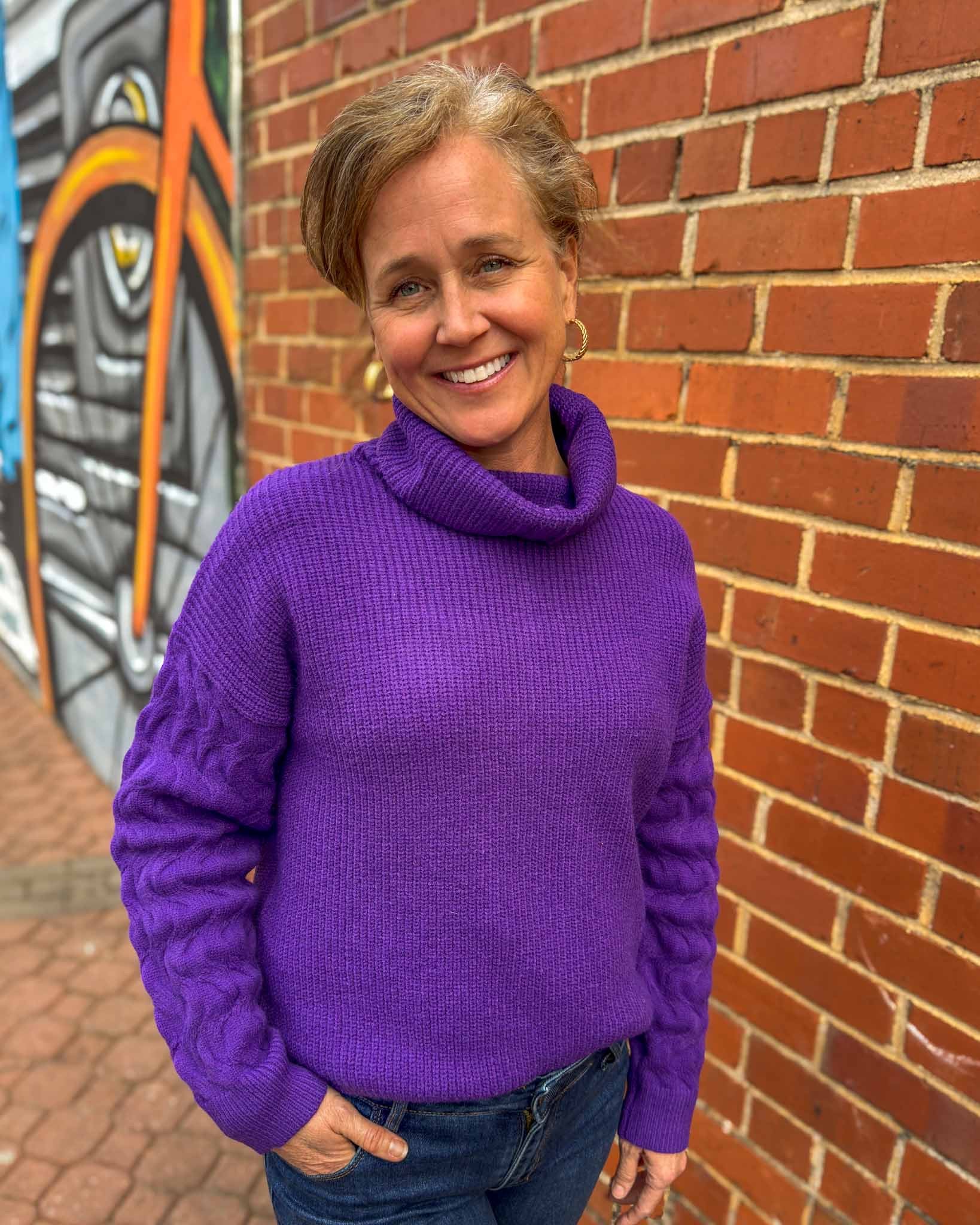 Our Galina sweater is the perfect elevated Clemson basic. From the draped turtle neck to the cable knit detailing on the arms - we are loving this piece. Whether you pair this with dark denim, or our in-store only tiger stripe jeans, this top is a touch down!