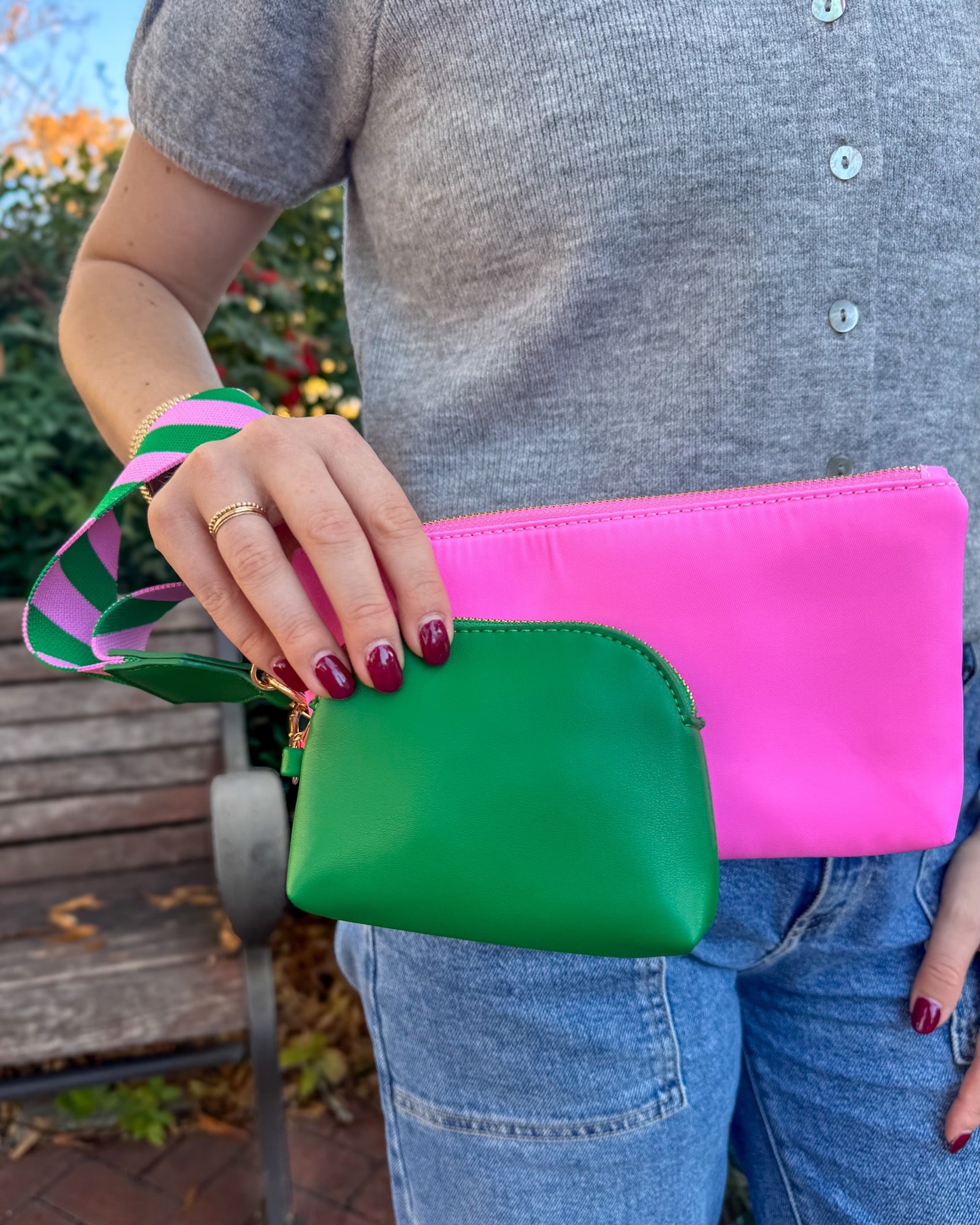 The perfect bag for all the things! Add a pop of color to your fit with this fun wristlet, that has a bonus bag that fits inside or can clip on the outside strap! A great gift for that friend who loves all things Wicked!