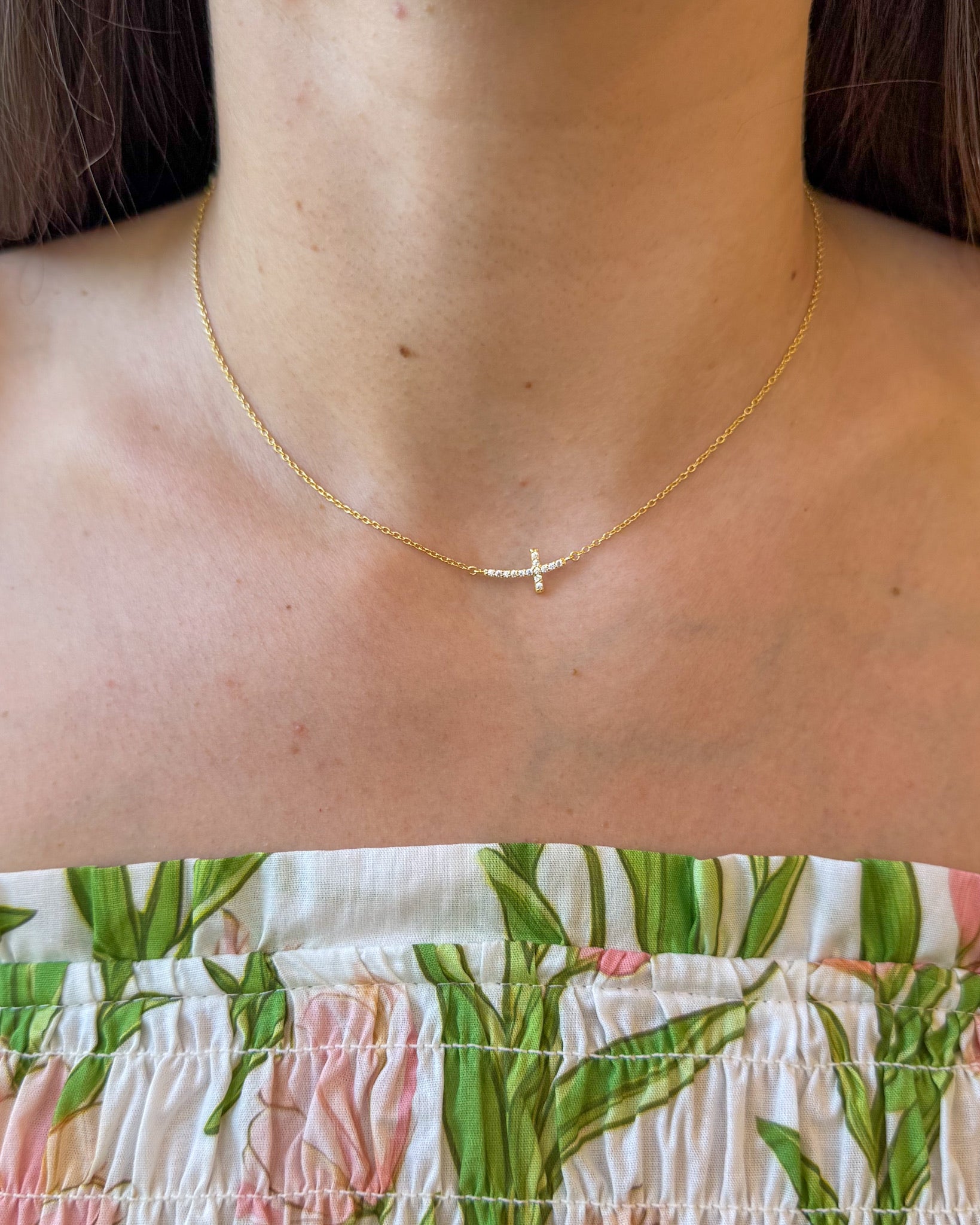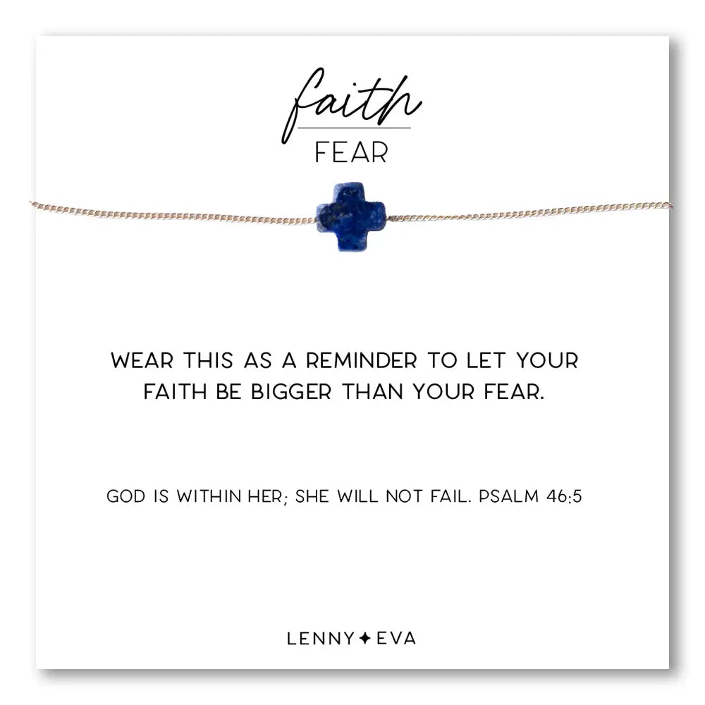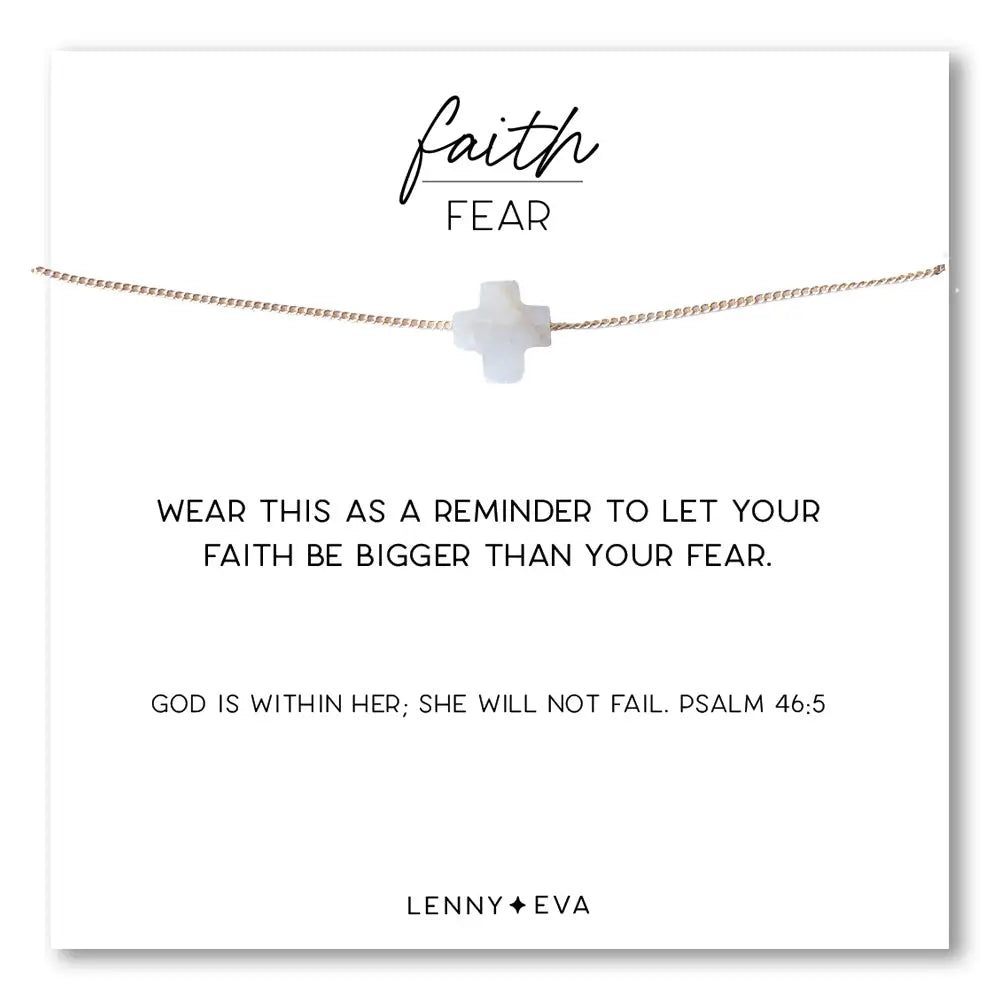 Faith Over Fear Gemstone Cross Necklace