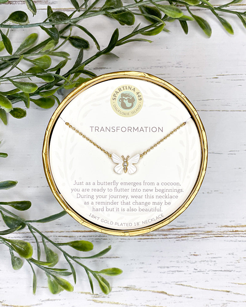 "Just as a butterfly emerges from a cocoon, you are ready to flutter into new beginnings. During your journey, wear this necklace as a reminder that change may be hard but it is also beautiful."