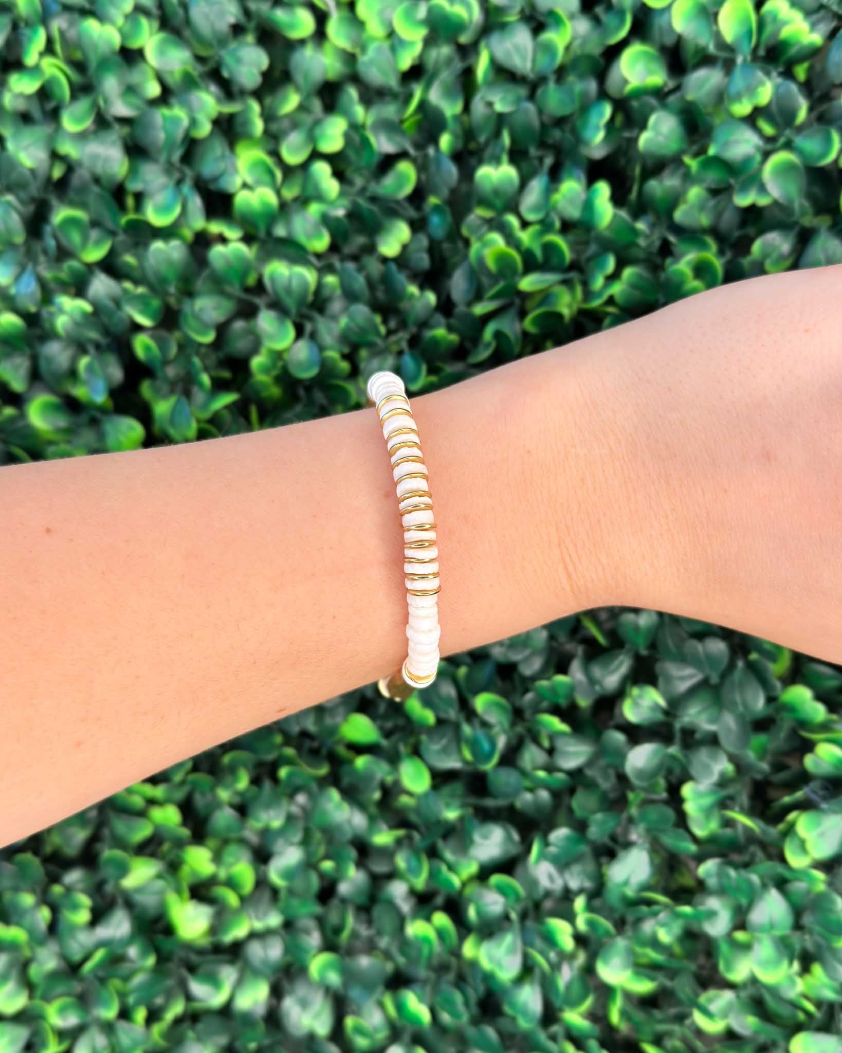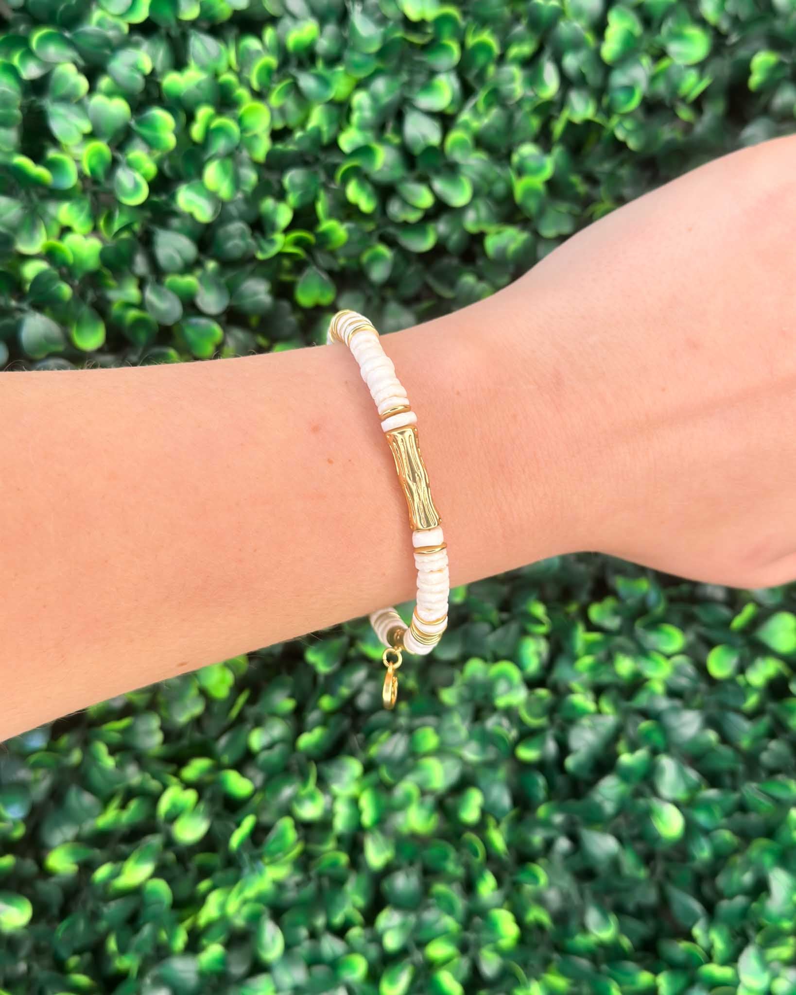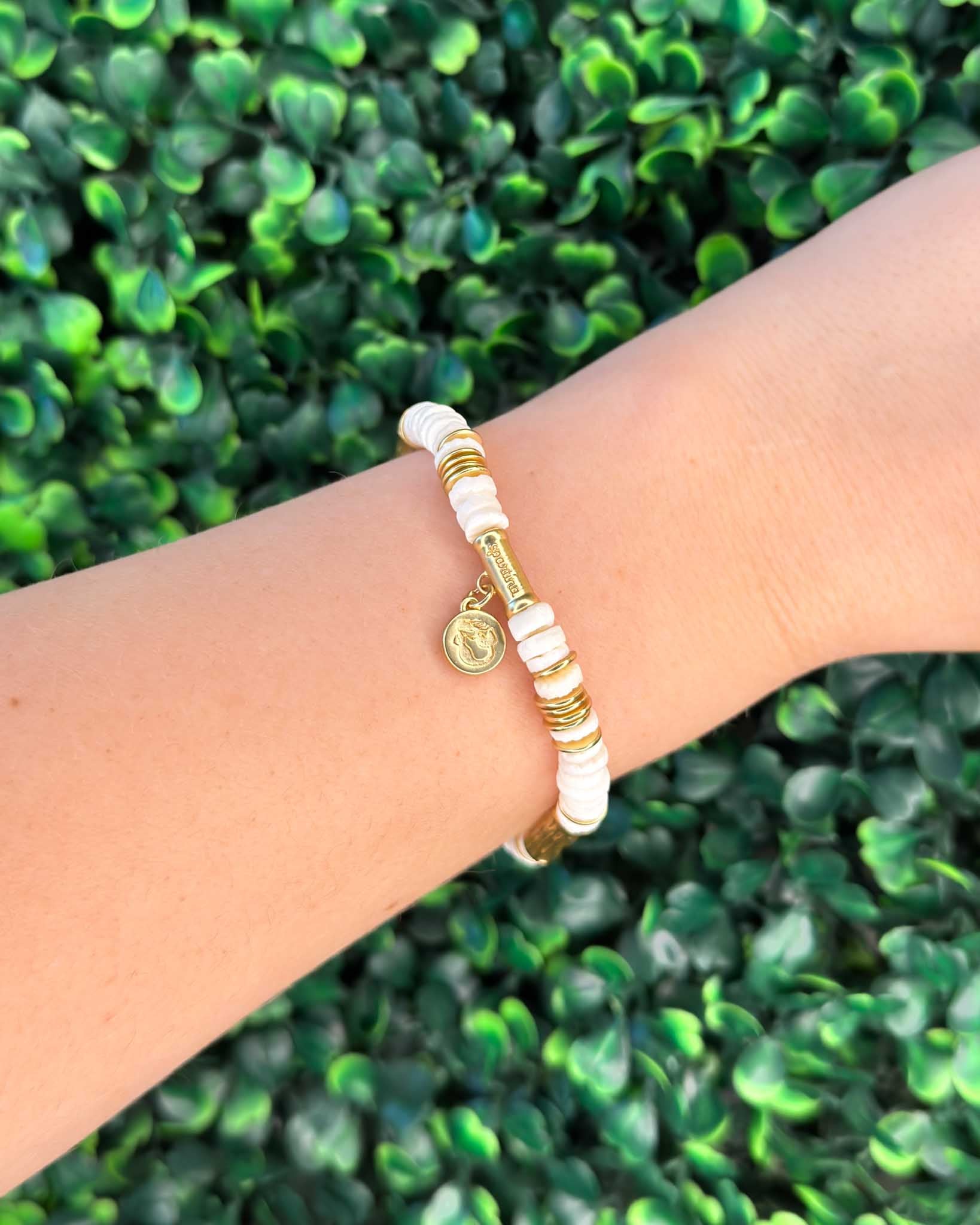 Bring a bright touch to your every day stack with this staple stretch bracelet from Spartina. Great for stacking or mixing and matching this easy-on stretch bracelet features contrasting bamboo & gold beads.