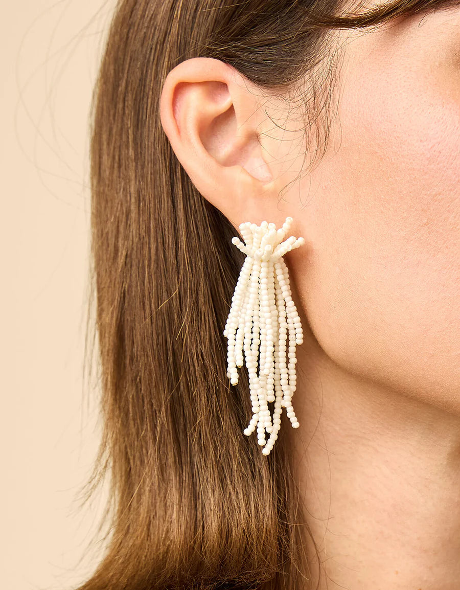 Take your look to the next level with these earrings! Like the graceful, arching branches of a willow tree, these beaded earrings are as dramatic and iconic as the tree itself. Featuring glass beads, these Willow Tassel Earrings are designed to make a statement.