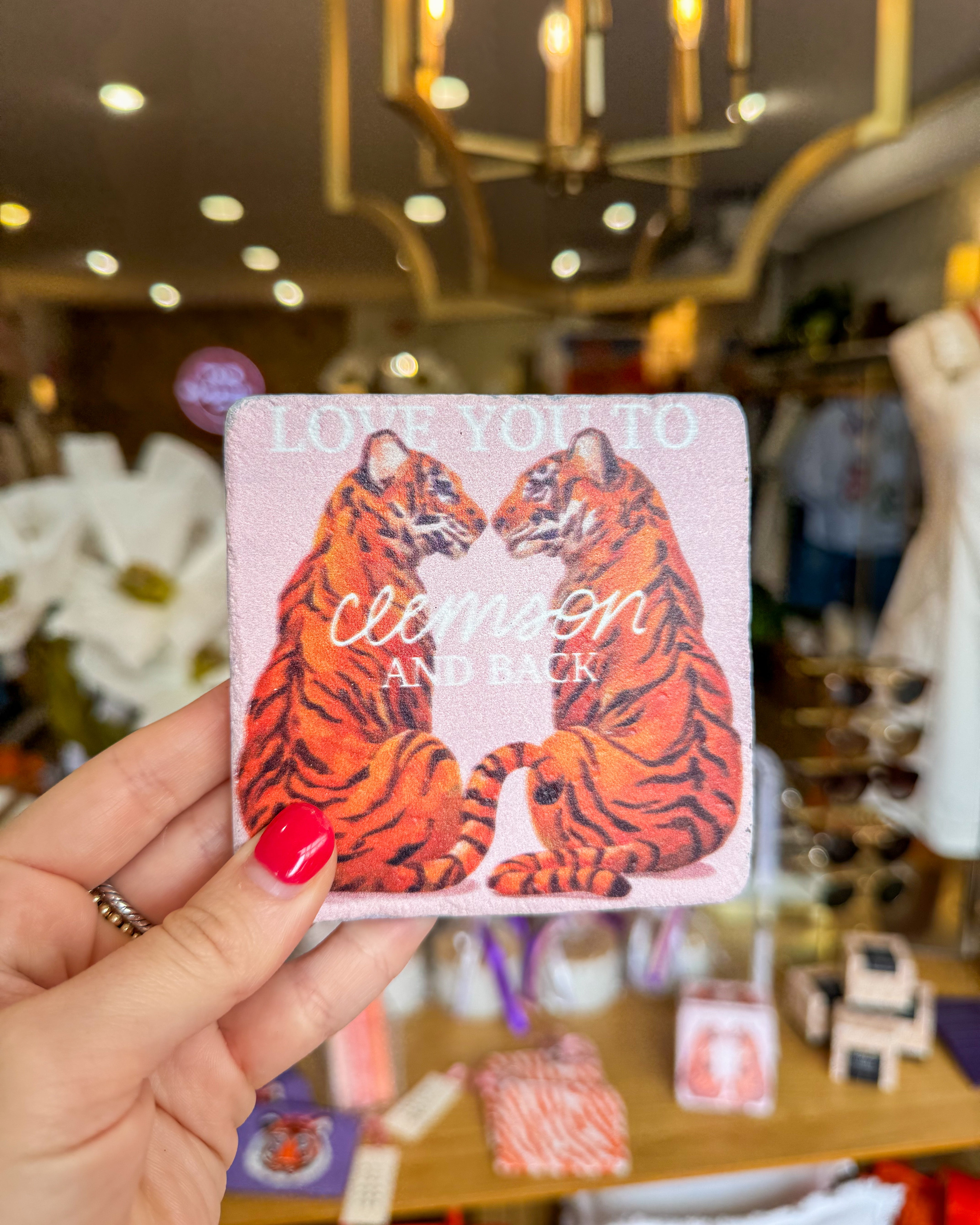 Enjoy your morning coffee with our Love You to Clemson and Back coaster! With it's beautiful marble finish and sleek cork backing, this coaster is the perfect gift for the tiger in your life!