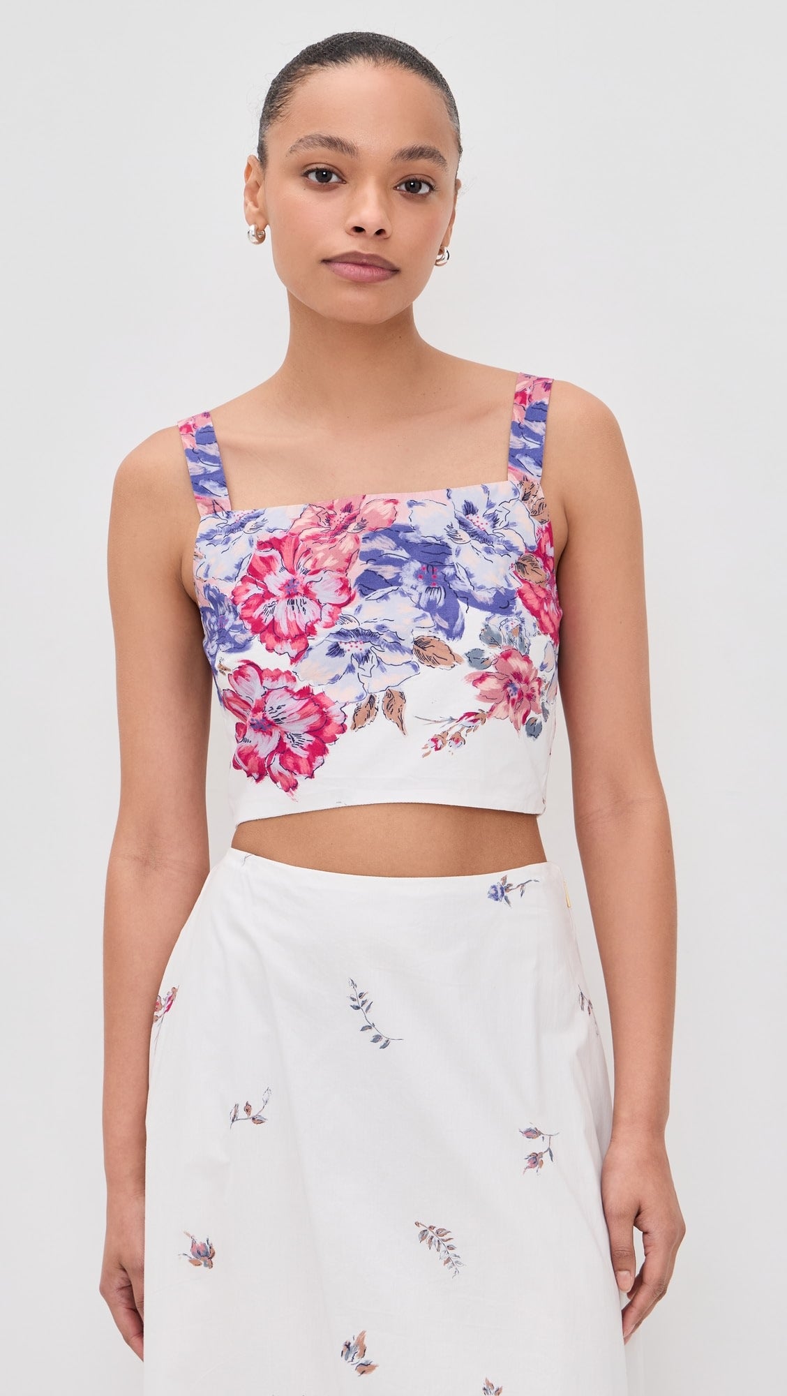 The Jenni Top brings a touch of romantic charm with its placed floral print and flattering cropped silhouette. The delicate floral detailing adds the perfect feminie touch. Whether you pair this with white jeans, or the matching Shea Ankle Skirt - It creates an effortlessly chic look.