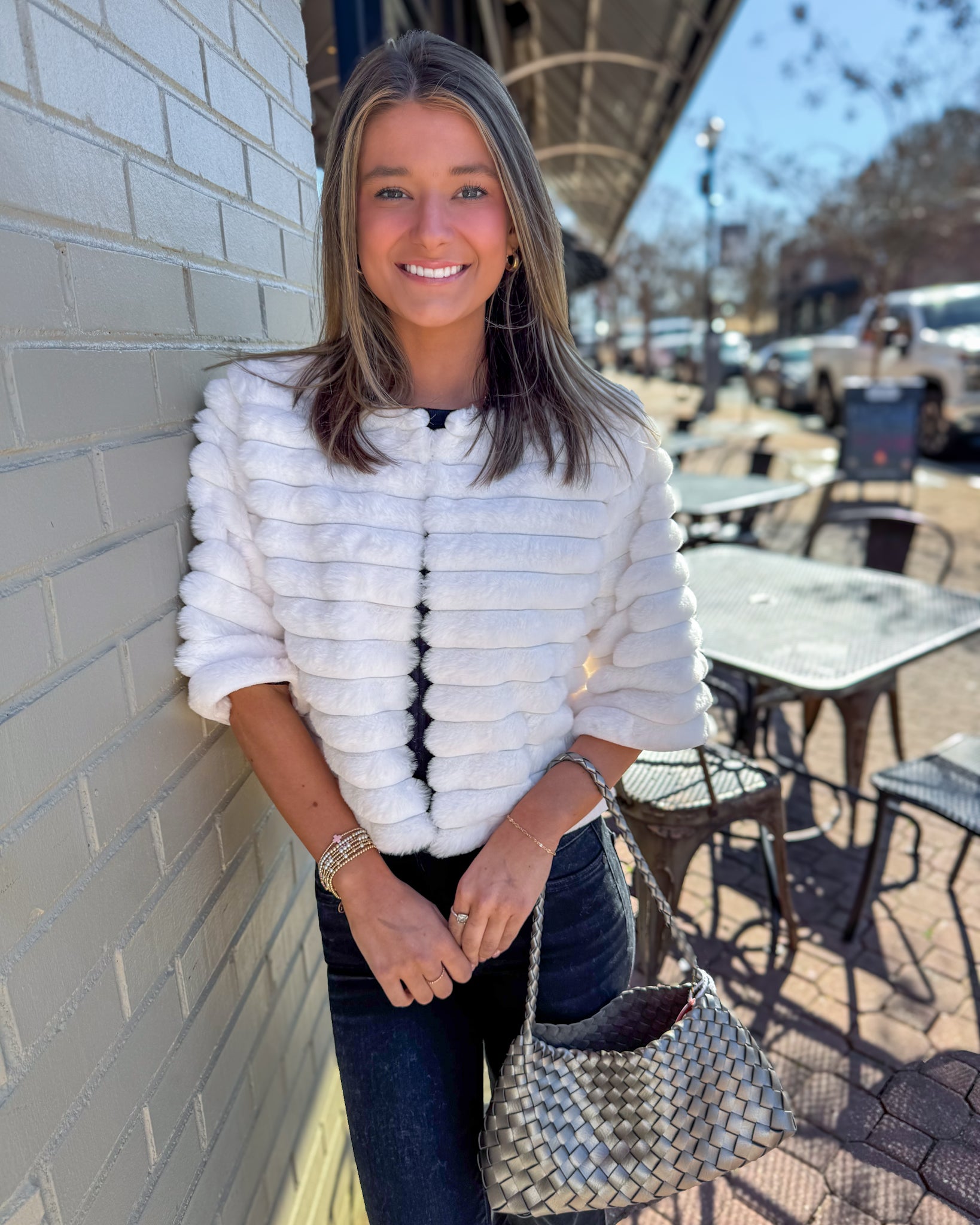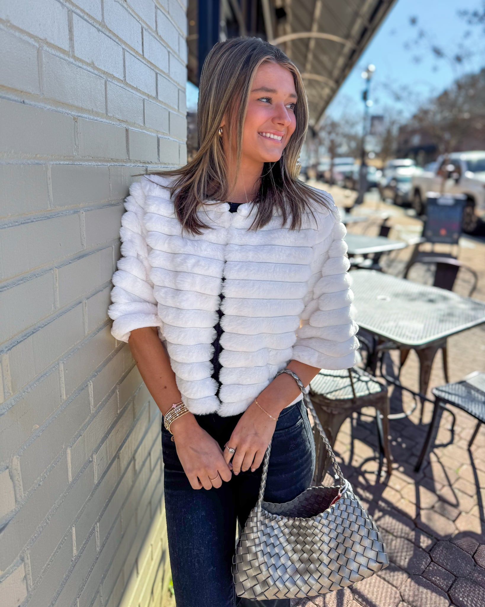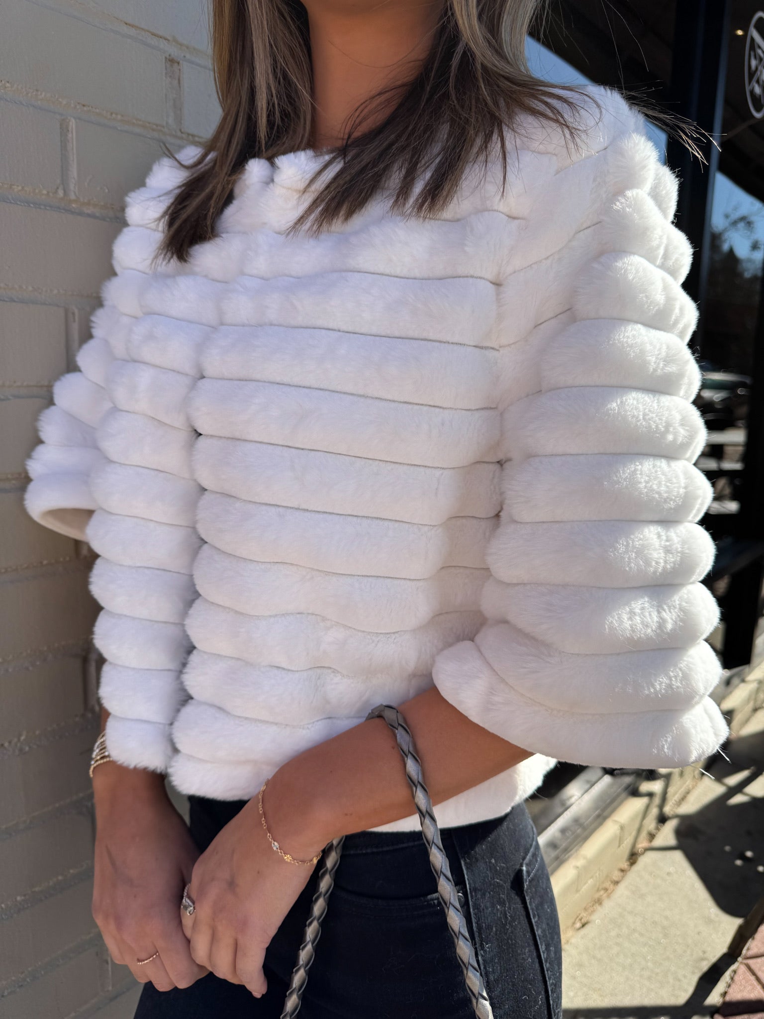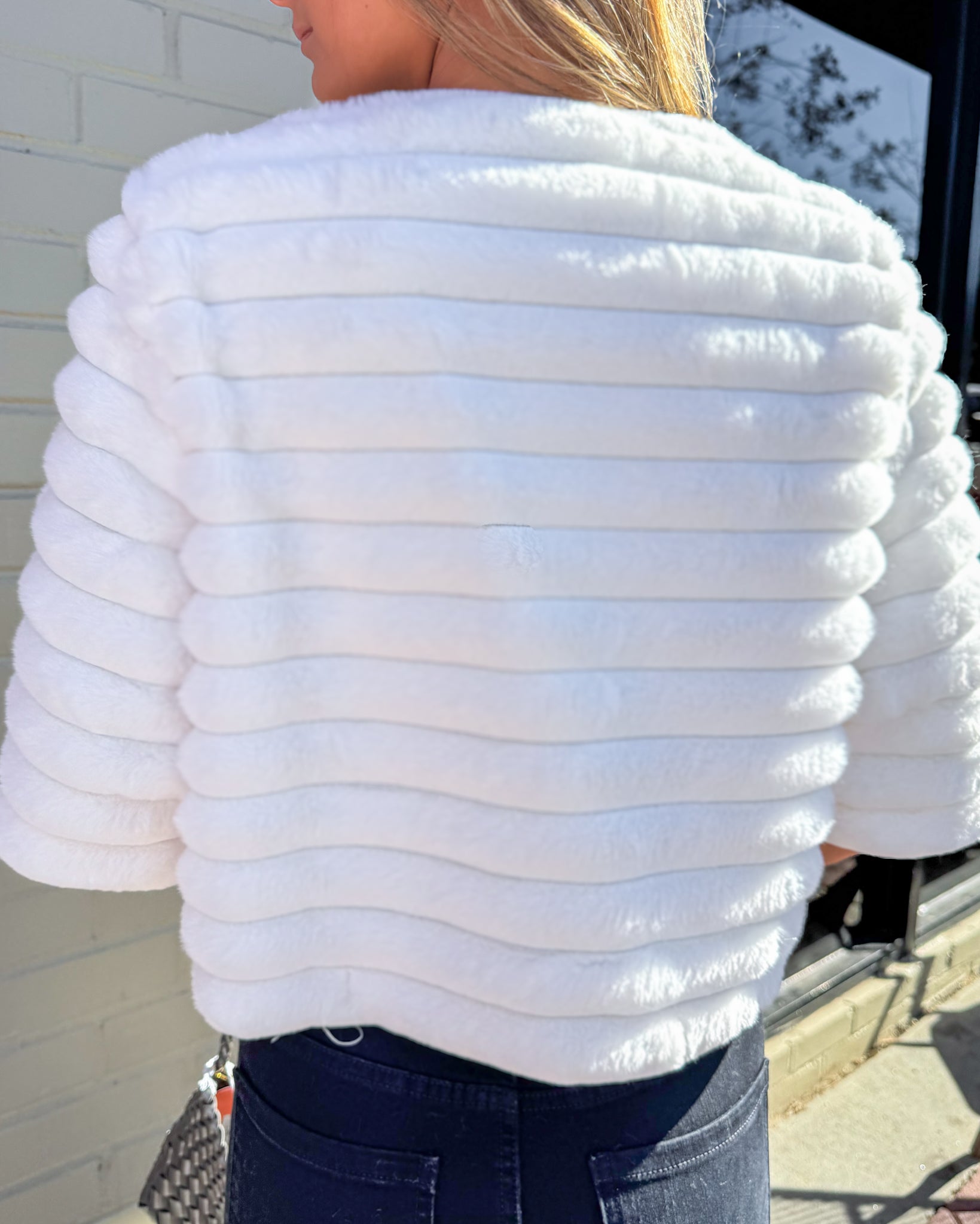 Faux Fur Cropped Jacket-Off White