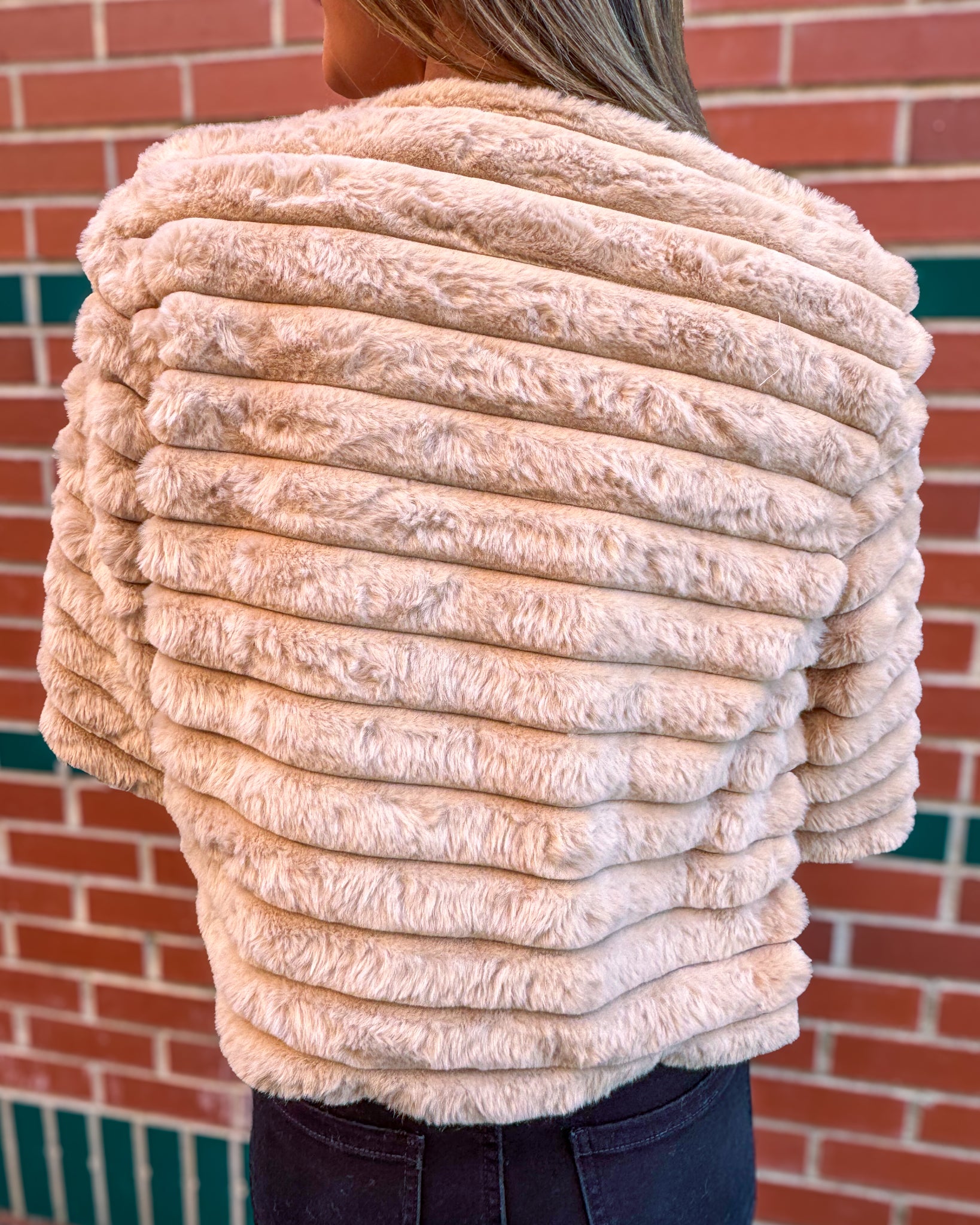 Faux Fur Cropped Jacket-Taupe
