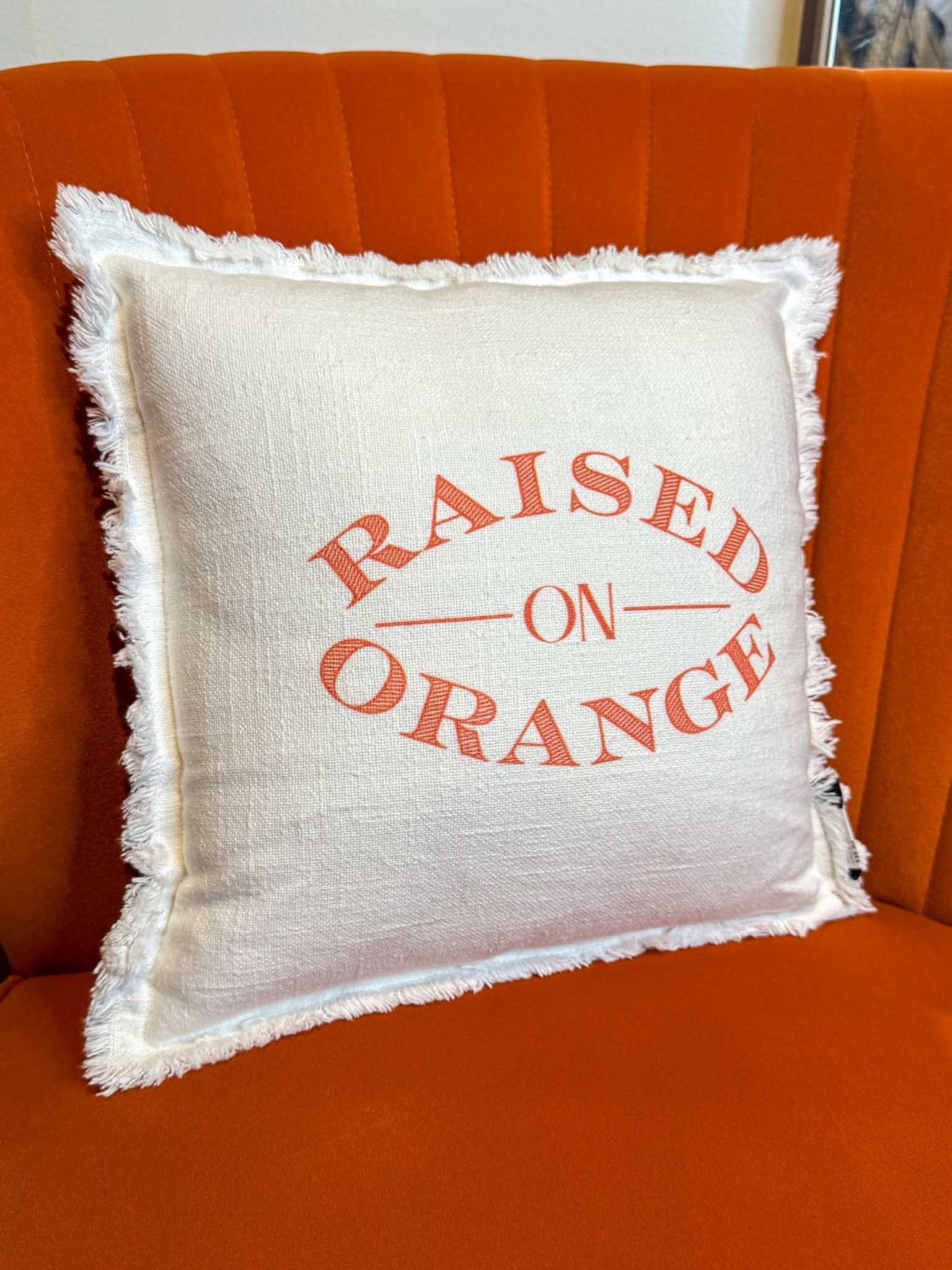 Say hello to your new dorm room essential: the Raised on Orange petite pillow! This bold, bright white pillow is designed in-house by True Orange, this exclusive logo is a one-of-a-kind creation you won’t find anywhere else. Whether you're looking to commemorate your time at Clemson or celebrating a new Tiger this pillow lets everyone know where your roots run deep—right here in Tiger Town.