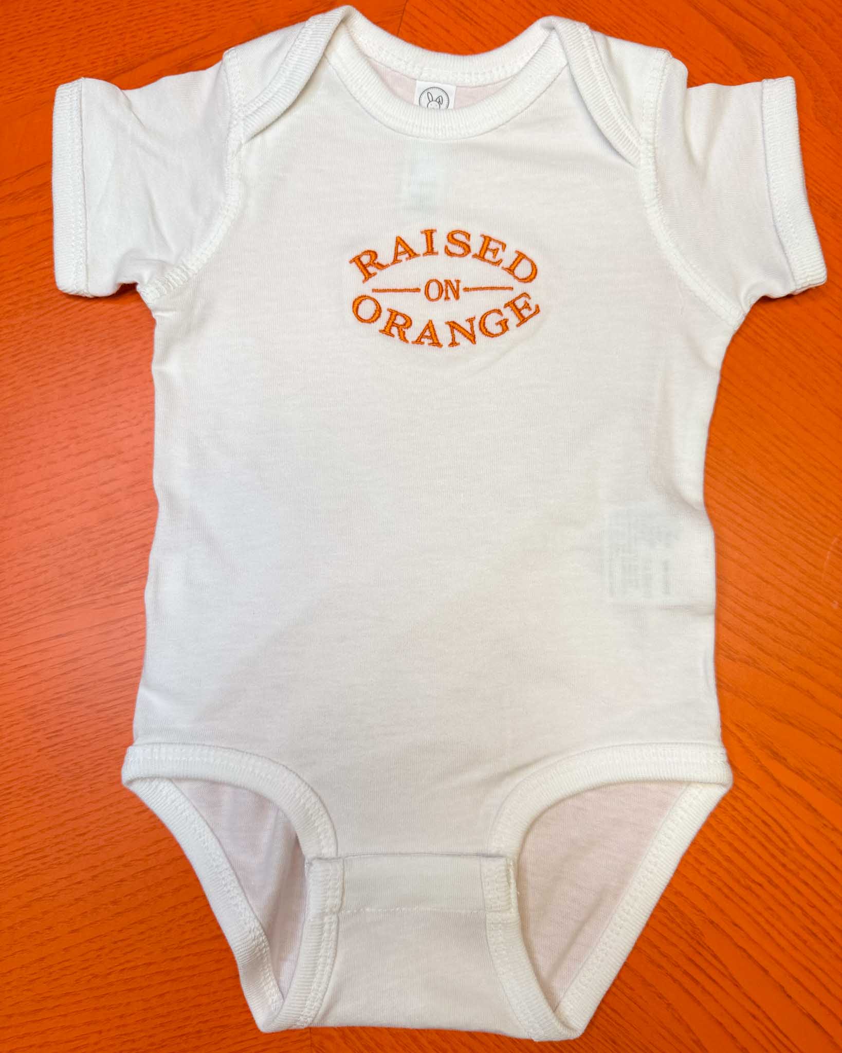 Created exclusively for True Orange Boutique, this Raised on Orange onesie is the perfect gift for the tiniest members of your Raised on Orange family! Snag one for your little tiger today, it's cuteness and Clemson pride all in one!