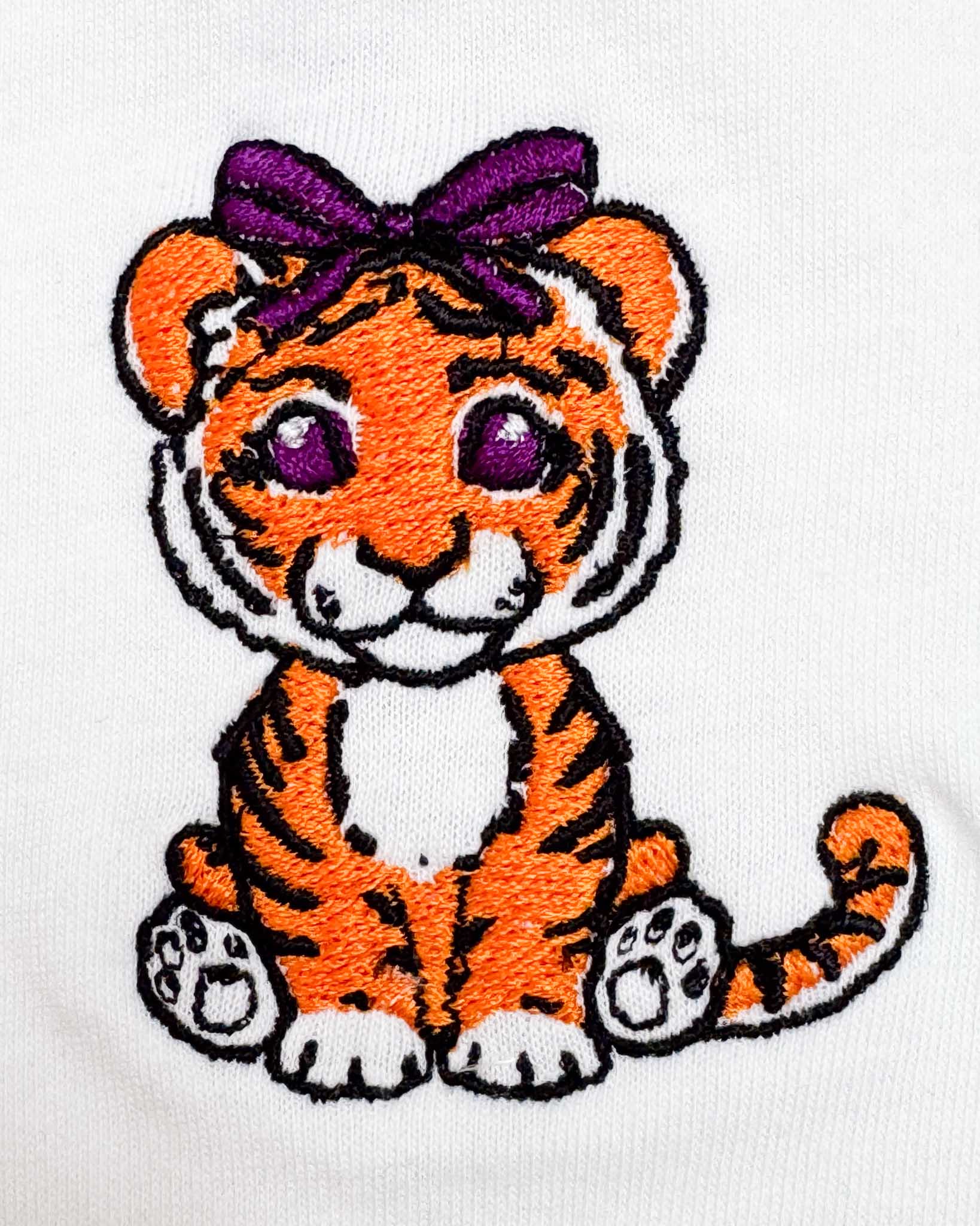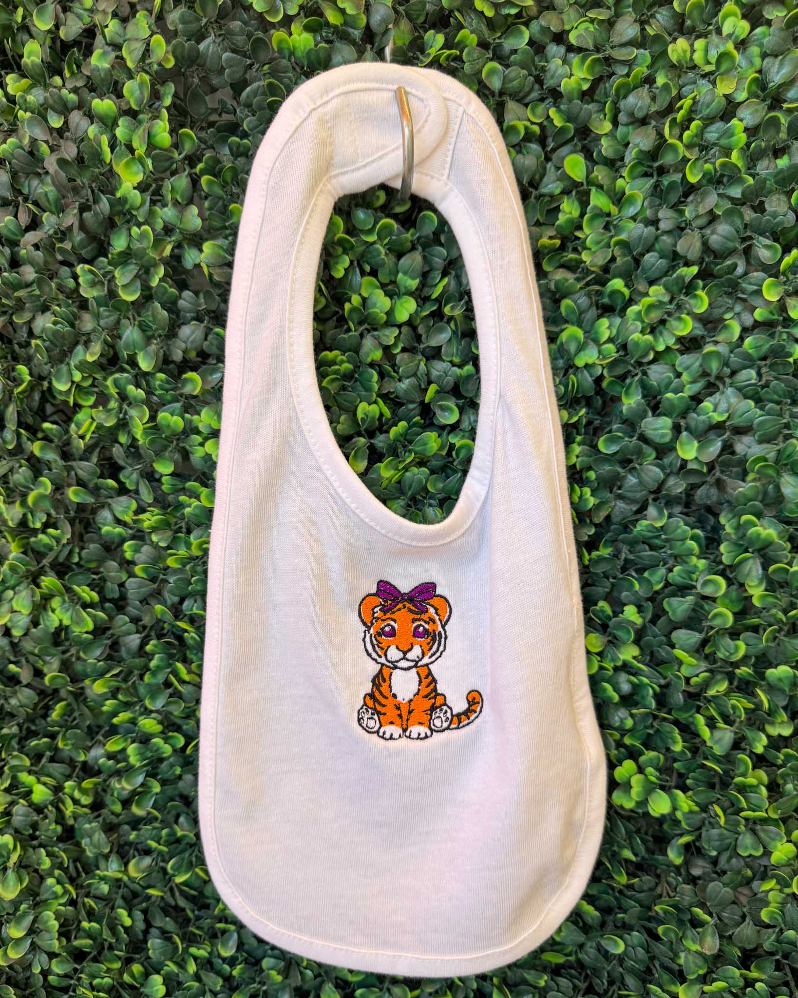 Created exclusively for True Orange Boutique, this tiger cub bib is the perfect gift for the tiniest members of your Raised on Orange family! Snag one for your little tiger today, it's cuteness and Clemson pride all in one!