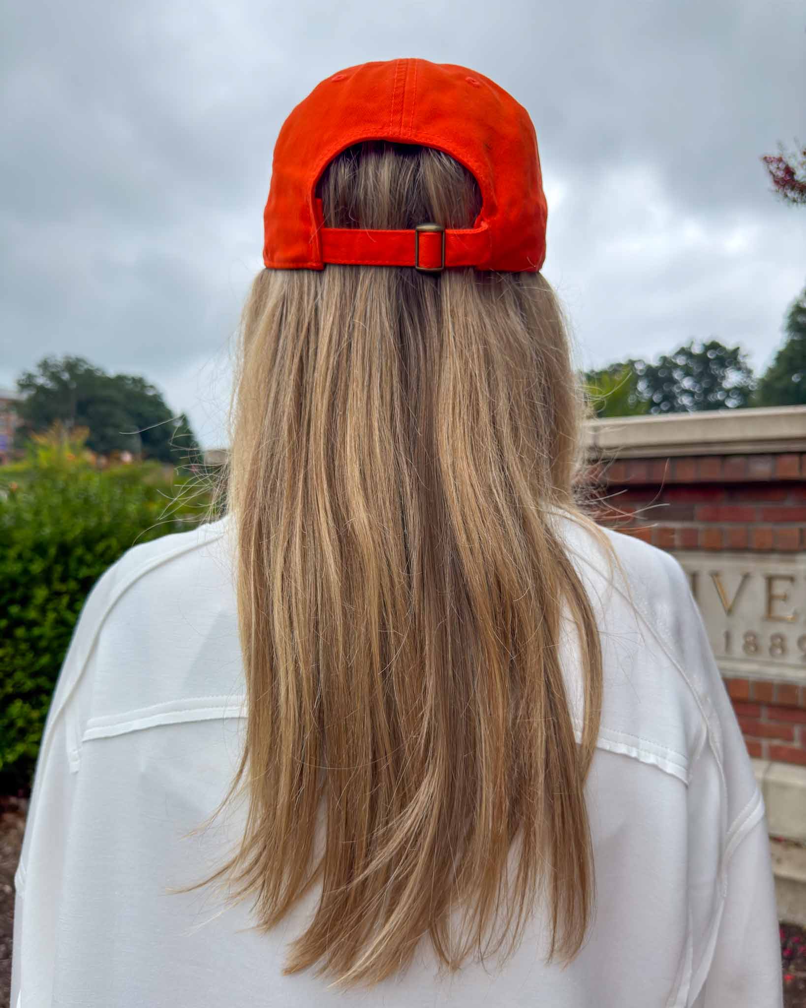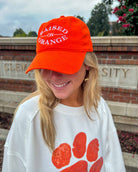 Fresh, clean, and full of Tiger pride—our Raised on Orange orange hat is the ultimate staple for effortless Game Day style. With bright white embroidery and a relaxed, adjustable fit, this hat adds the perfect pop of spirit to any outfit. Designed exclusively by True Orange, this logo is a boutique original you won’t find anywhere else. Whether you’re heading to the tailgate or just out and about, this one’s made for those proudly raised in the land of orange.