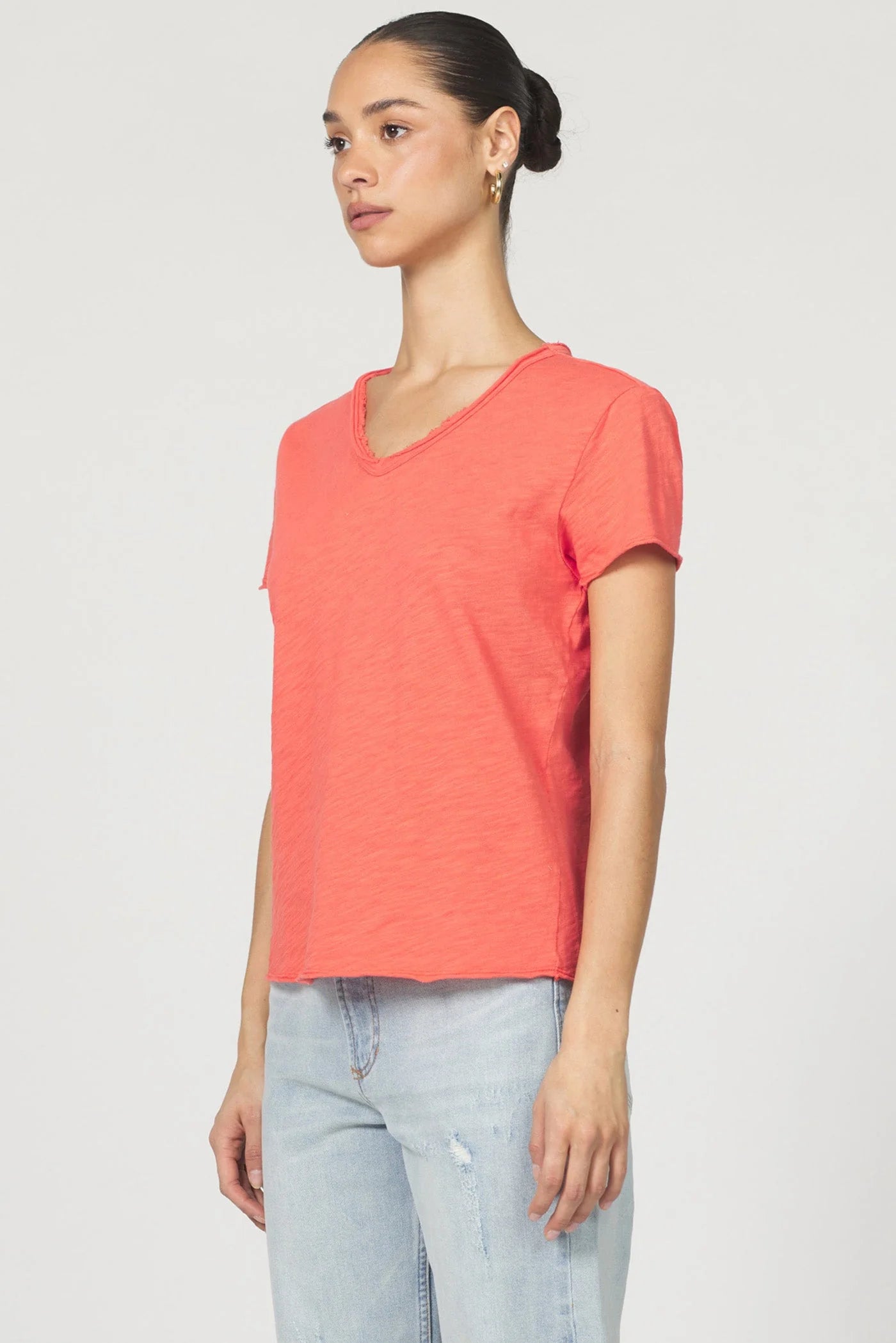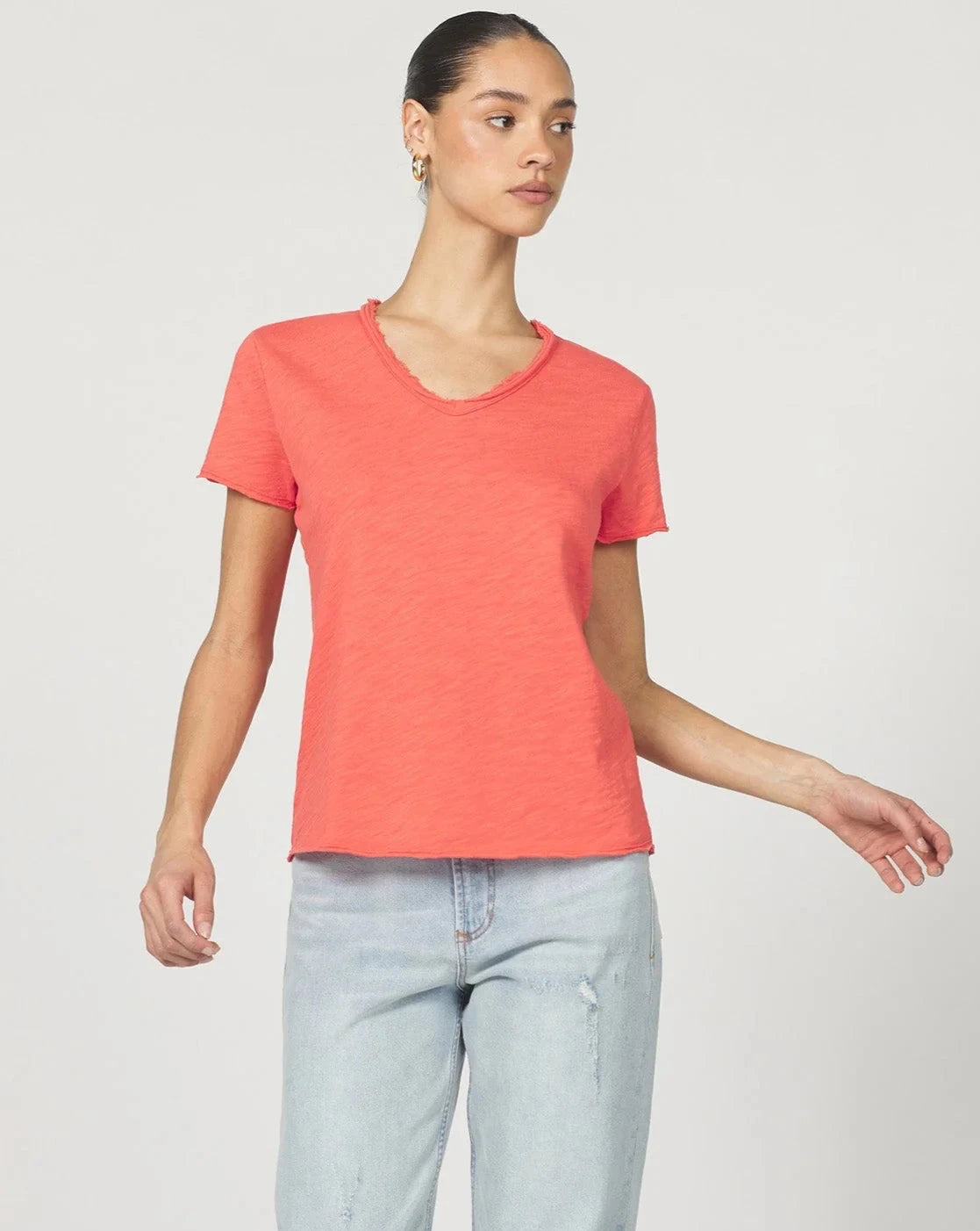 The perfect blend of style and comfort, featuring a relaxed fit and V-neck design crafted from 100% cotton for ultimate breathability and ease. This short-sleeve essential embodies women's fashion with its versatile charm, perfect for any casual or polished occasion.