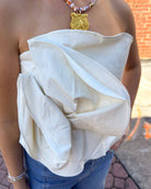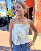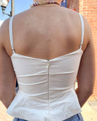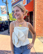 Looking for the perfect ivory top to go with all your Orange and Purple this season? This gorgeous top is not only the perfect elevated basic, but it is very versatile. There are multiple looks that you can create - wear it with straps on or off! Aside from creating the perfect look for Death Valley, this top can be dressed up or down depending on the occasion. We imagine this pairing beautifully with dark wash denim and gold jewelry.