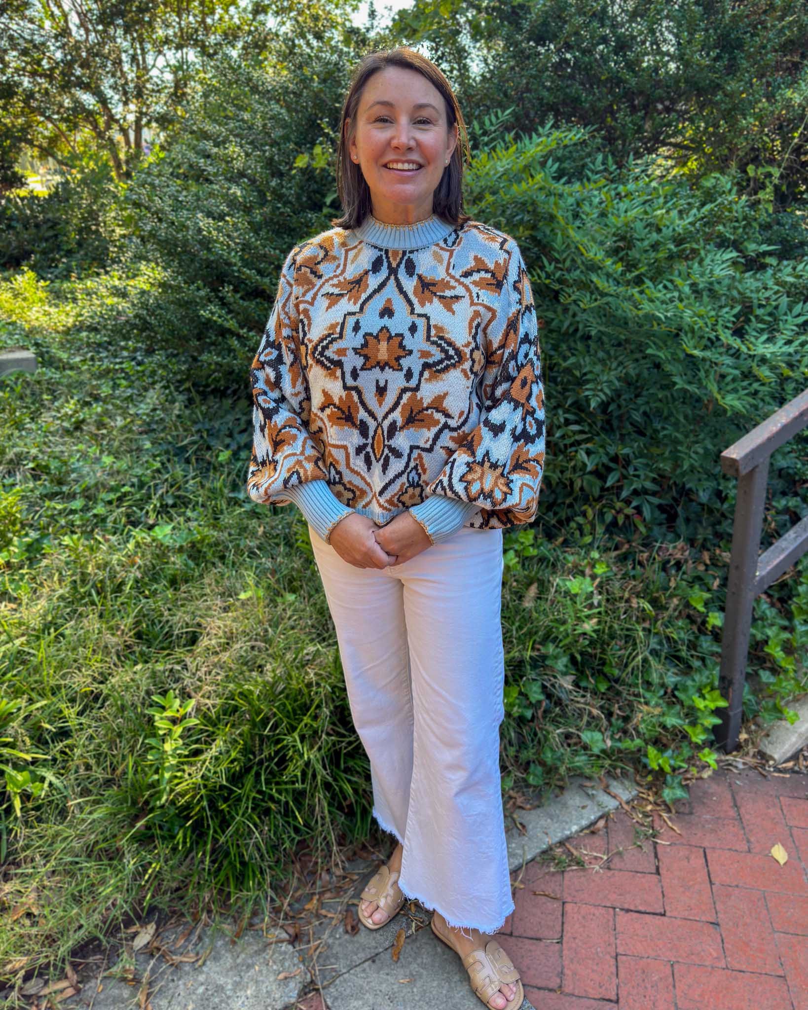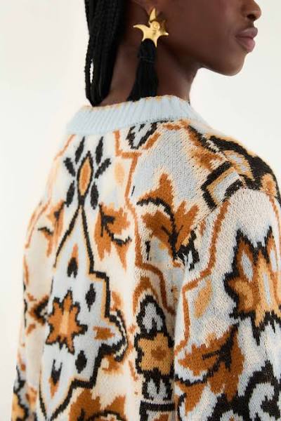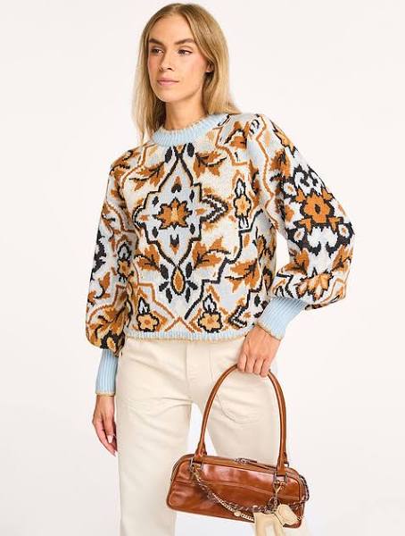 Farm Rio Blue Winter Tapestry Sweater
