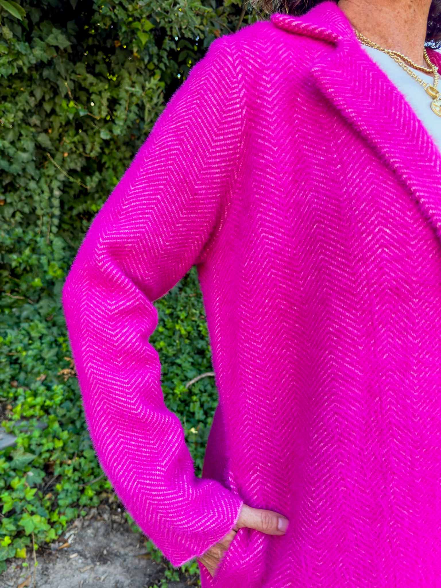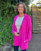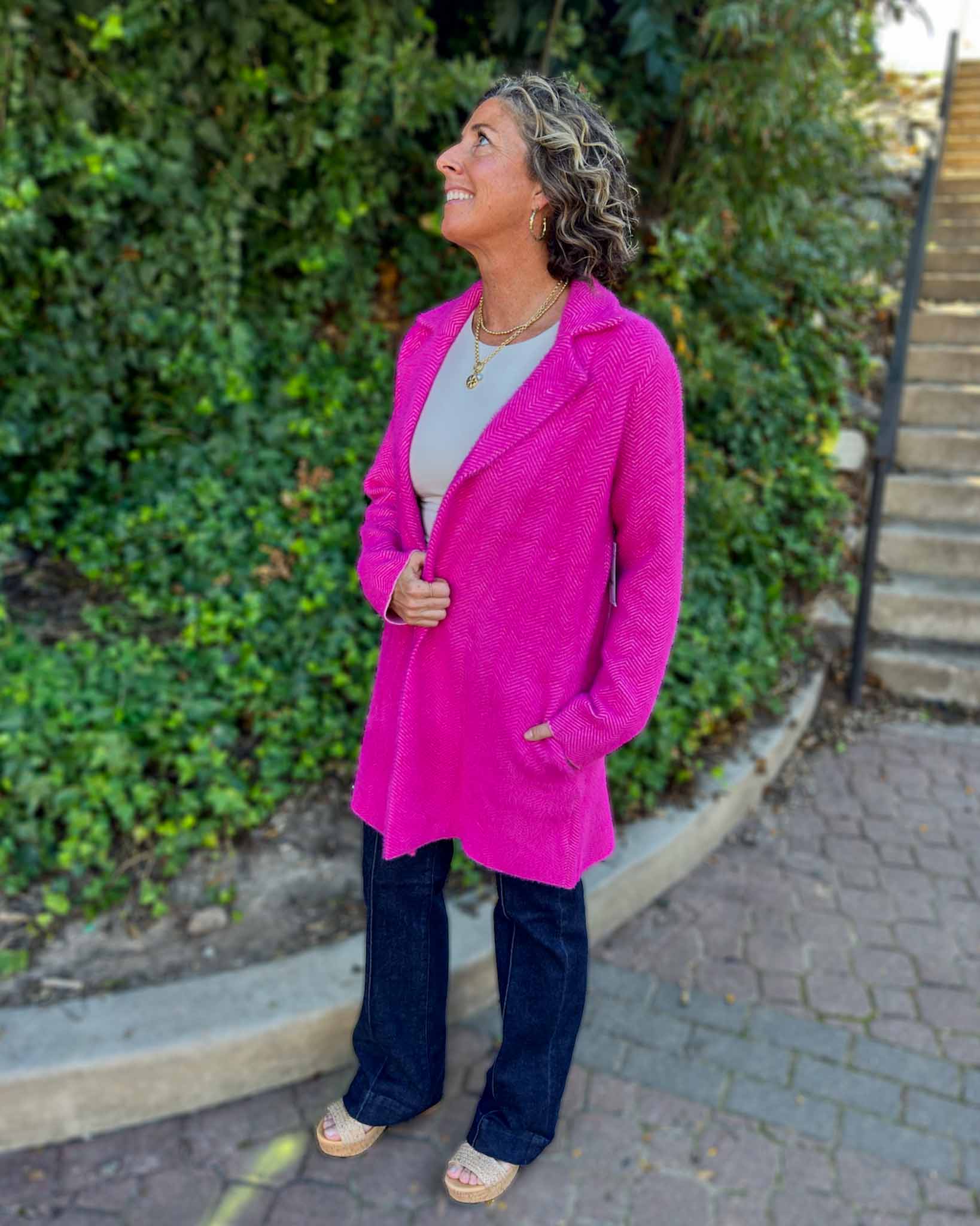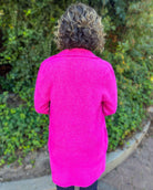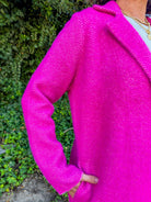Elevate your look with this classic long sleeve open front sweater coat in a vibrant raspberry pink. It maintains a cozy feel, while maintaining a silhouette featuring a chic collar. This piece pairs perfectly with both casual and dressy outfits. The open front design adds effortless sophistication, making it an ideal layering piece for cooler days and evenings. Perfect for adding a pop of color while maintaining comfort and style.