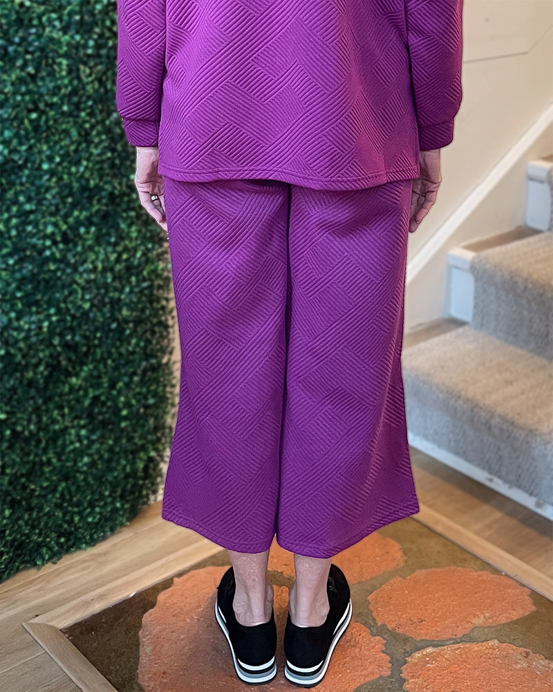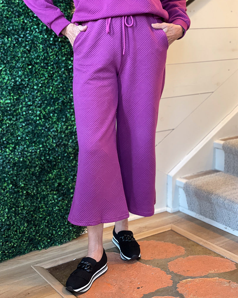 Your "game day from home" wardrobe will be complete with these adorable Textured Cropped Pants. So cozy and great for giving that cute athleisure look, you'll want to live in these.
