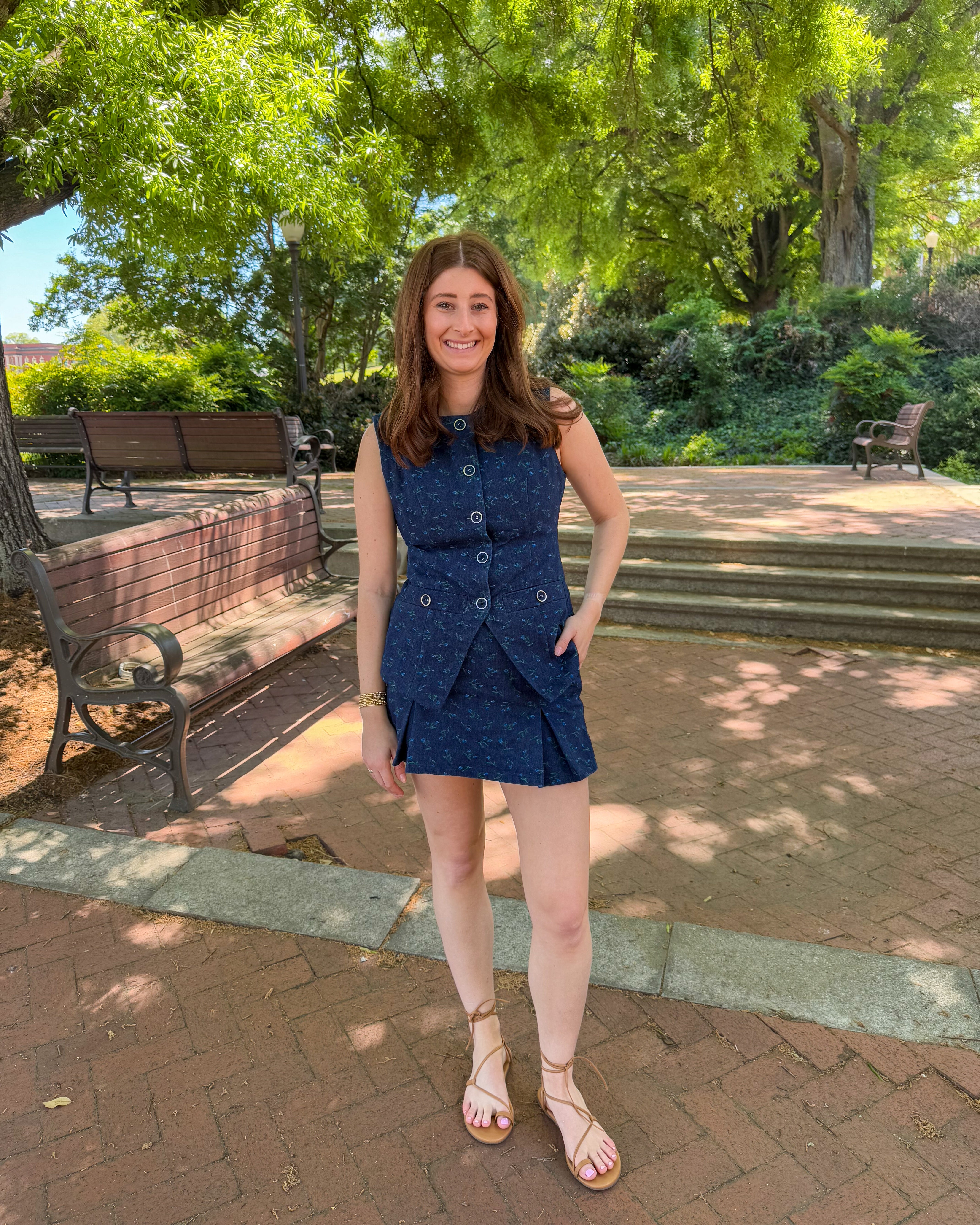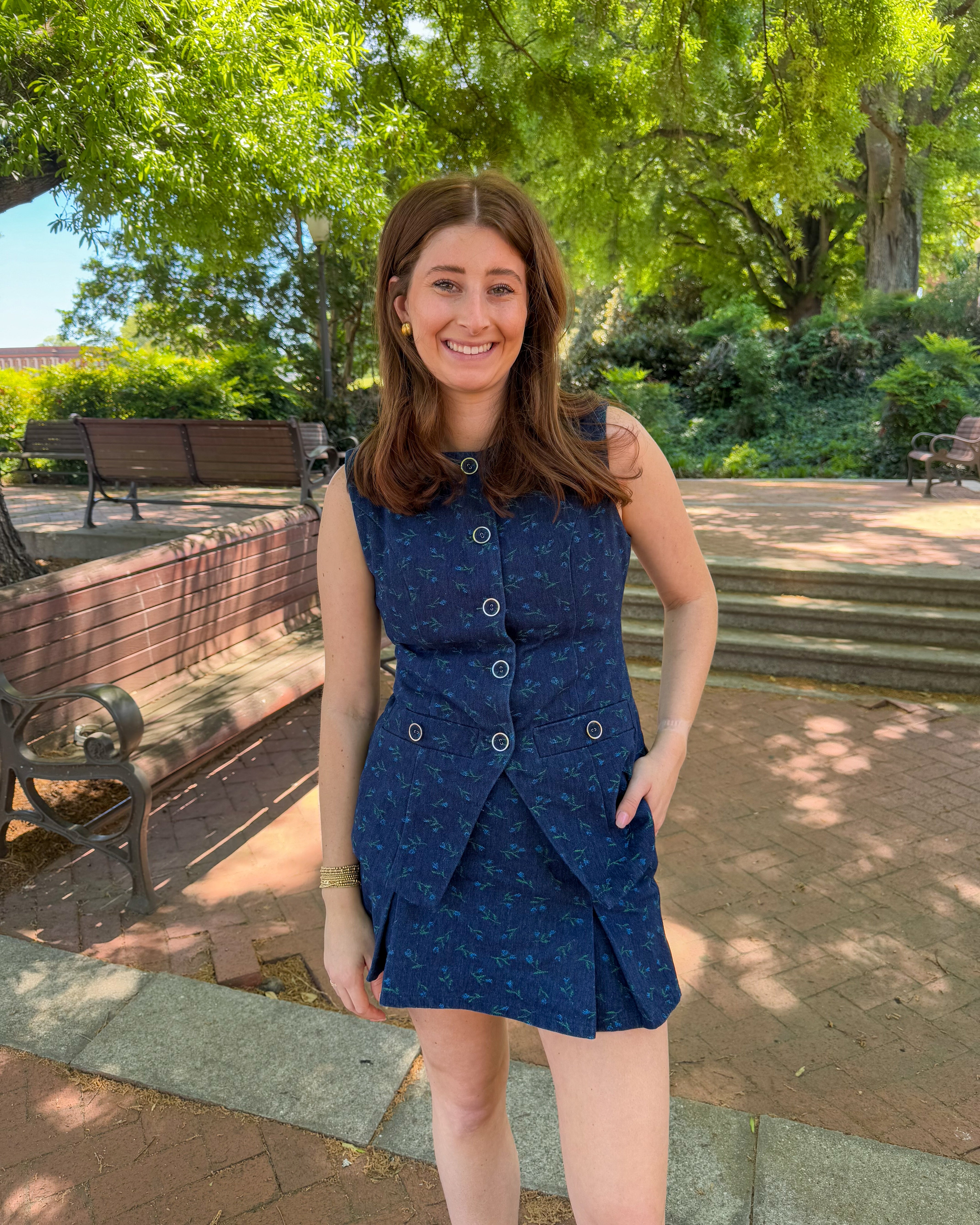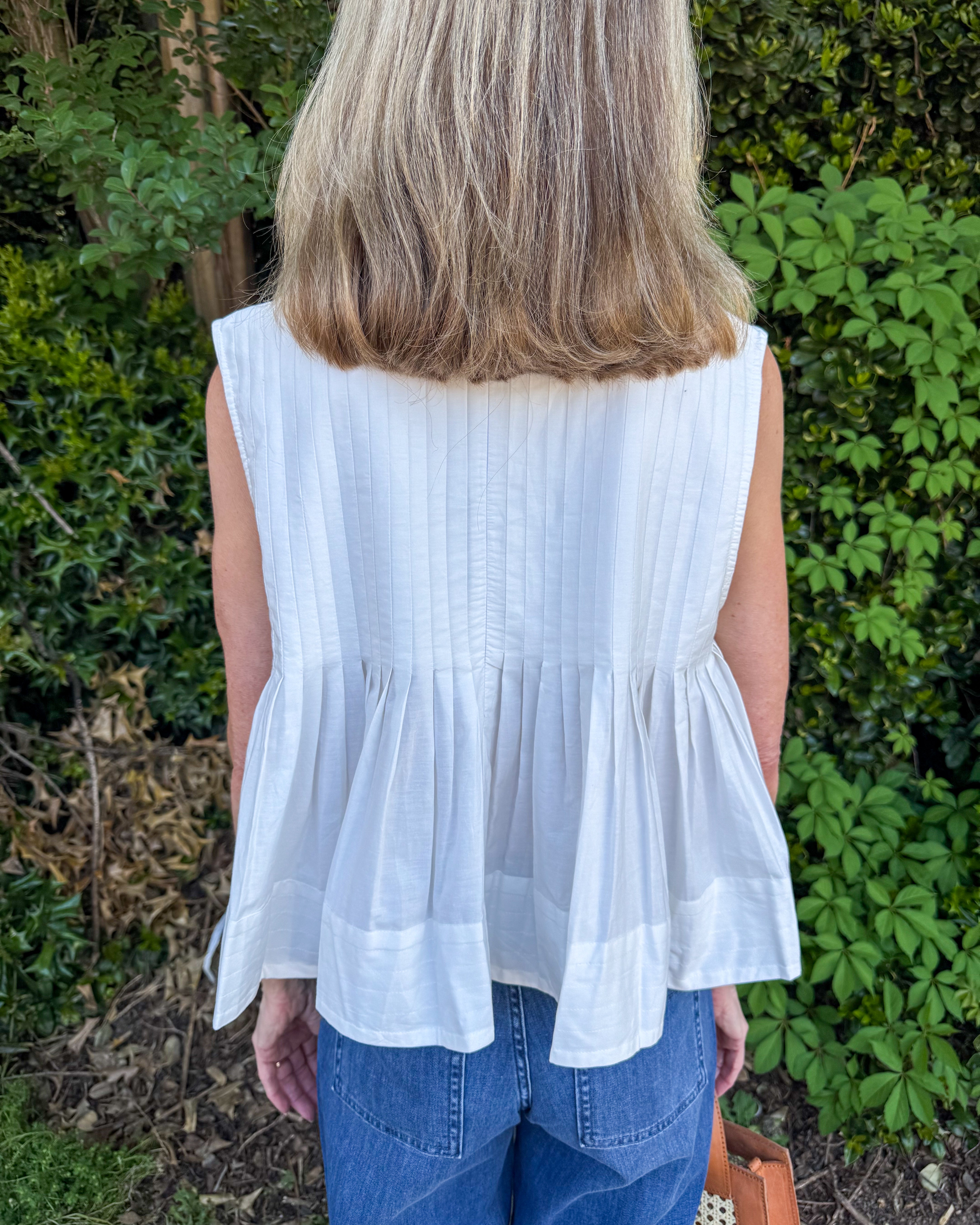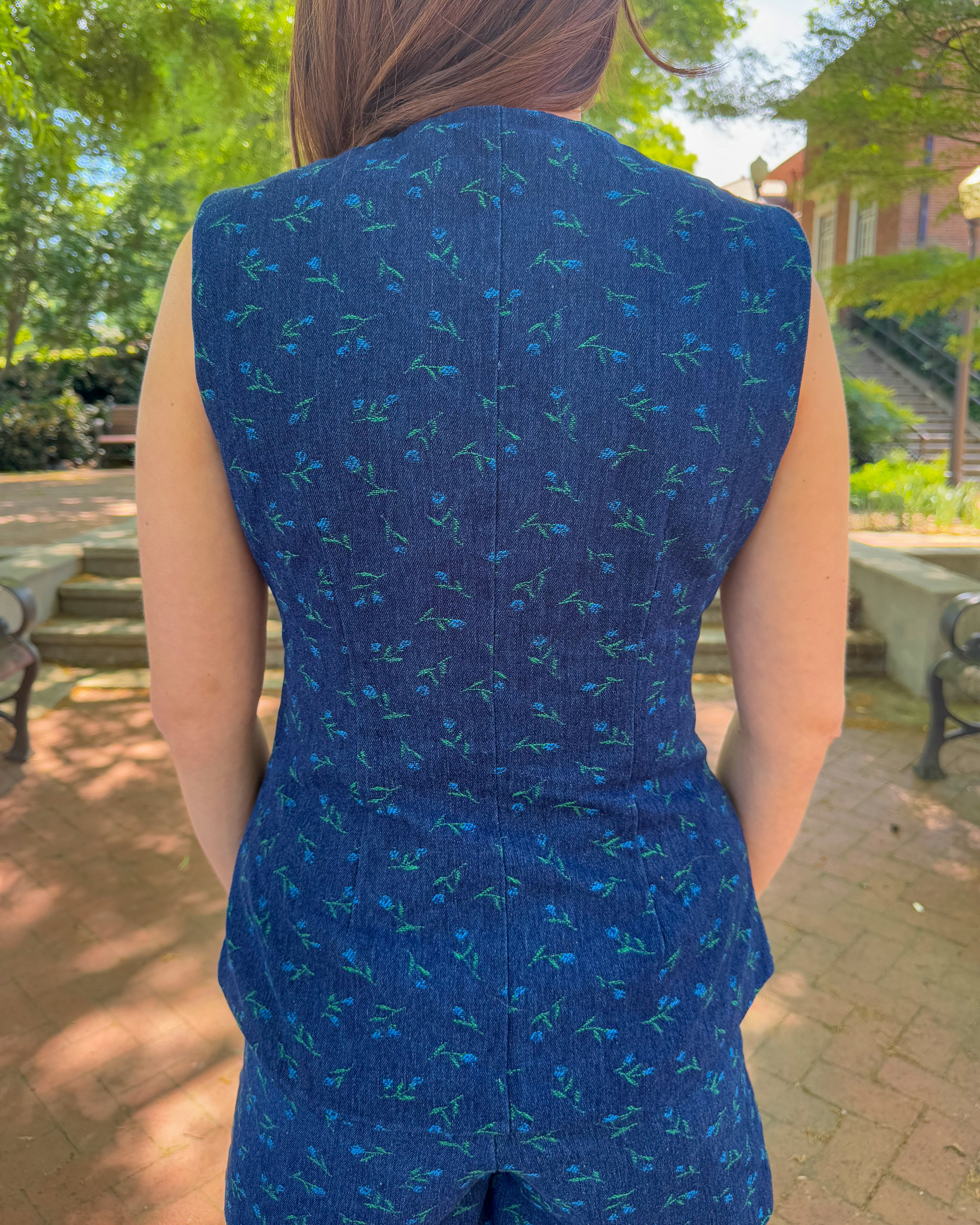 Darby Embroidered Reversible Linen Vest - Mineral Blue
