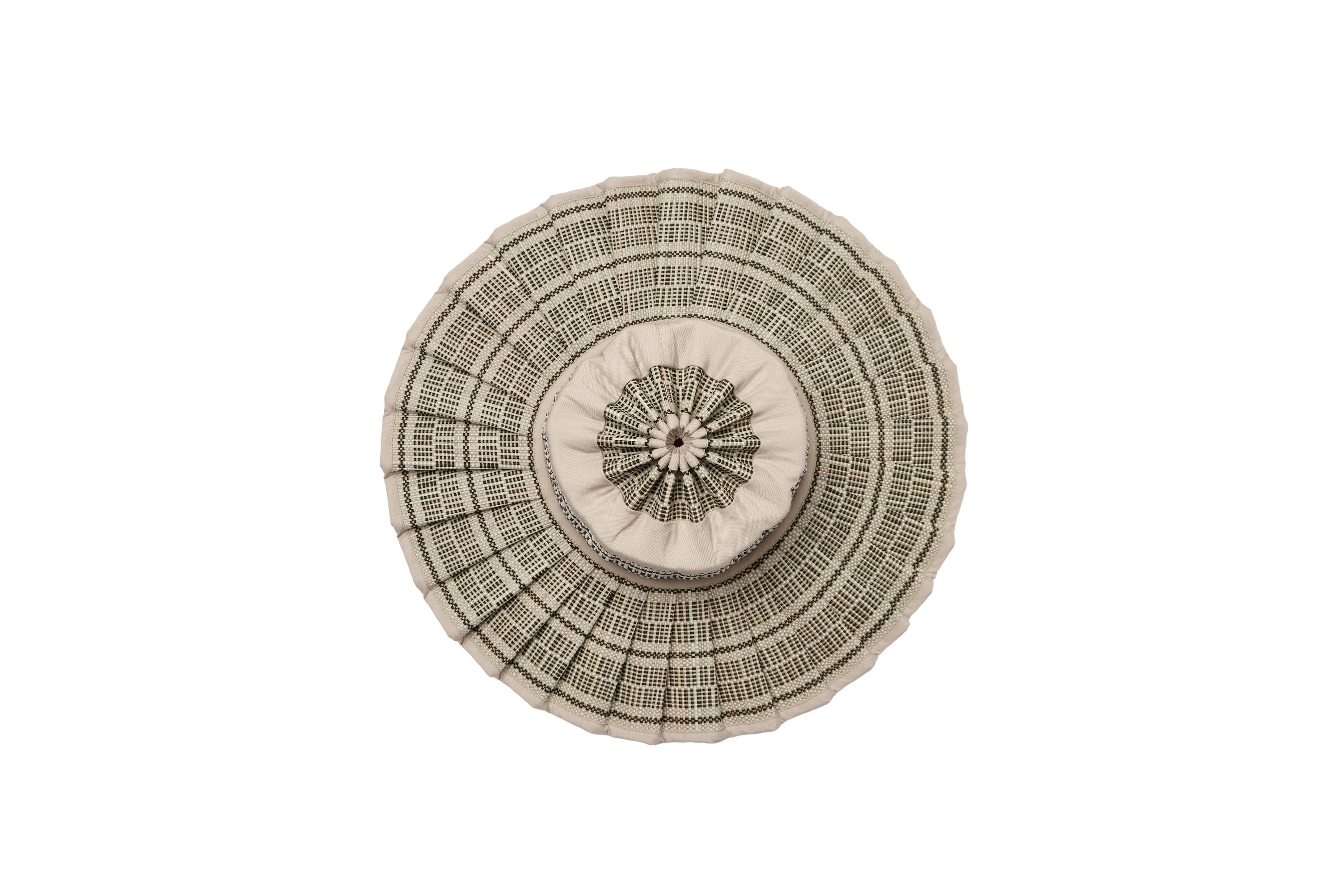 Hokkaido features bands of cream and black thread work woven in varying stripes through the natural fibre base, with sandstone neutral cotton fabric trimming.