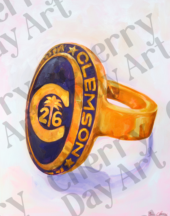Commemorate one of your proudest accomplishments with this 2026 Clemson ring print. It also makes a great gift for your newest ring recipient or graduate!