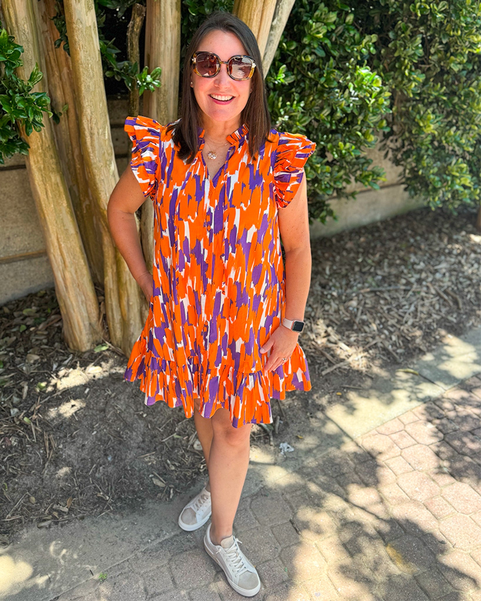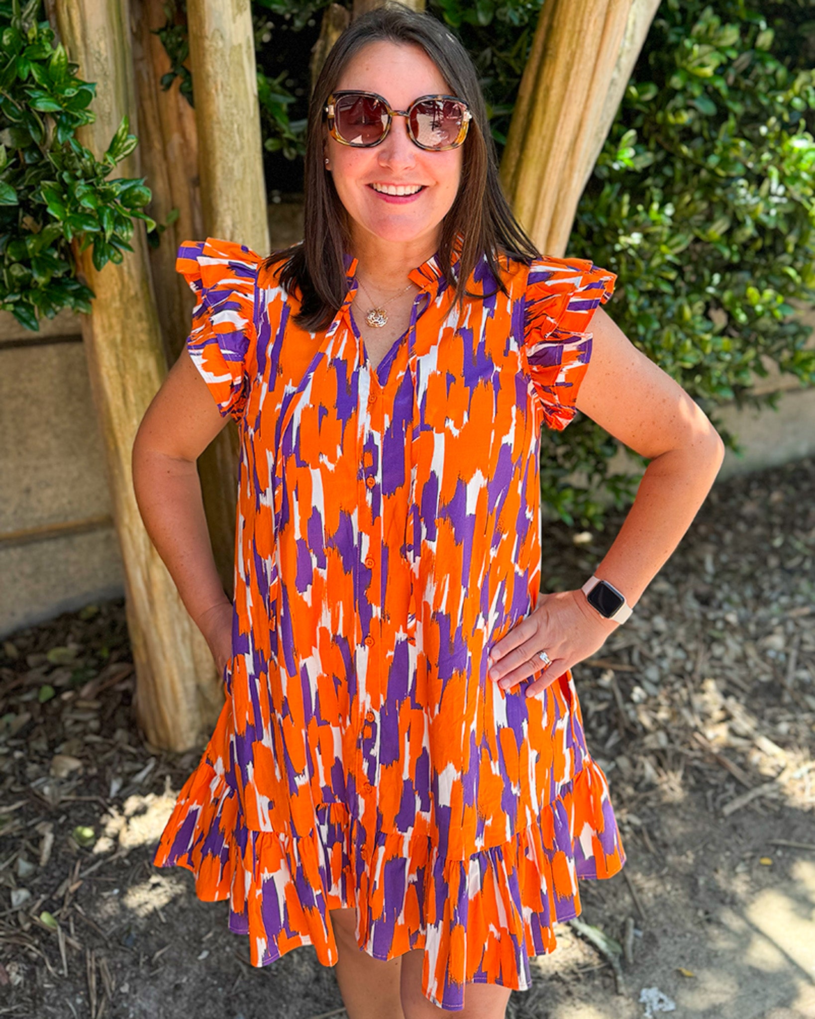 Abby Tailgate Time Dress - Purple and Orange