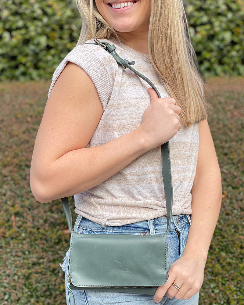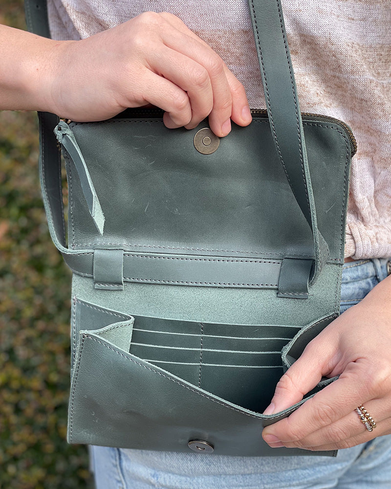 This is just the bag you need for storing your small valuables! Complete with 6 credit card slots, a bill fold pocket, and snap button closure, this is all you need to complete your look!
