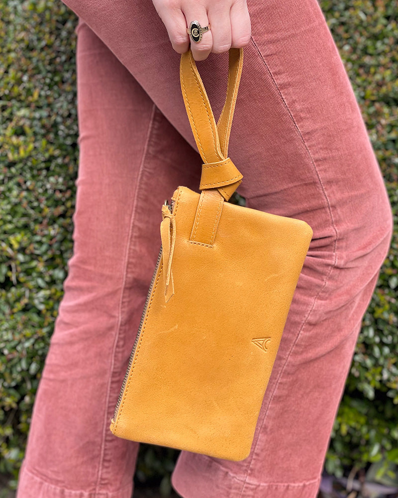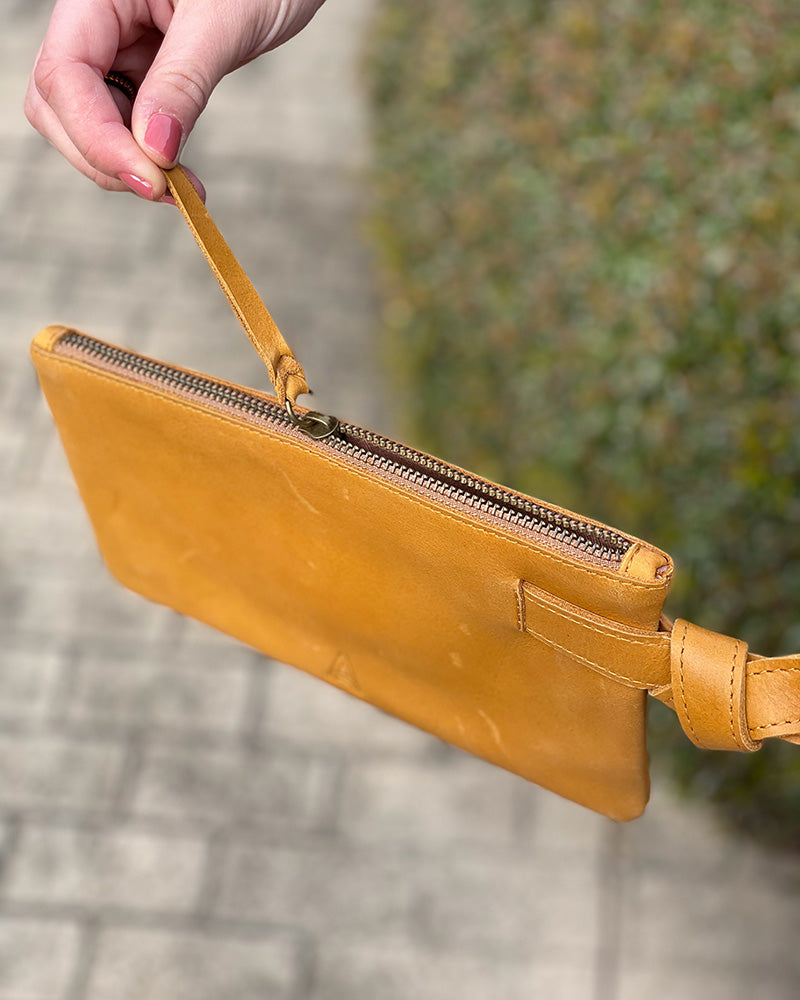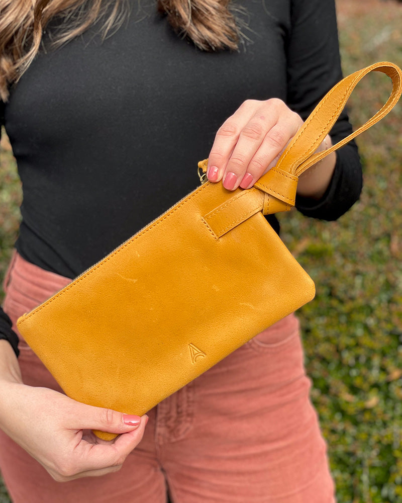 Just the right size for the essentials while still looking great on the go! Complete with a zipper top and a knotted wristlet strap, this bag will be your new favorite!
